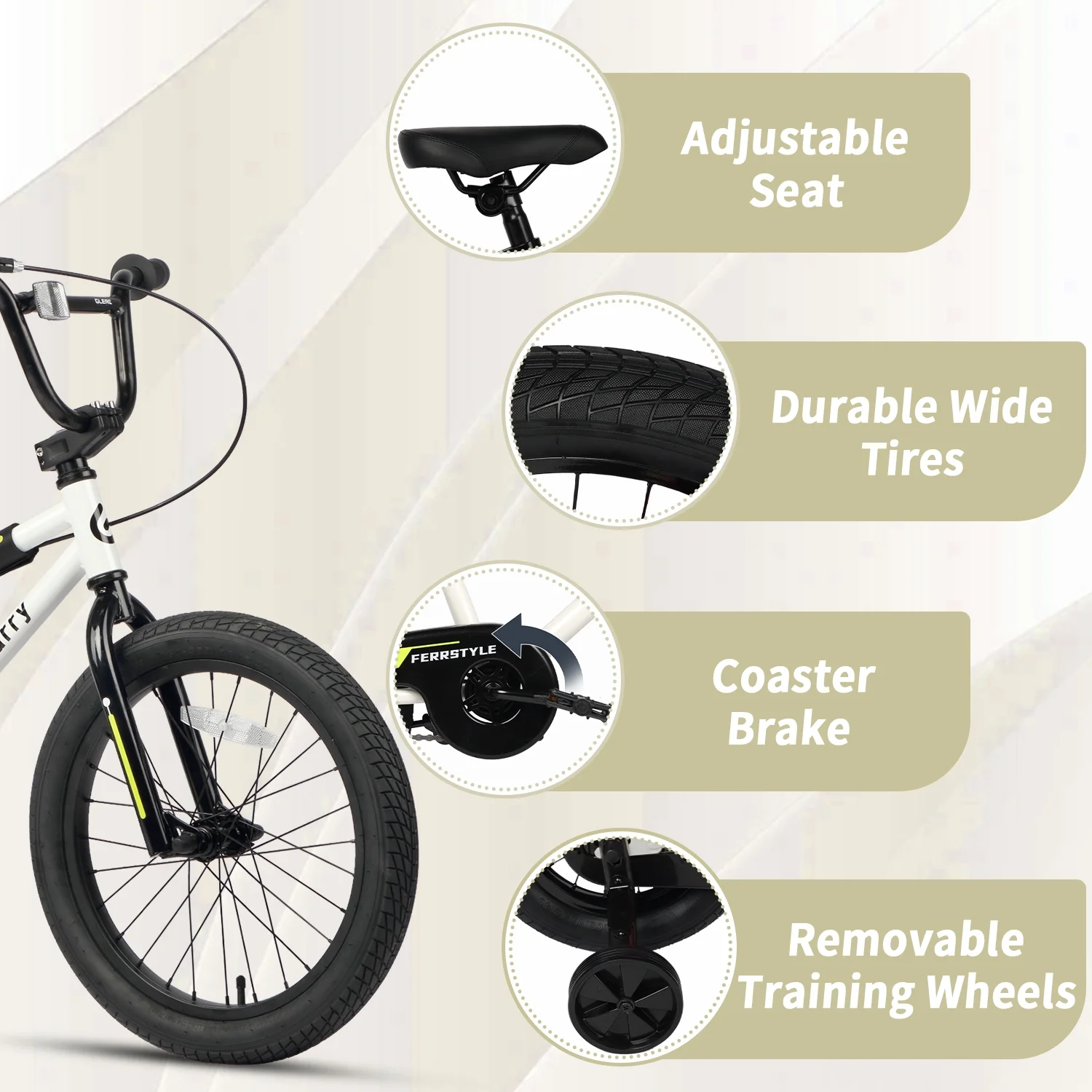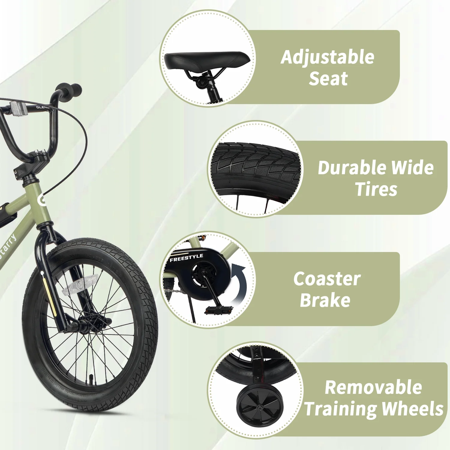 - ��BMX Style & Adjustable Growth��?Designed for kids aged 2-13, Glerc BMX bikes feature a lightweight ?carbon steel frame? for durability and iconic BMX flair. The ?adjustable seat? and handlebars grow with your child, while ?training wheels? provide stability for beginners. Available in ?12/14/16/18-inch sizes? (32-58" height range), this bike adapts seamlessly from toddlers to teens.