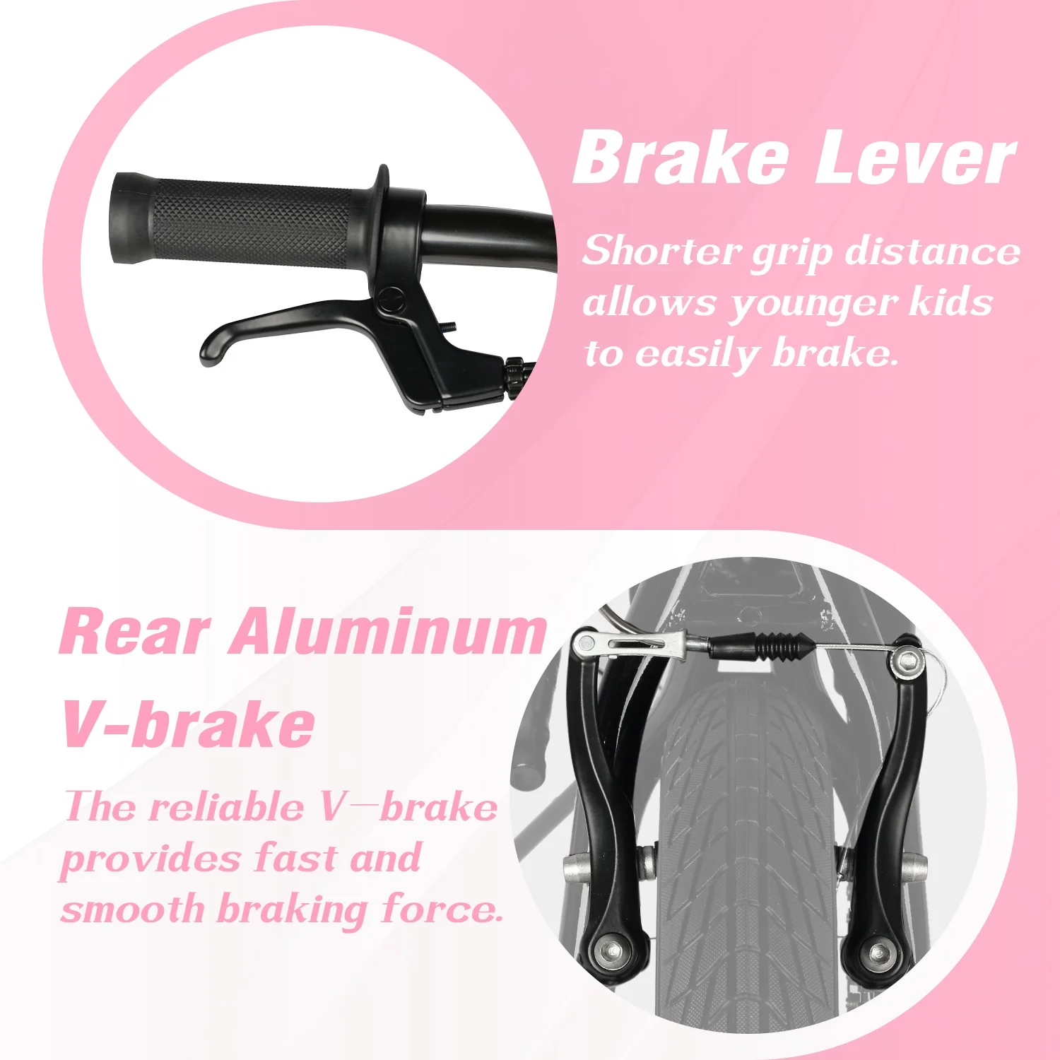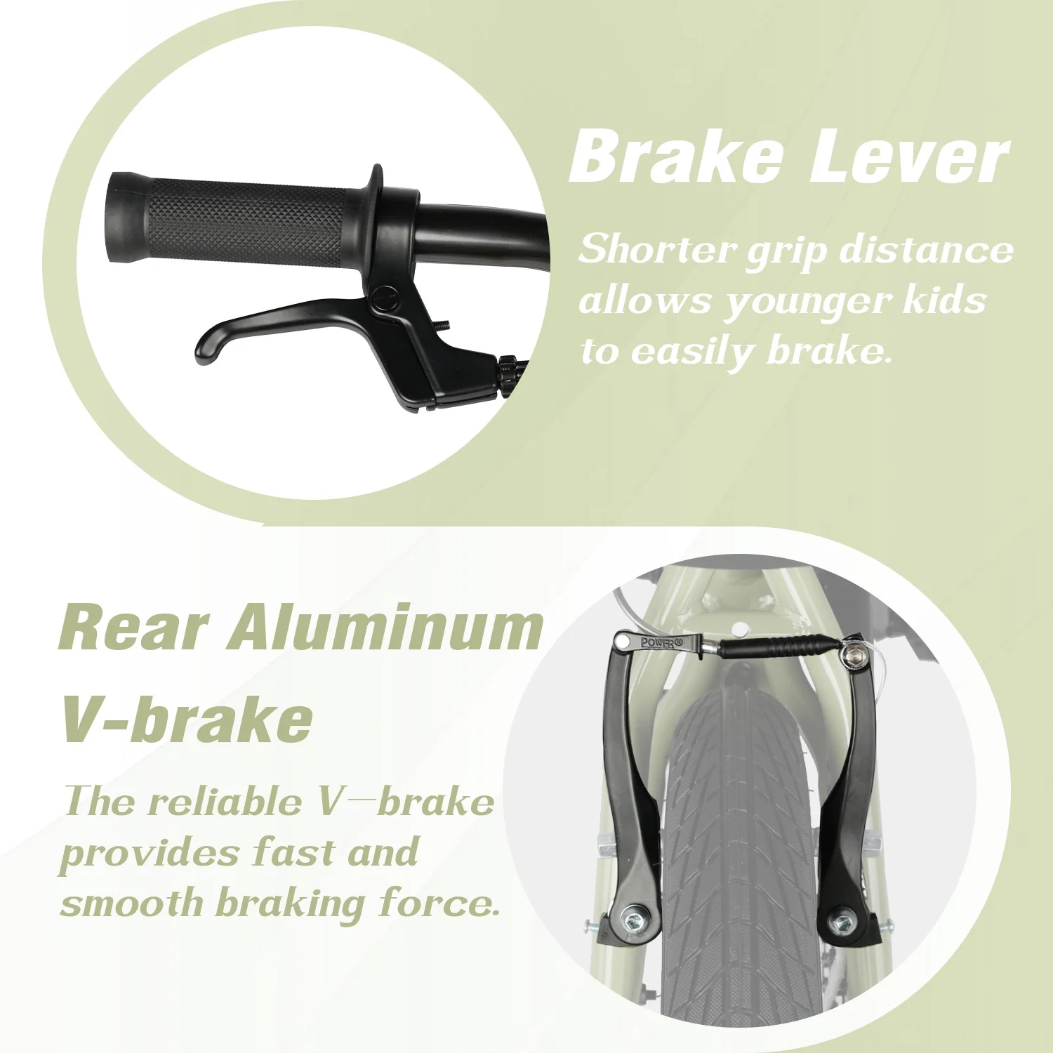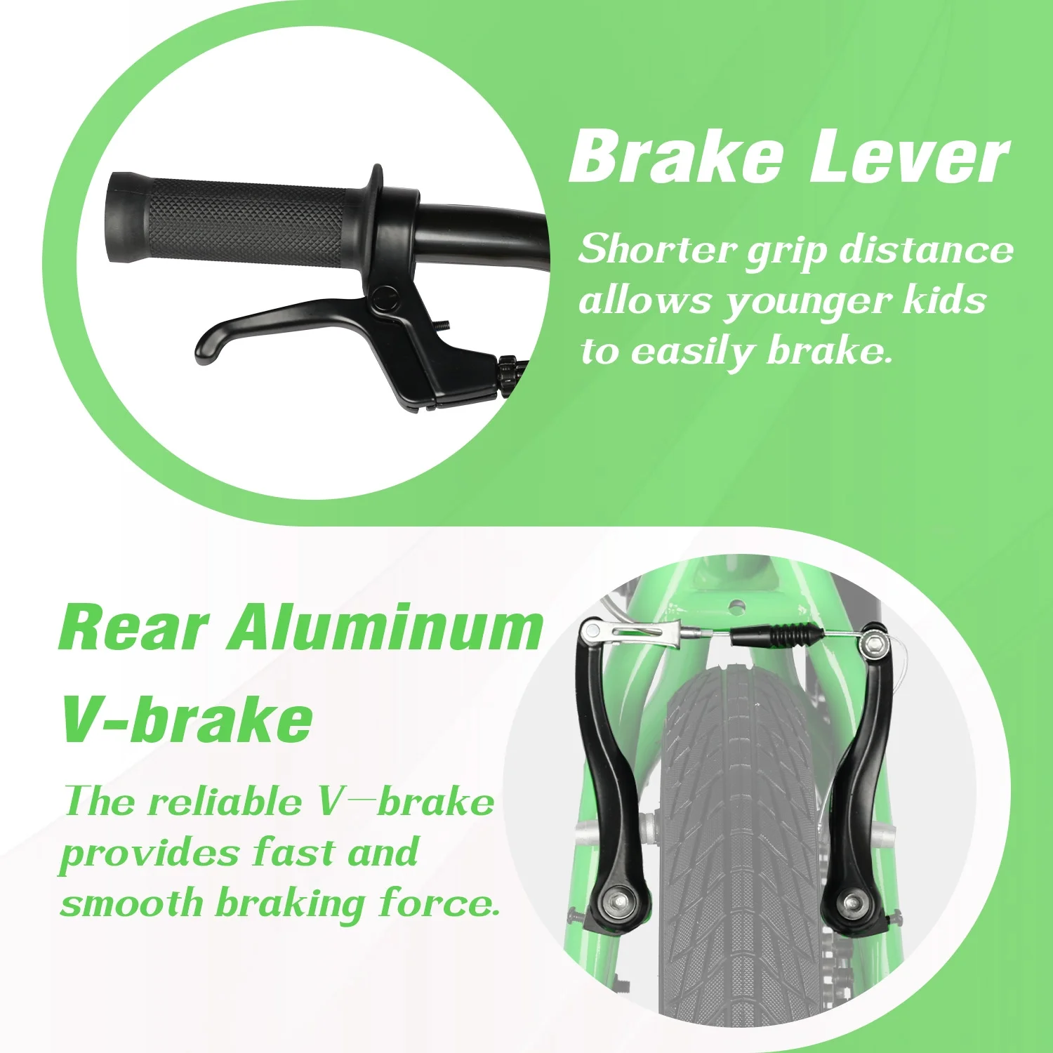 - ��Wide Tires & Safe Control��?Equipped with ?16x2.4-inch wide tires? (air-filled or foam options), our bikes conquer sand, pavement, and trails with anti-slip treads. The ?coaster brake system? ensures instant stopping power, ideal for small hands unused to hand brakes. A full ?chain guard? prevents snagged clothing, while reflective stickers boost visibility for worry-free rides.