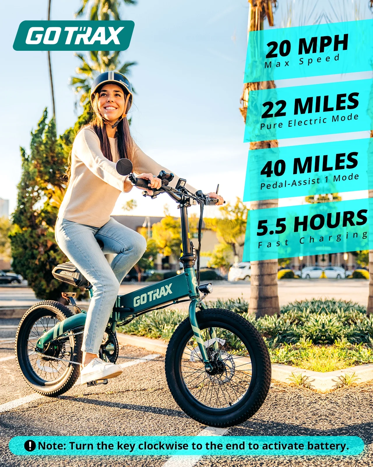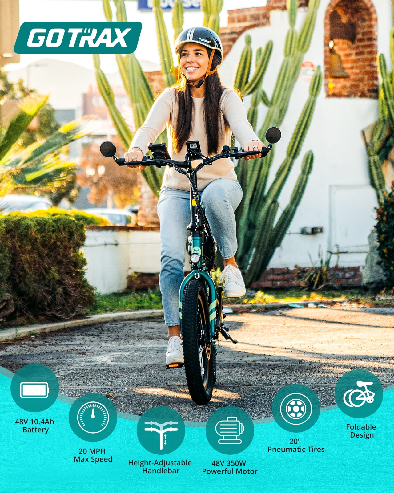 - Gotrax F1V2 20" Adult Folding Electric Bike, 50 Mile Long Range, 48V 10.4Ah Battery, 20MPH Speed, Compact & Portable