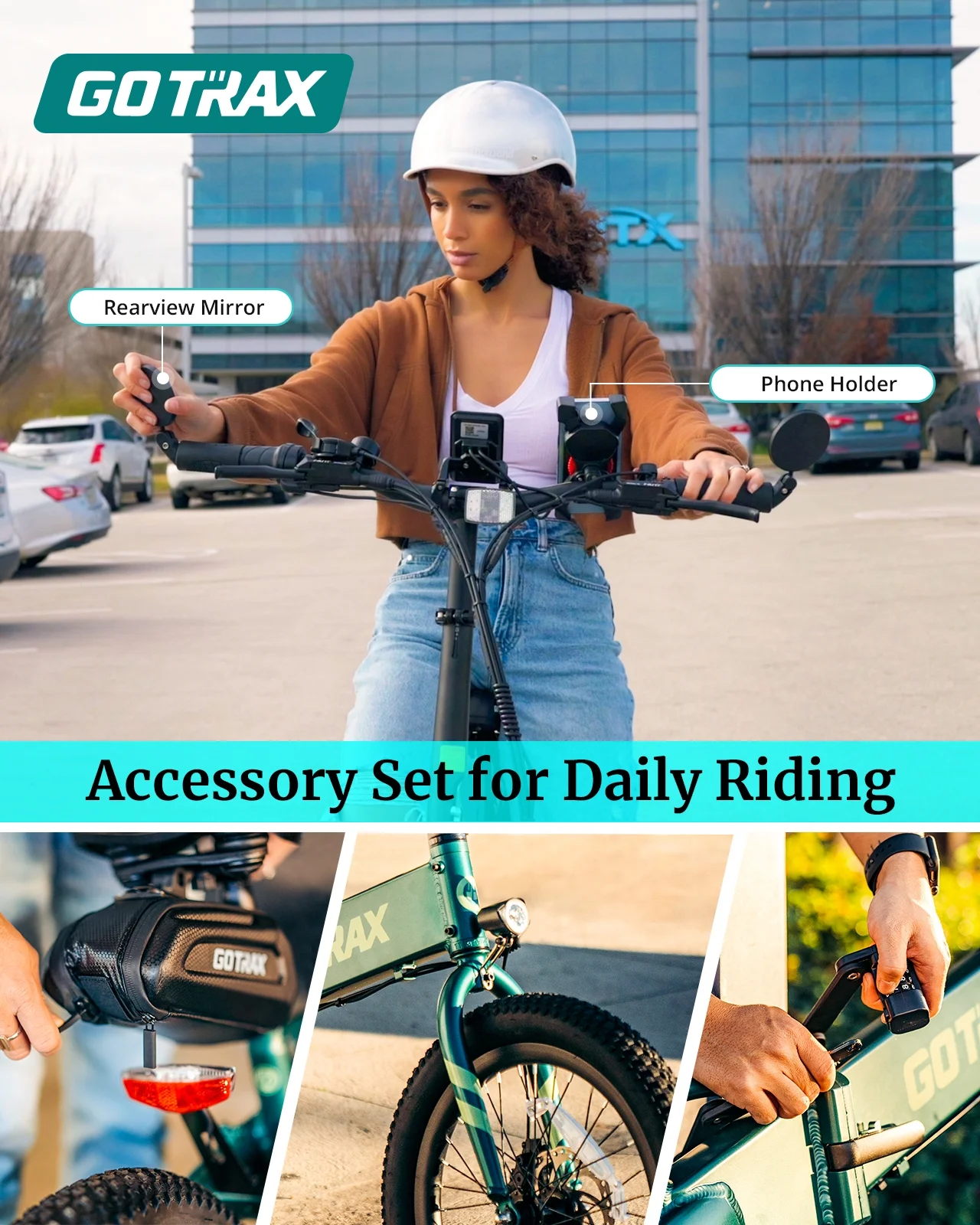 - Enhanced Safety & User-Friendly Features Equipped with dual disc brakes, an LED headlight, and reflectors for safe day or night riding. The smart LCD display provides real-time data, while included accessories like a phone holder, rearview mirror, and seat bag add convenience and value.