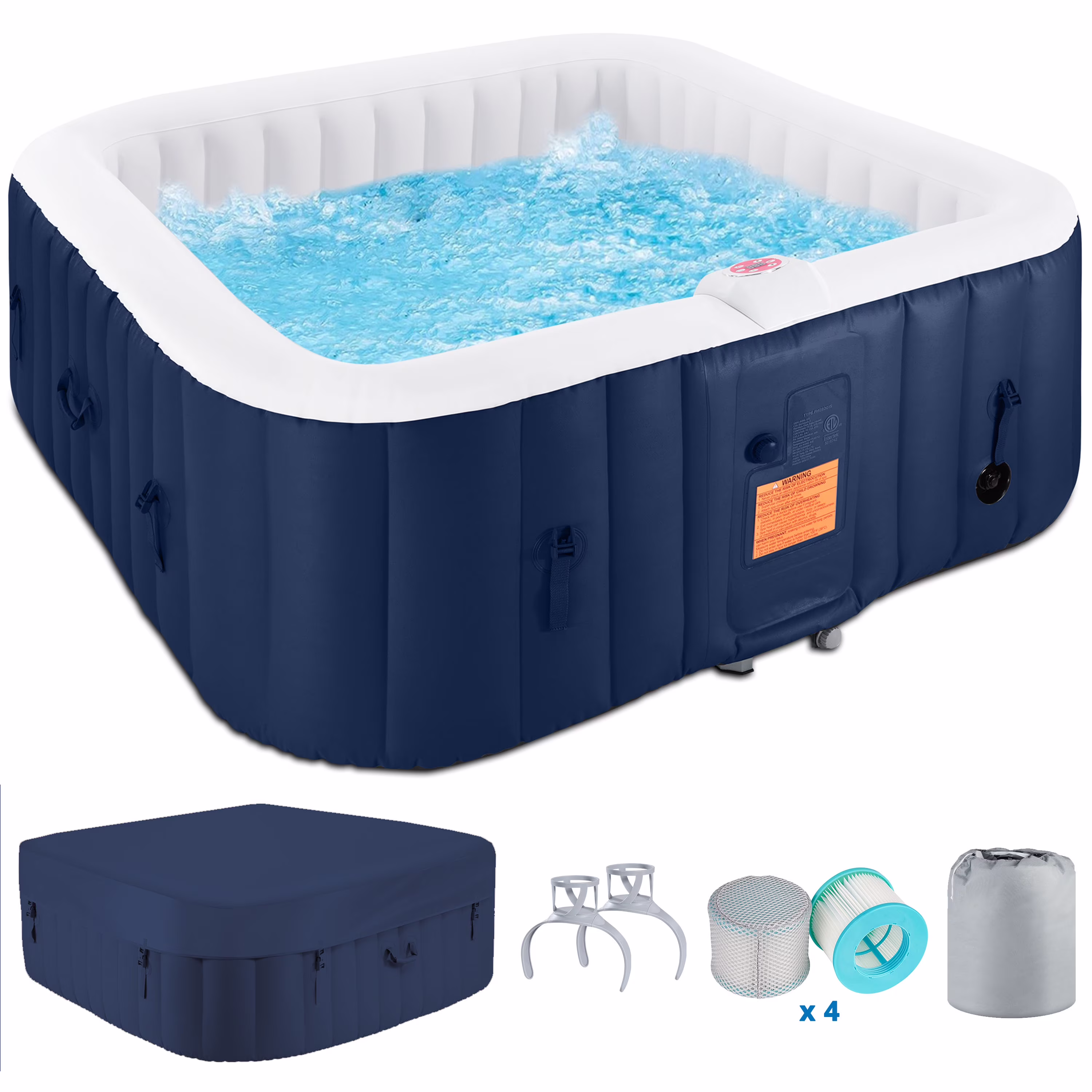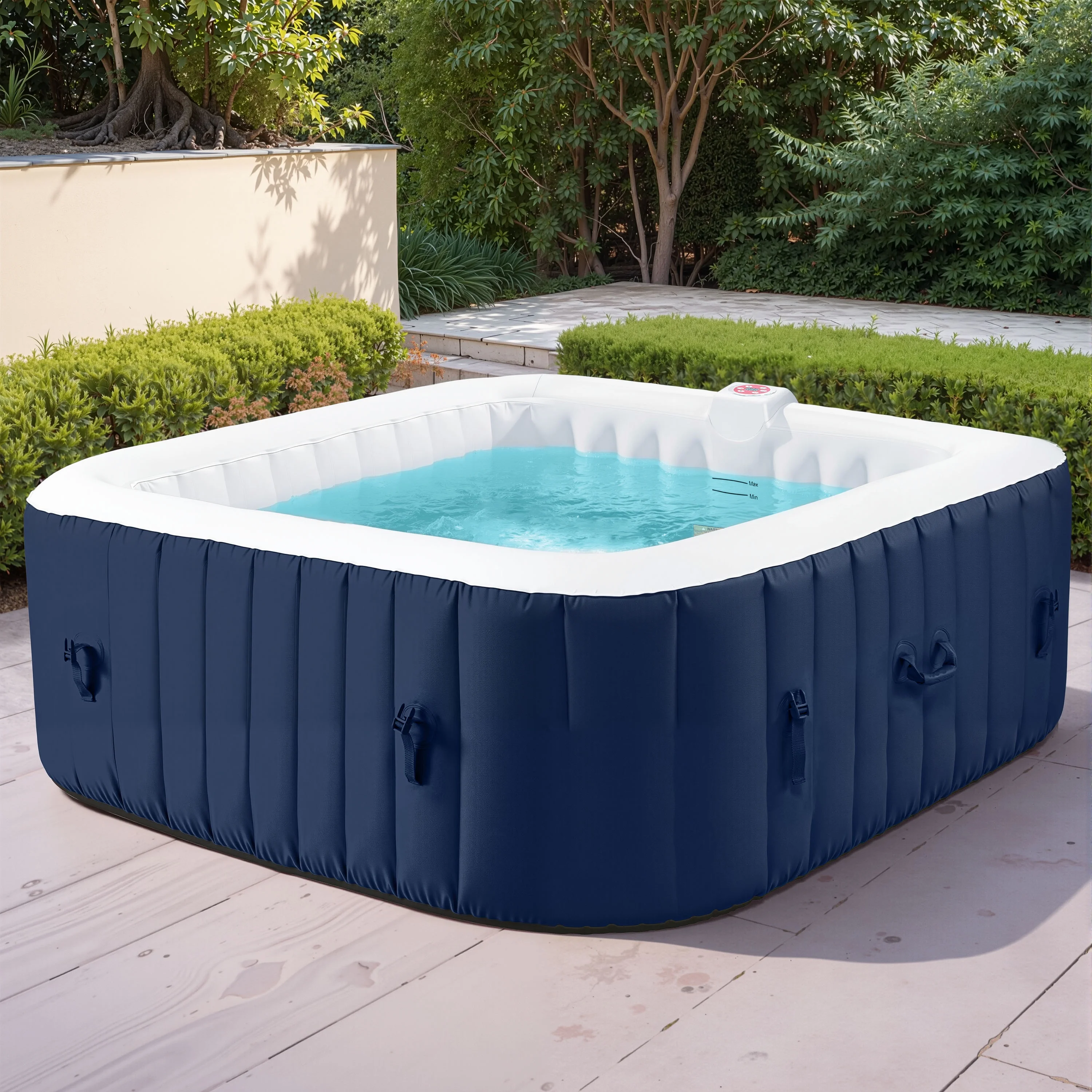 Our portable hot tub is easy to set up thanks to the clear instructions. The package comes with all the accessories you need. The convenient side handles make it a breeze to transport once inflated.