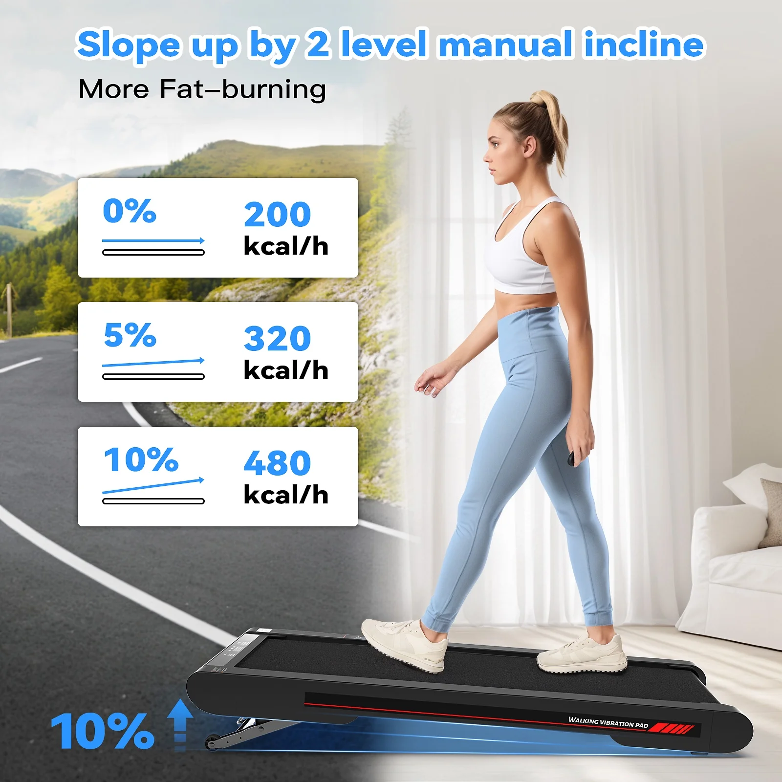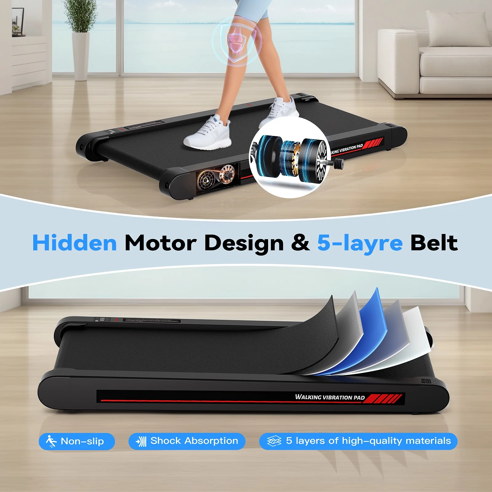 - ��3 in 1 Walking Vibration Pad Treadmill��This walking vibration pad offers three workout modes: under-desk walking, regular running, and 4 unique vibration modes to activate or relax your muscles. With a speed range of 0.1�C3.8 mph, you can easily adjust the speed to match your fitness level. Suitable for staying active at home or in the office, it adapts to your needs for a personalized workout anytime.
