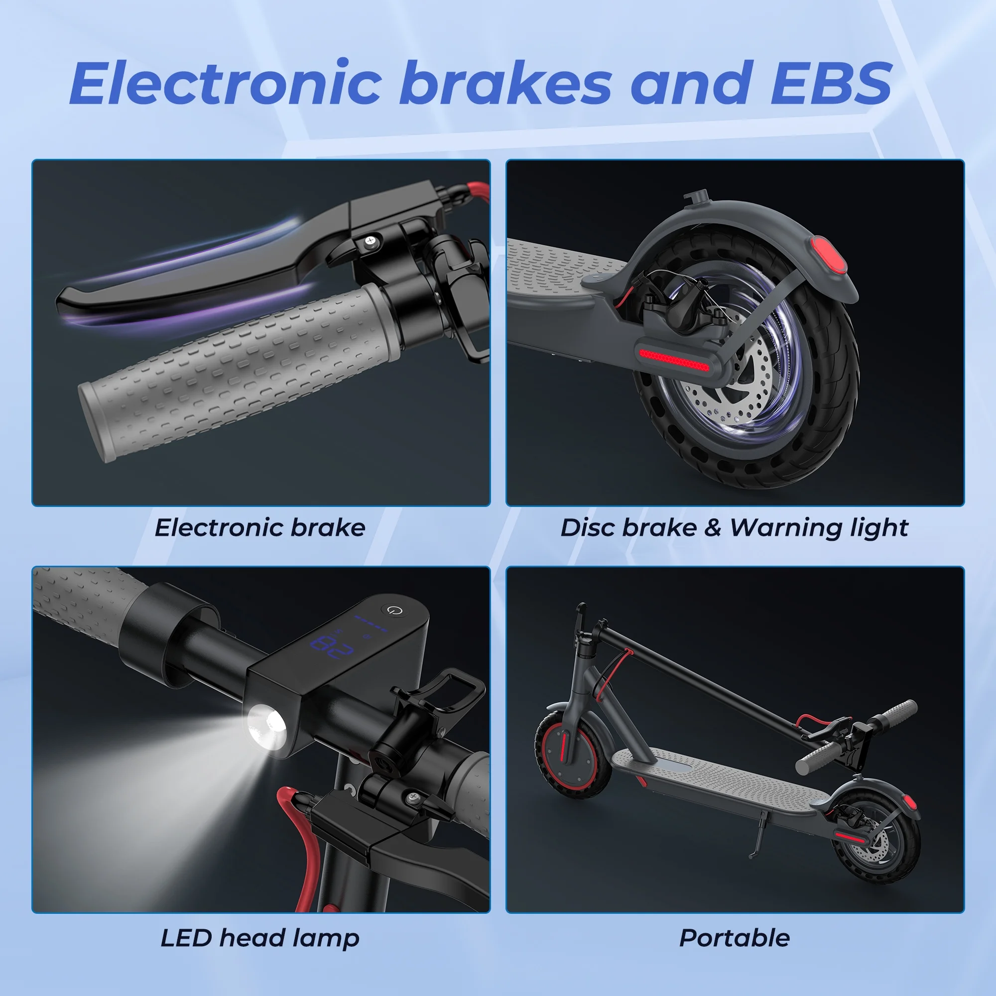 - Safety First :UL2272 certified for safety and reliability, our adult scooter comes equipped with warning taillights and ultra-bright headlights, illuminating your path for up to 15 meters during night rides. The double braking system, comprising disc braking and EABS regenerative anti-lock braking, ensures a secure ride every time.