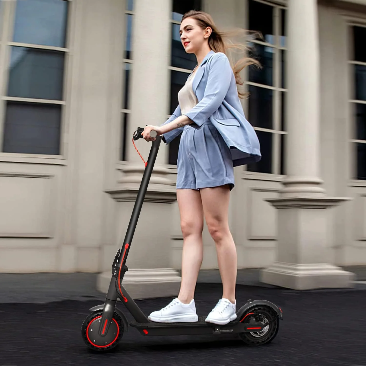 - Convenient and Foldable Design :Experience unparalleled convenience with our one-step folding mechanism, allowing you to fold the scooter in just 3 seconds. Weighing only 15kg, it's compact enough to fit in a car trunk, perfect for city commutes, campus travels, and office commutes. Elevate your outings with this lightweight electric scooter.