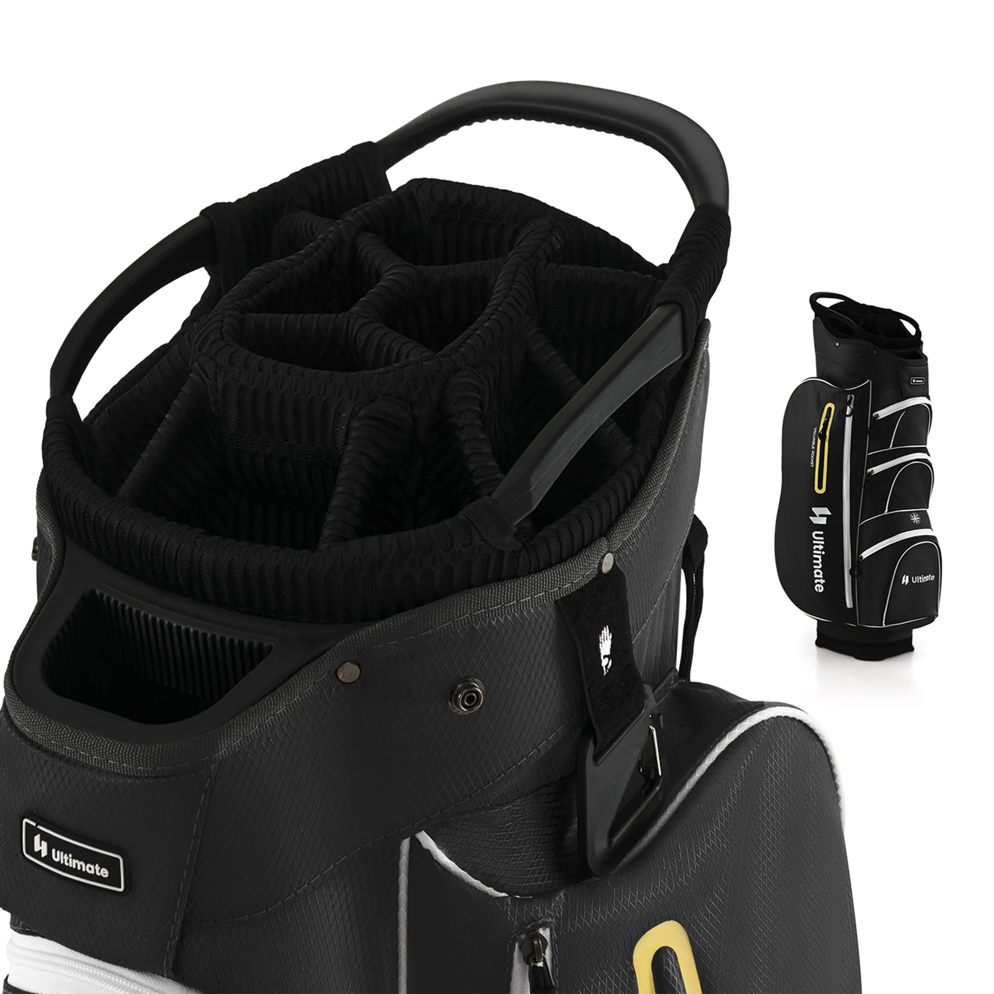 - Cart Friendly & Considerate Designs: The loop at the front of the golf bag is designed for the cart strap to pass through, which makes it more convenient for you to use with the golf cart. Besides, the glove holder, towel ring and umbrella holder keep the essentials within reach.