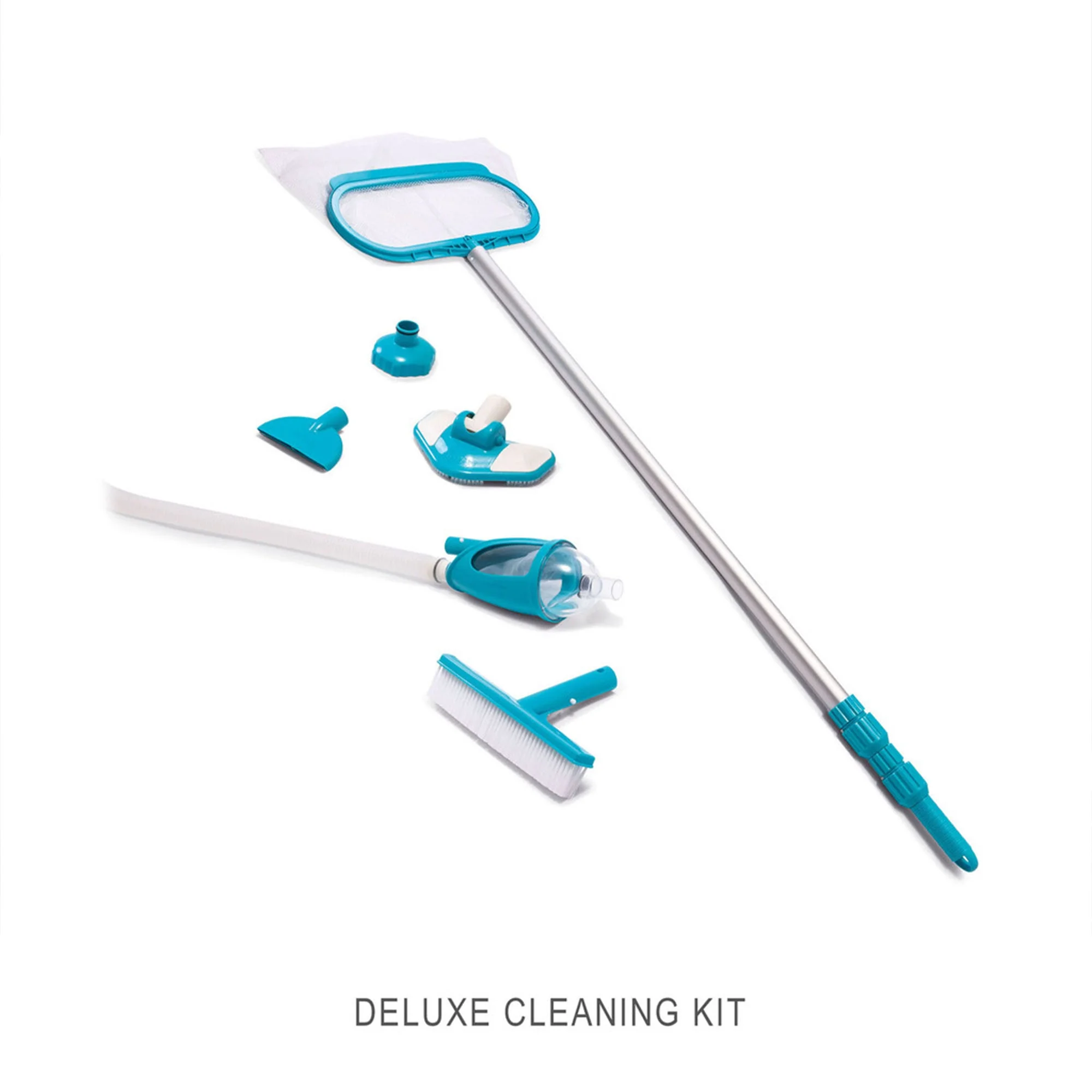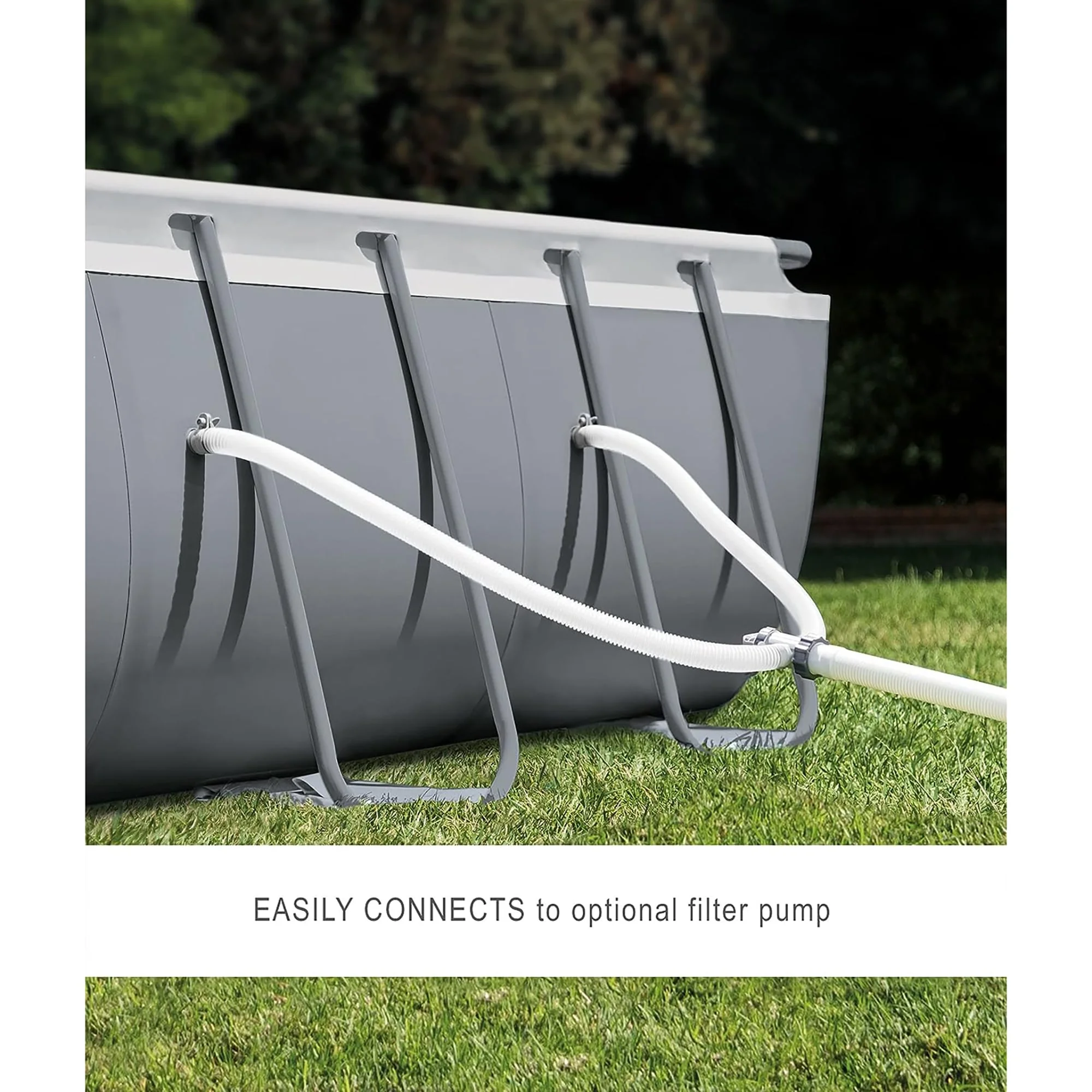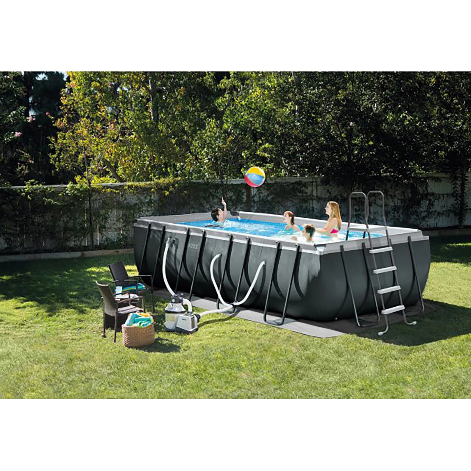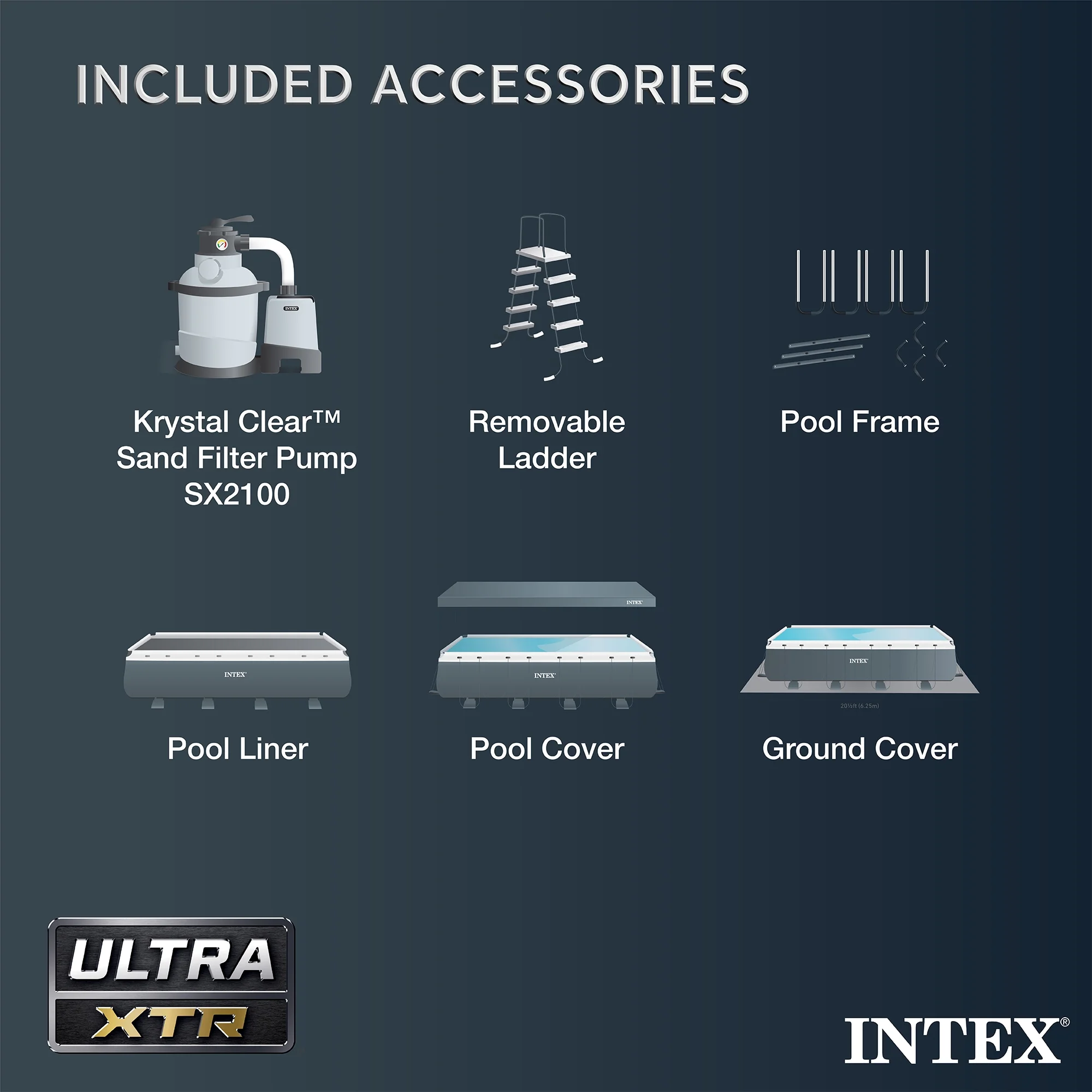 - Package includes pool, sand filter pump, ladder, ground cloth, and pool cover