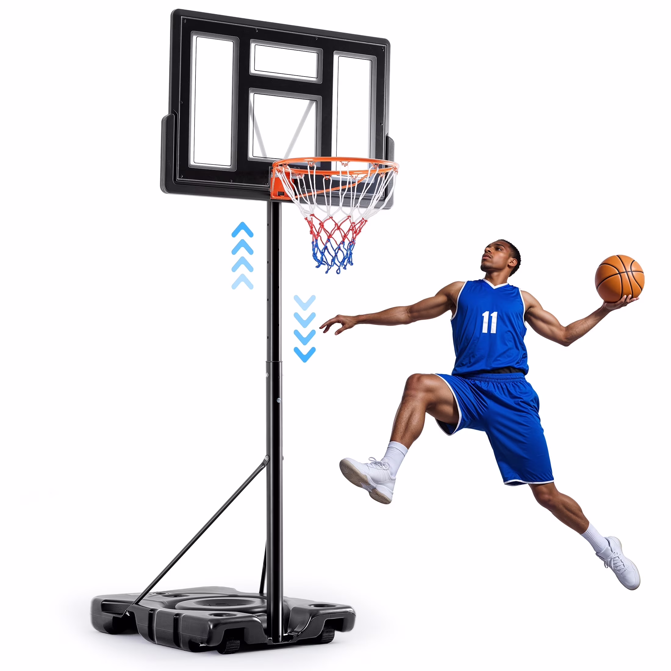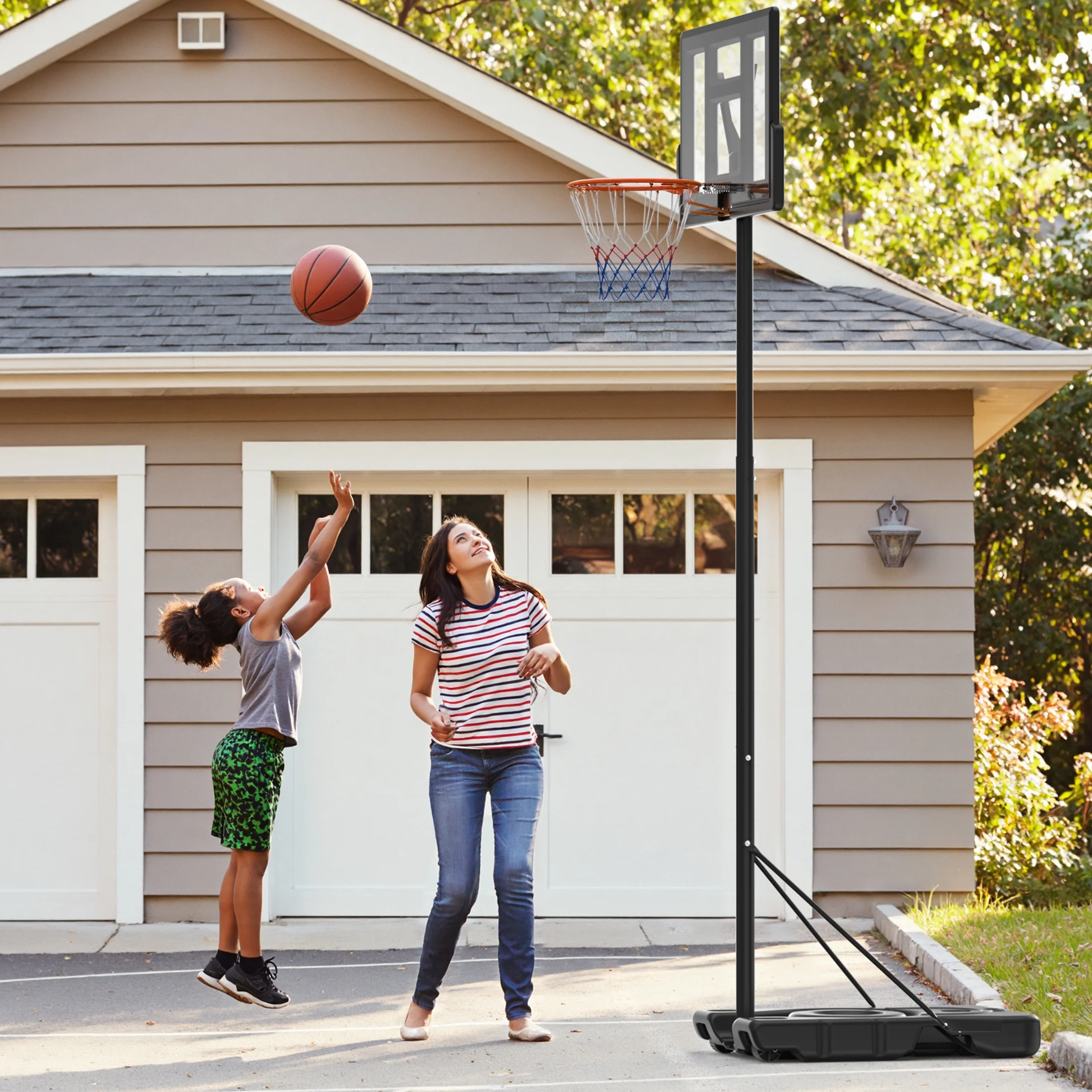 - Adjustable Height - Our basketball hoop comes with an adjustable height feature, allowing you to customize the hoop to your preferred height. Whether for kids or adults, you can easily set it from 6.1 to 10 feet to accommodate players of all ages and skill levels, providing a great experience for everyone