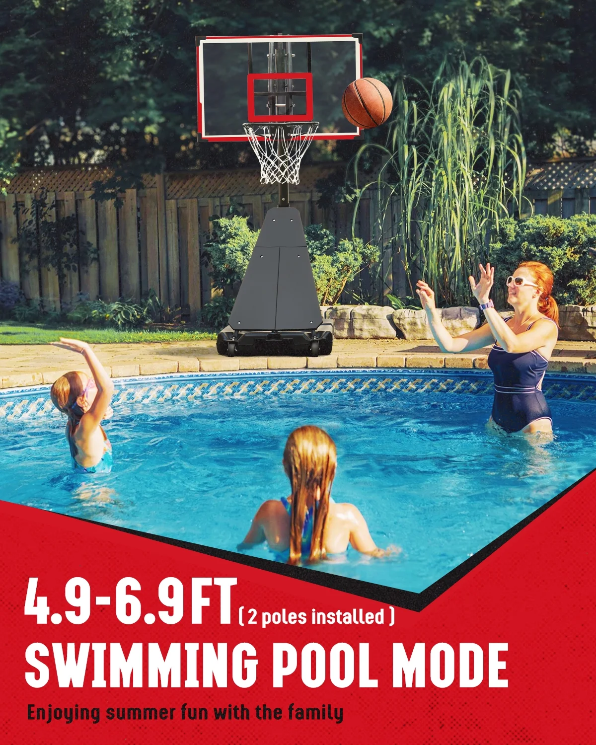 - ��Portable and Mobile, Switch Scenes at Will��The basketball court with 2 built-in front wheels is easy to move anywhere. You can use it in the yard, pool, beach, playground, courtyard, living room, and other scenes to meet your various sports needs. It's sturdy enough to grow with your child, providing him with a perfect playing environment. You can also use it to hold a pool basketball party, enhance the atmosphere of family gatherings, and enjoy summer fun.