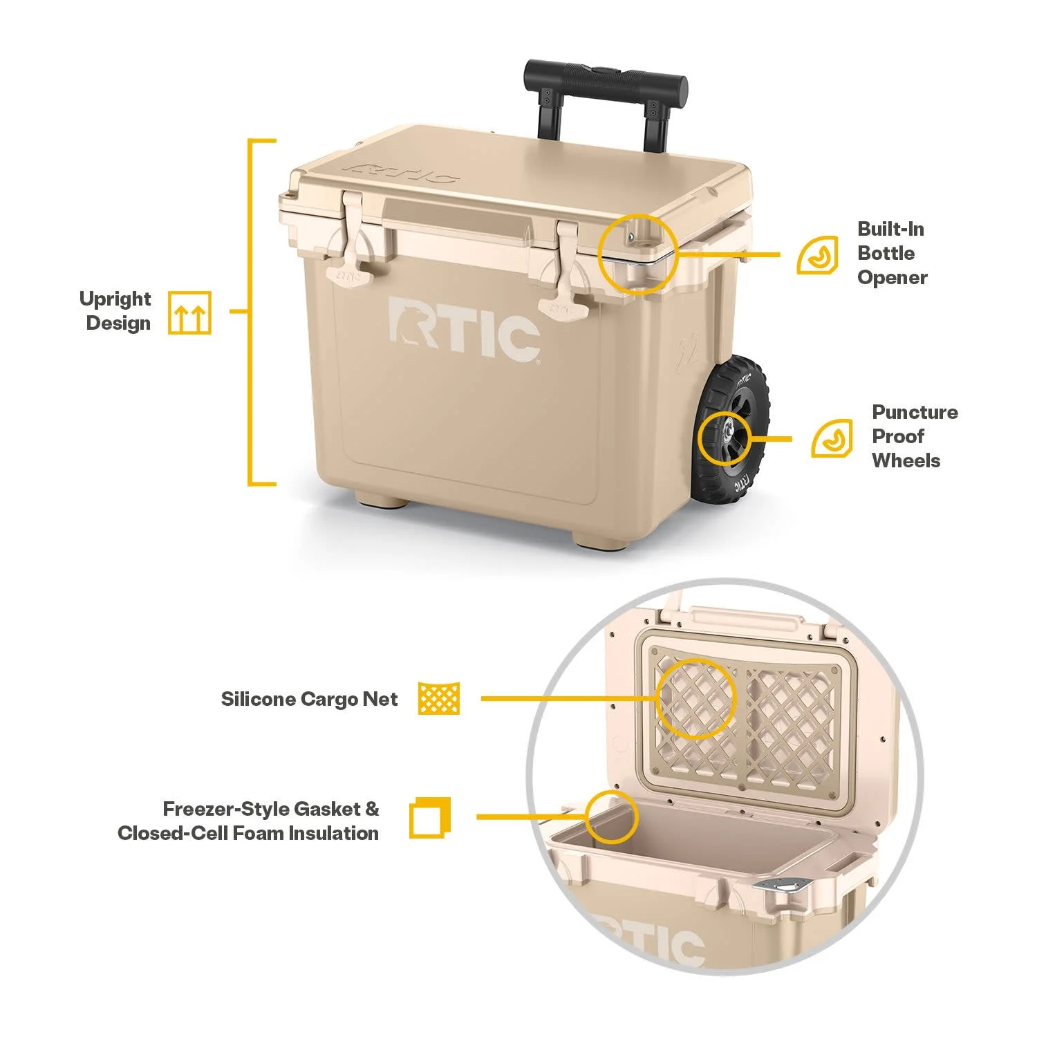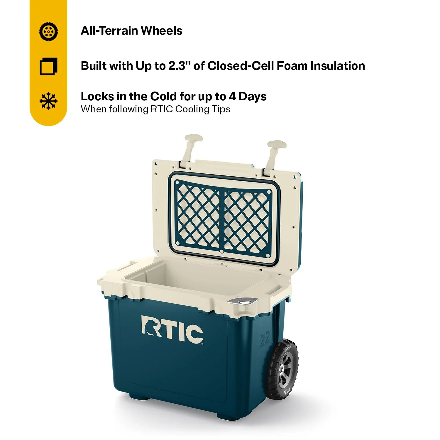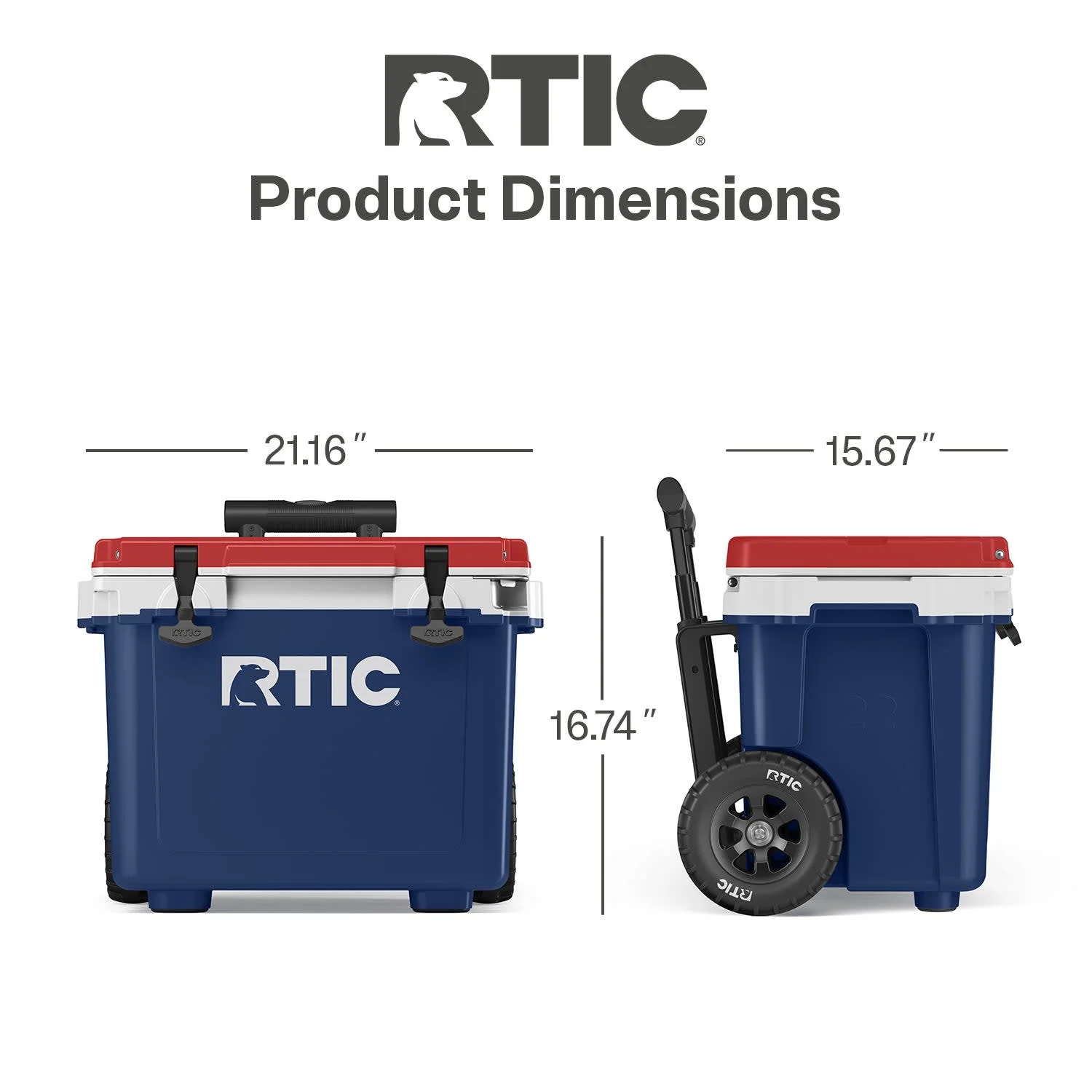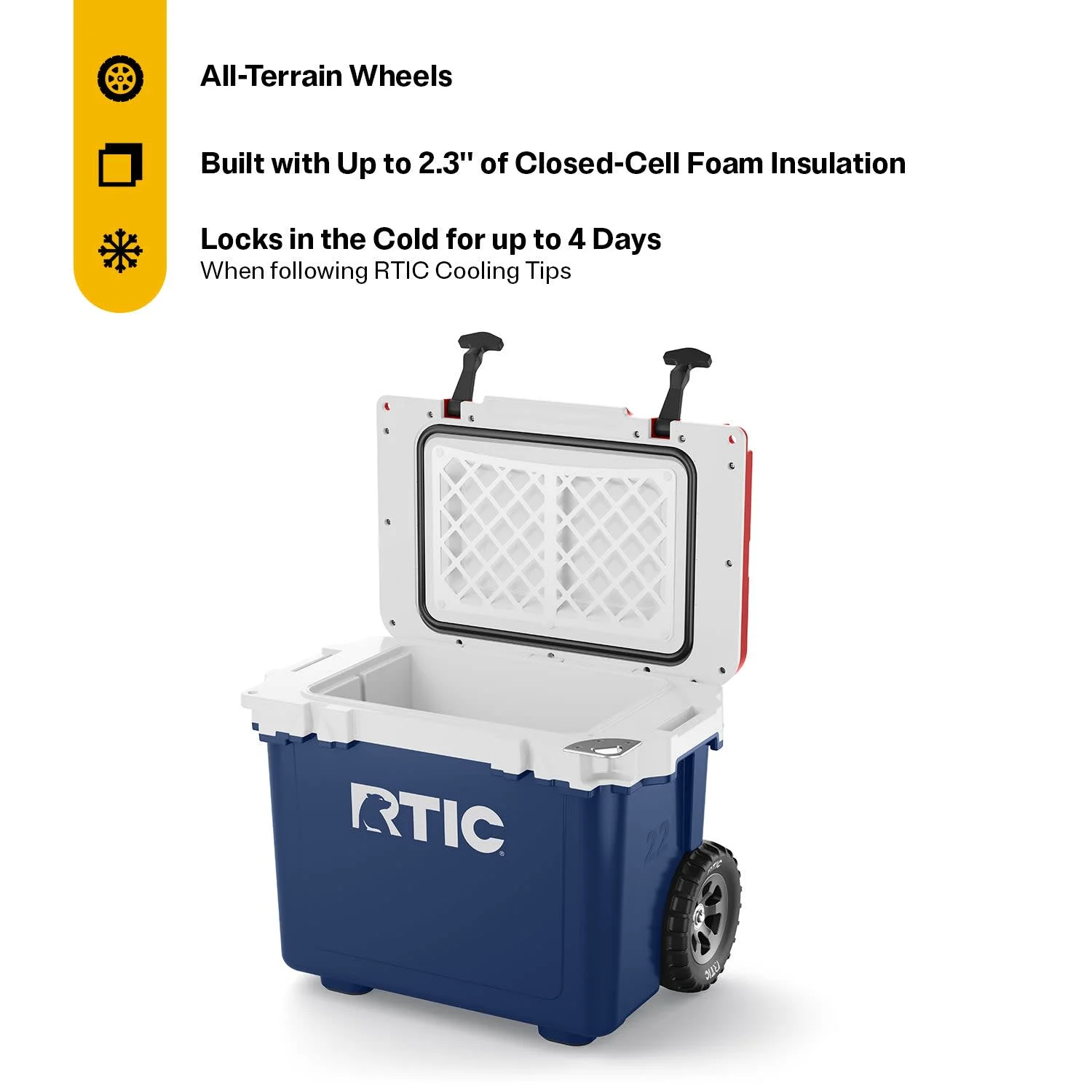 • RTIC 22 QT Ultra - Light Wheeled Hard - Sided Ice Chest Cooler, Fits 28 Cans or 6 Wine Bottles, Patriot