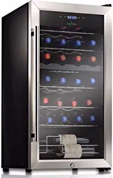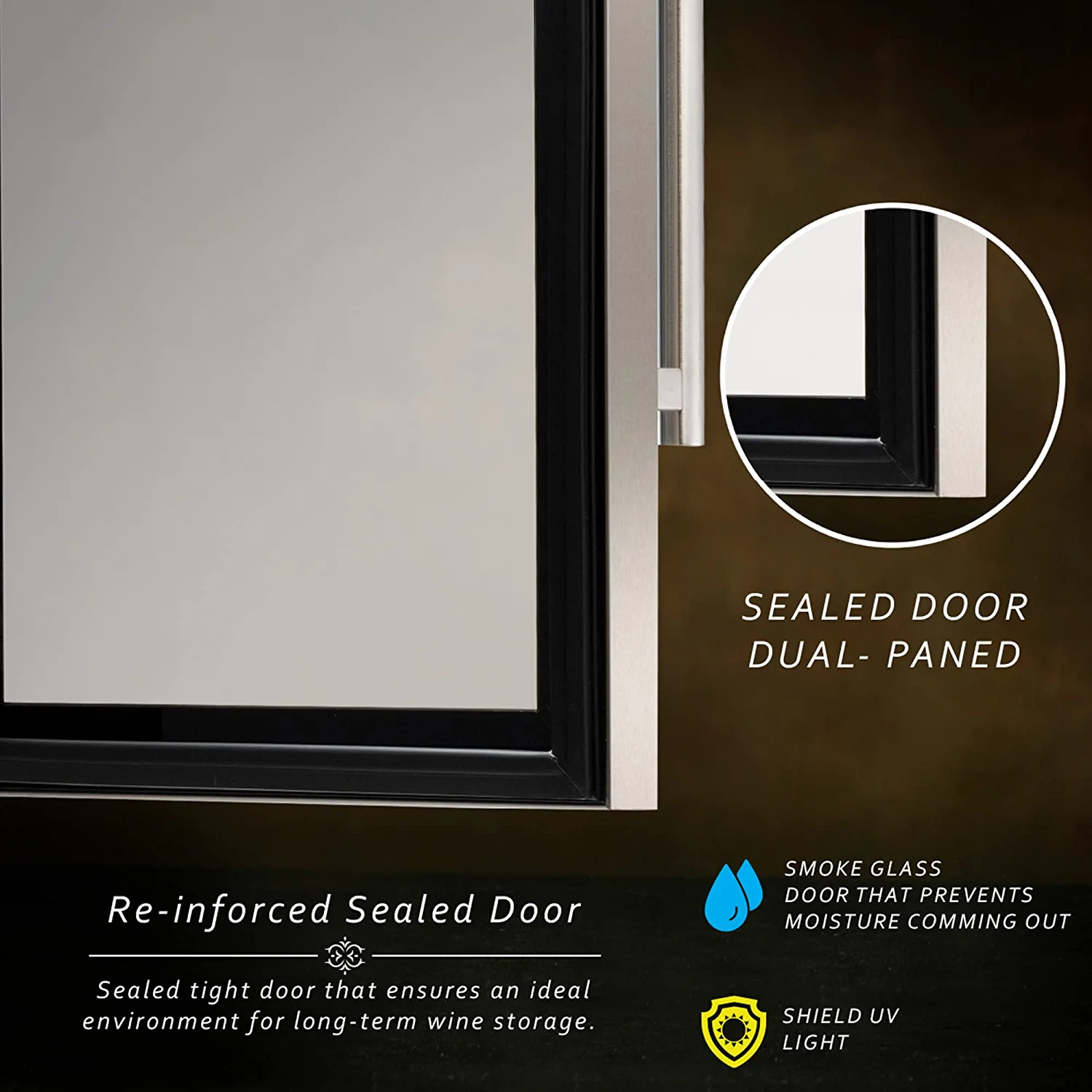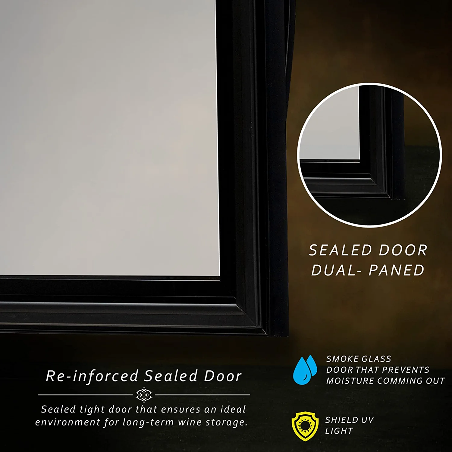 - FREE STANDING DESIGN: Ideal for floor, table or countertop placement only. Easier to place anywhere inside your house or pub. With contoured and polished chrome wine racks, stainless steel door, with plastic door frame and steel handle