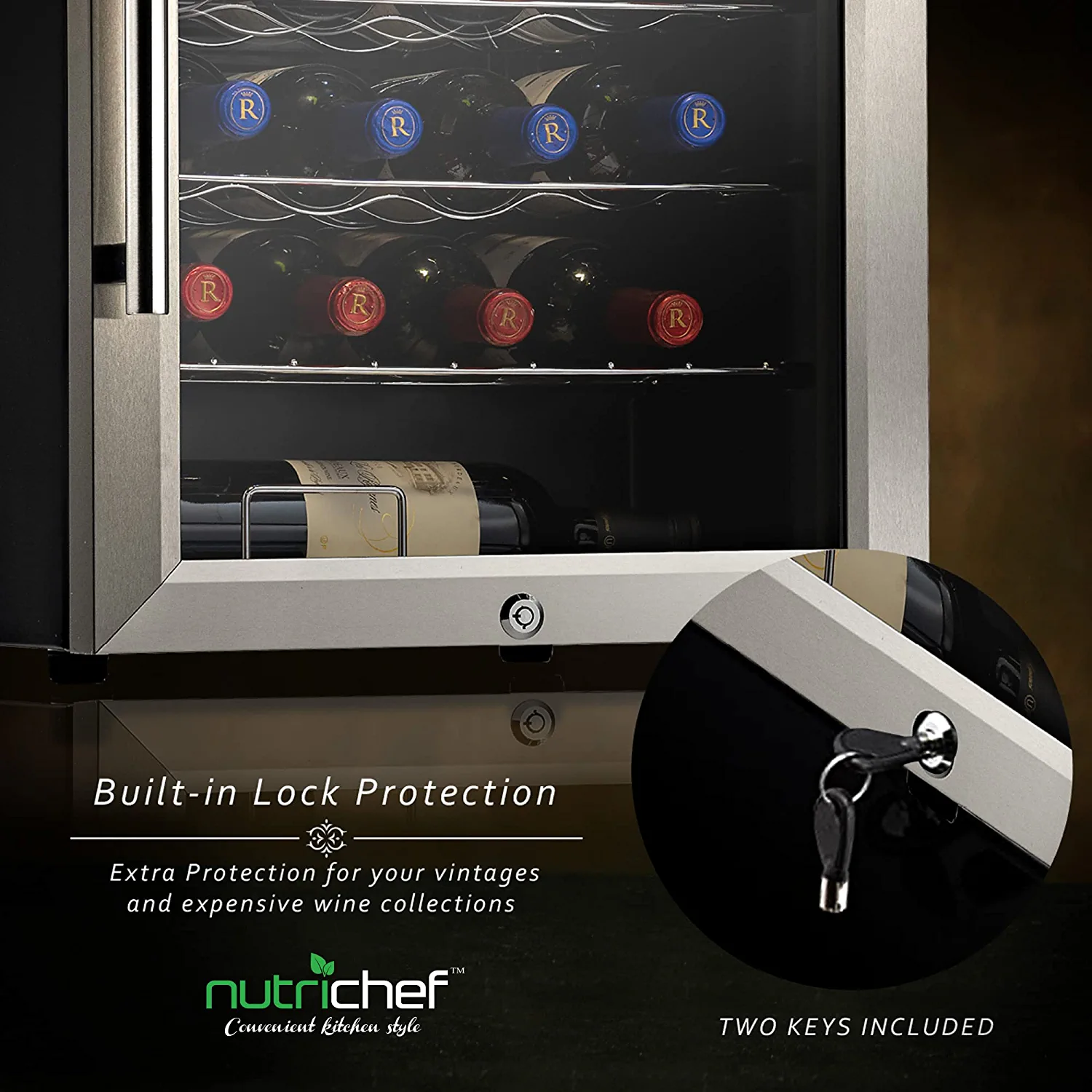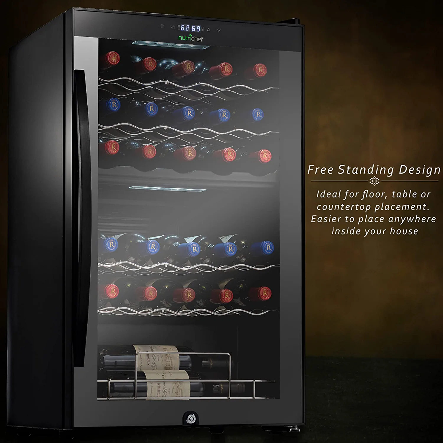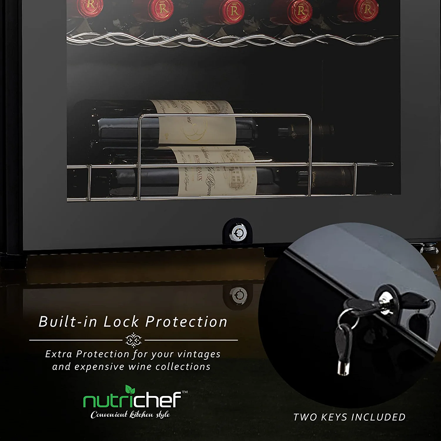 - PRESERVE WINES WITH BUILT-IN FEATURES: Our NutriChef wine refrigerator ensures an ideal environment for long-term wine storage with a built-in circulation fan and ventilation grill that maintains a consistent temperature throughout the whole wine cooler