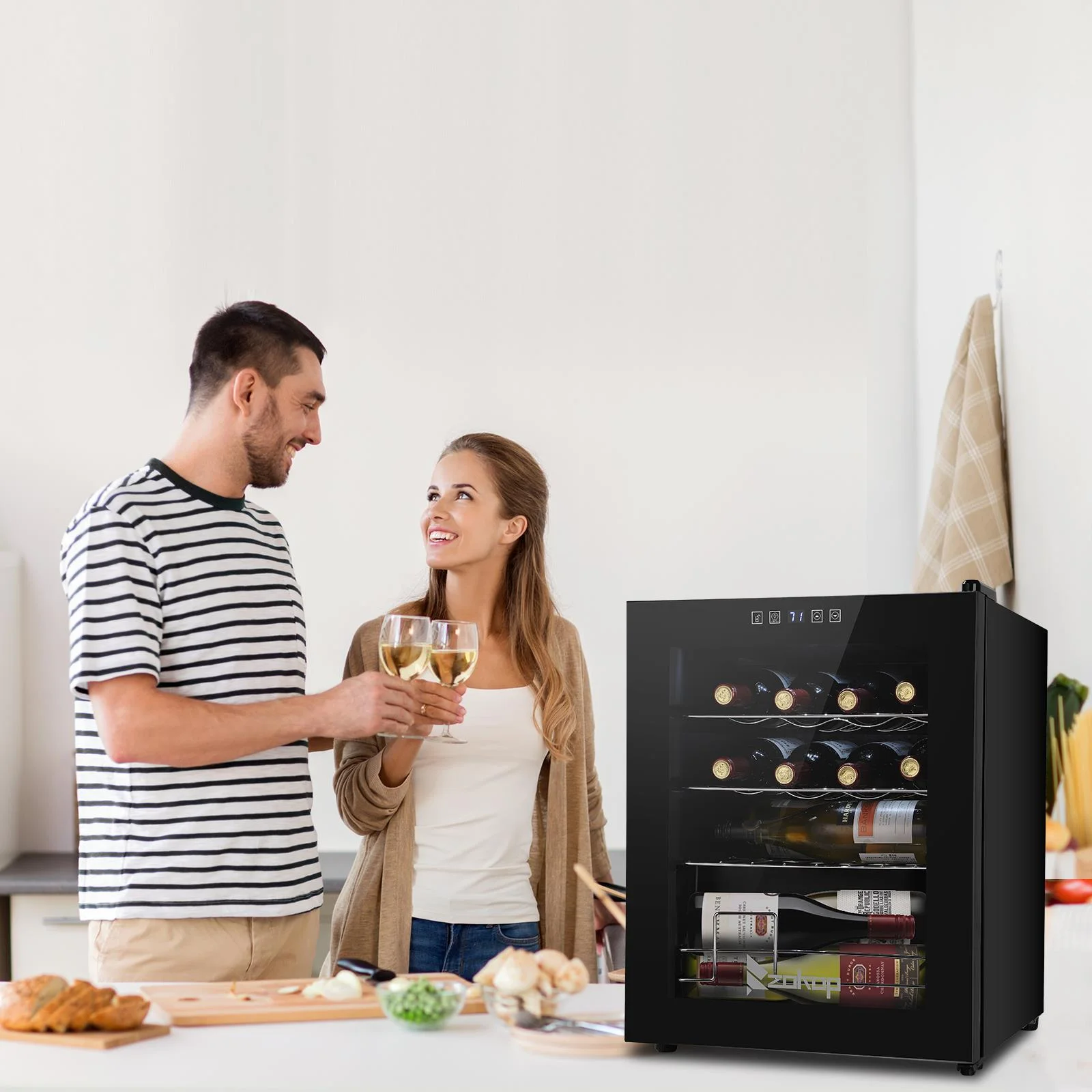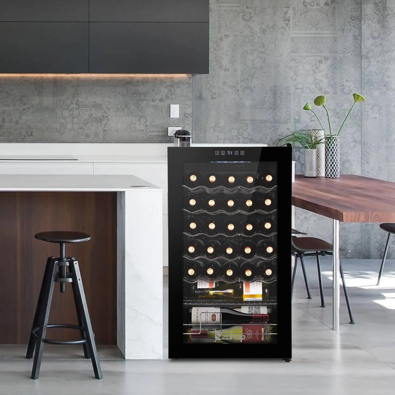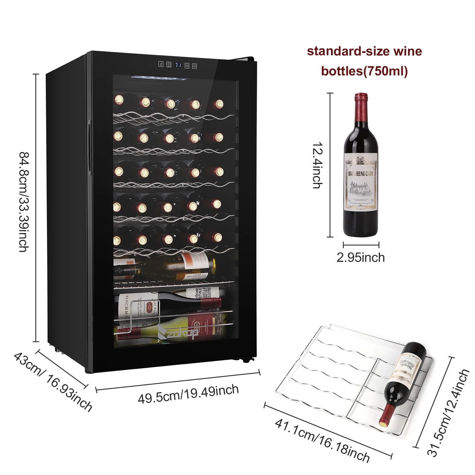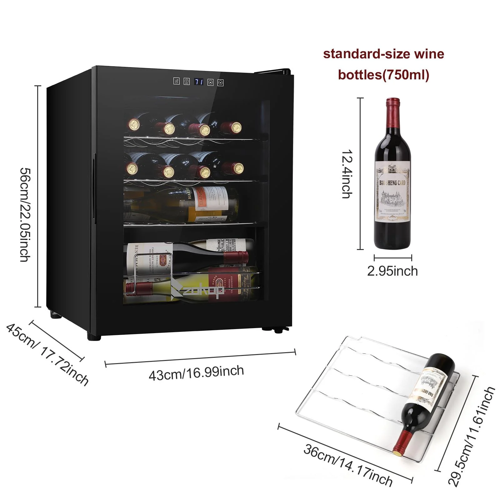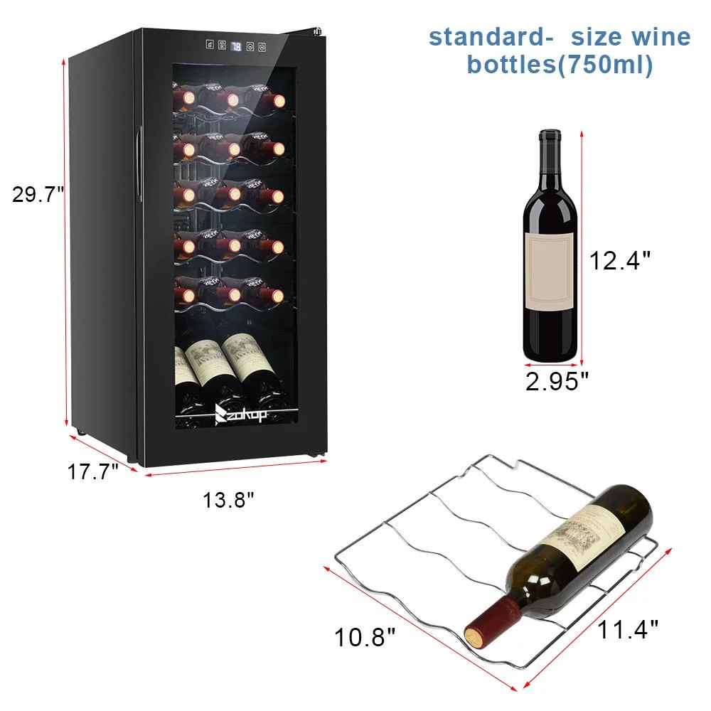 4.The perfect size: Holds up to 18 Bordeaux bottles and is ideal for small collections, by collectors with discerning tastes. The metal racks hold the bottles in place and make it both easily accessible and readable so you can choose the perfect wine for the occasion. The 18-bottle wine cooler measures 13.58" x 17.72" x 30.31" and weighs 43 lbs.
