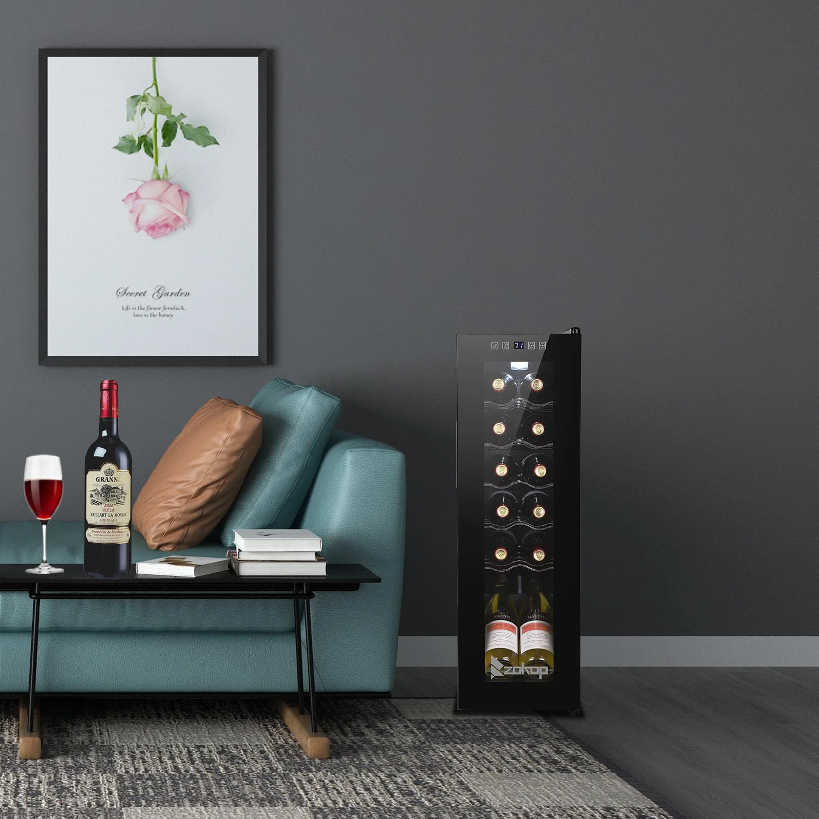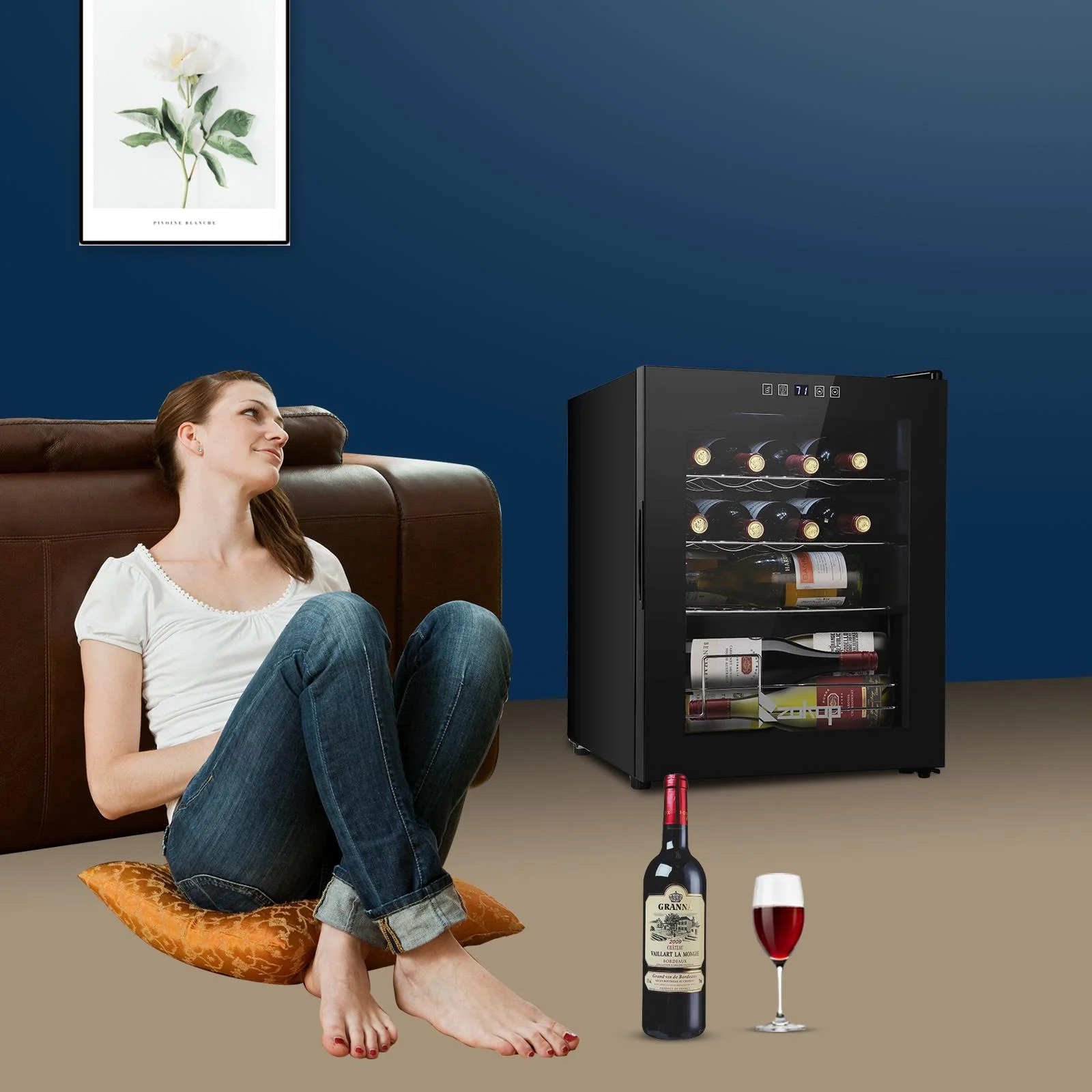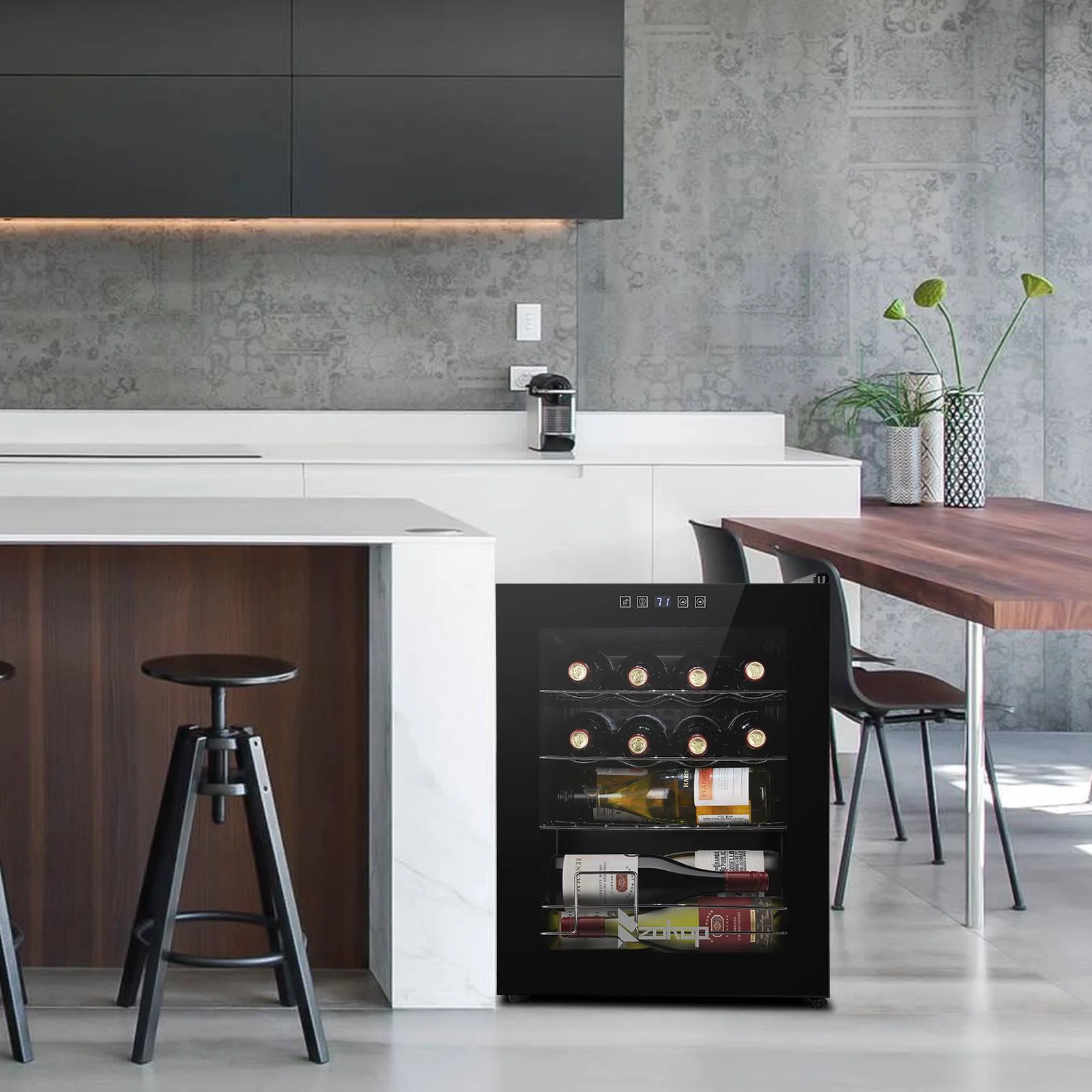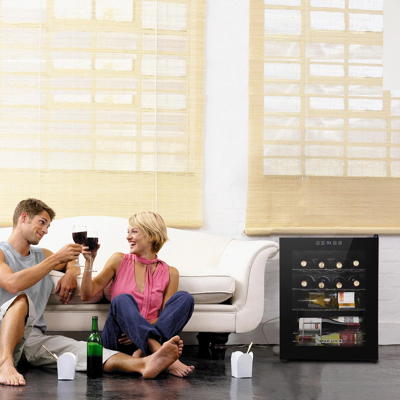4.The perfect size: Holds up to 18 Bordeaux bottles and is ideal for small collections, by collectors with discerning tastes. The metal racks hold the bottles in place and make it both easily accessible and readable so you can choose the perfect wine for the occasion. The 18-bottle wine cooler measures 13.58" x 17.72" x 30.31" and weighs 43 lbs.