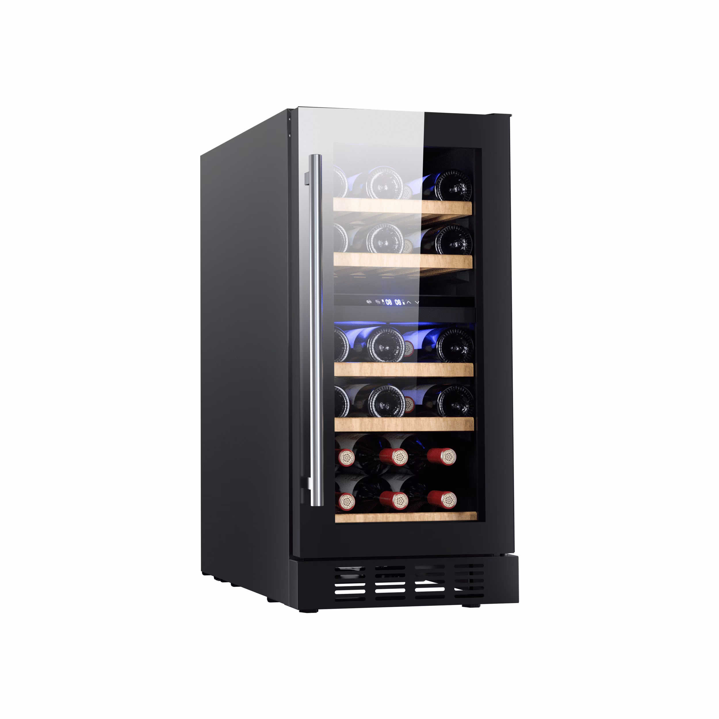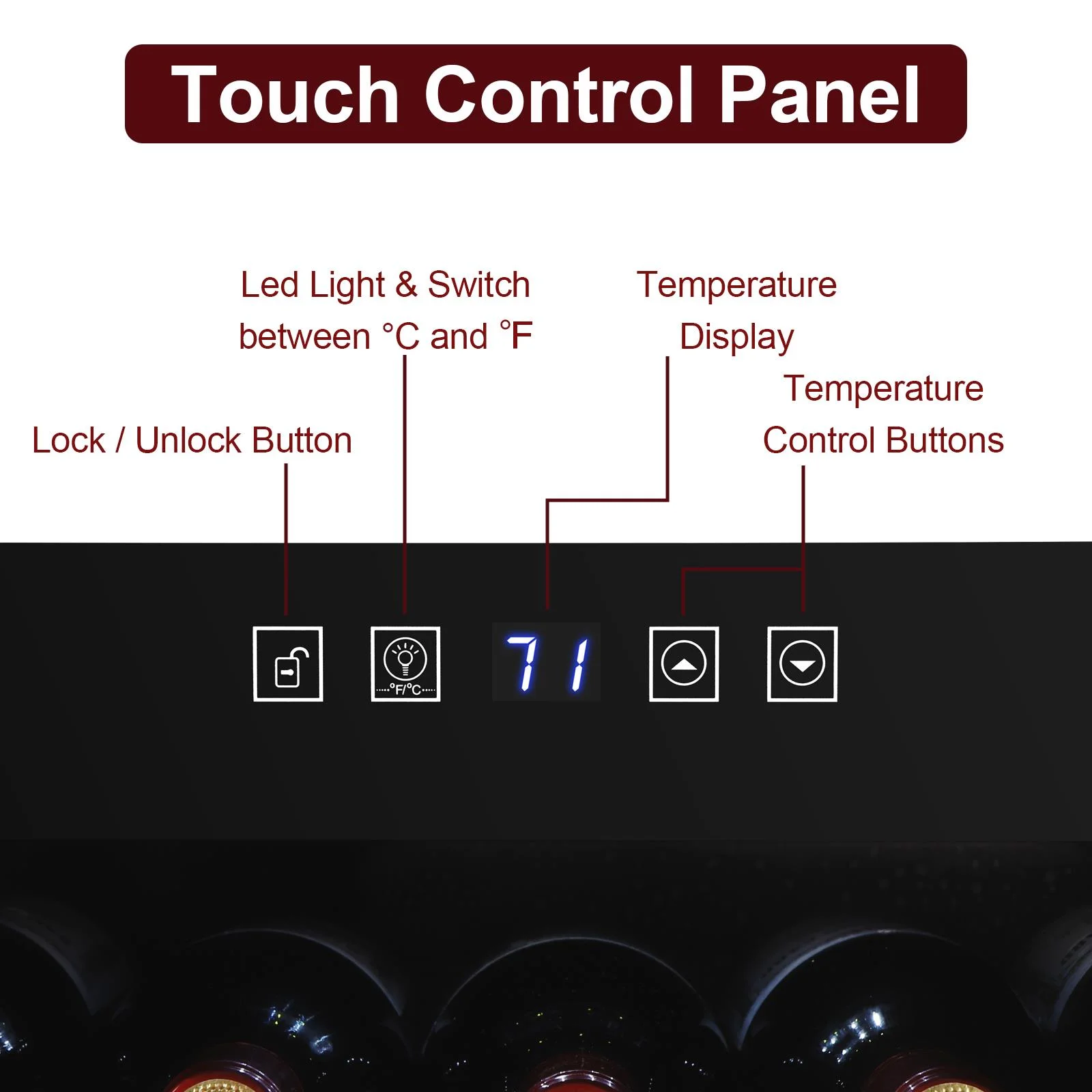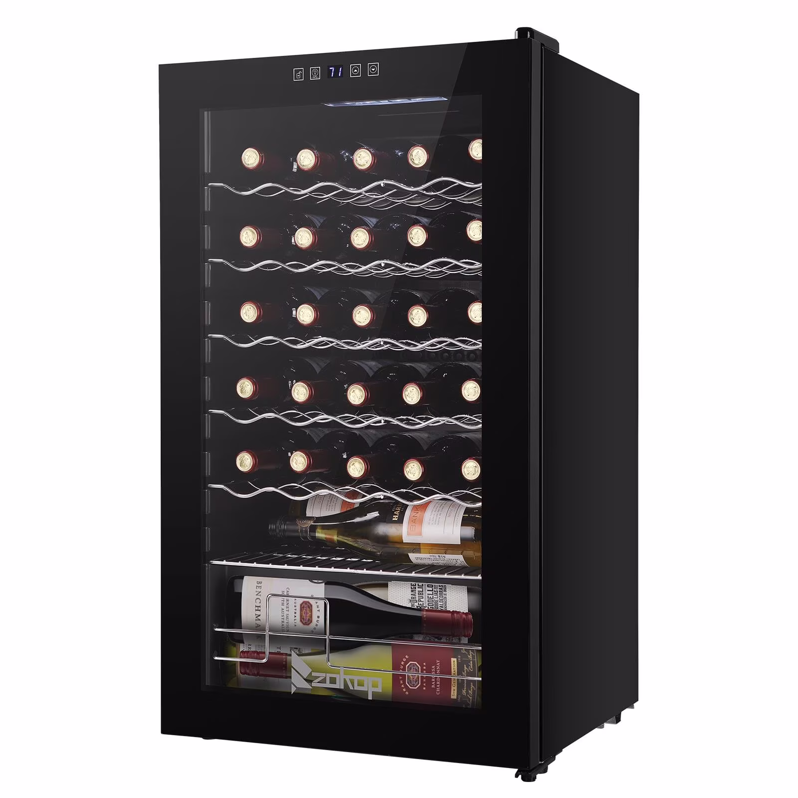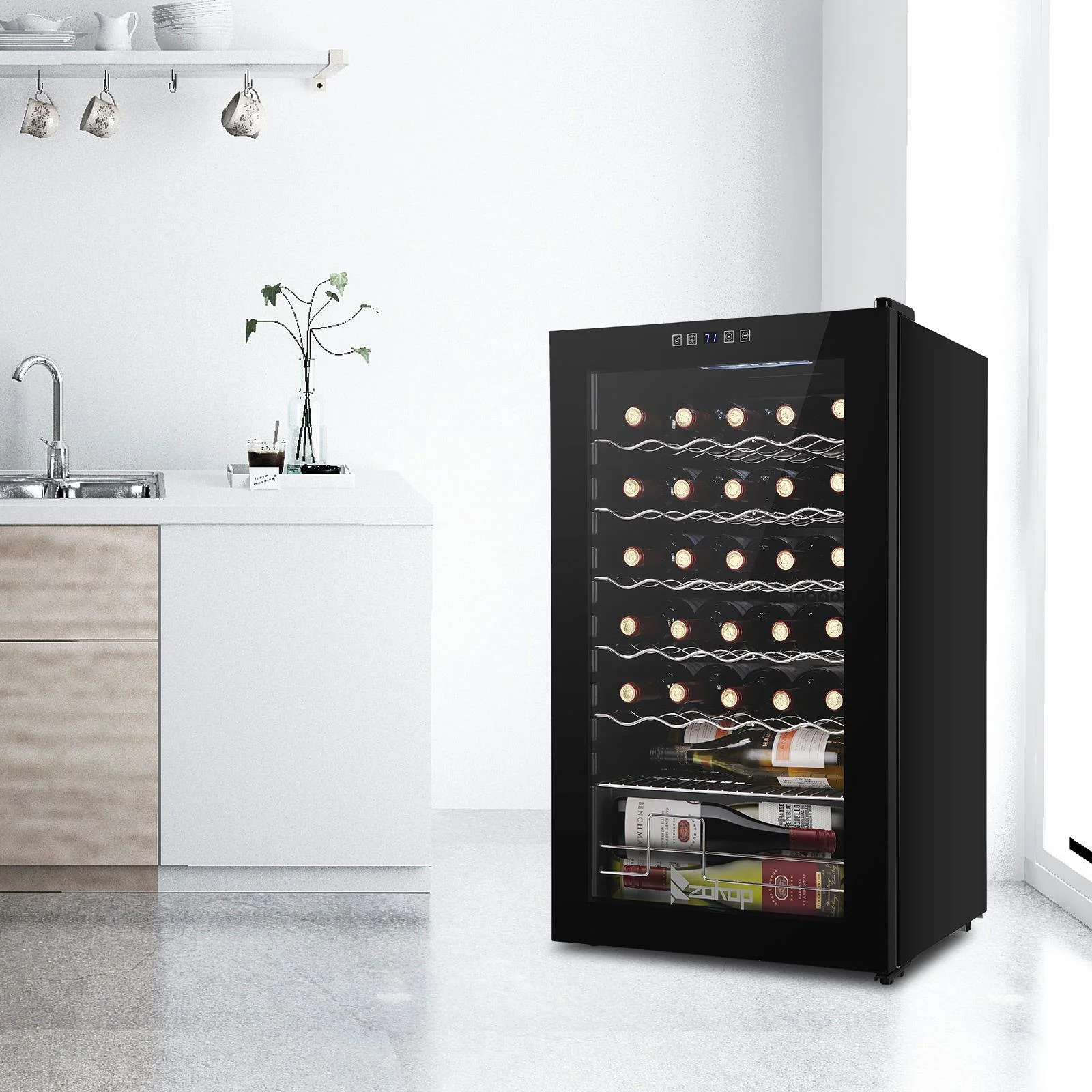 2.Easy use: An easy-to-use digital touchscreen on the front provides easy access to control the internal temperature for your wine collection. LED temperature display always makes the information readable.