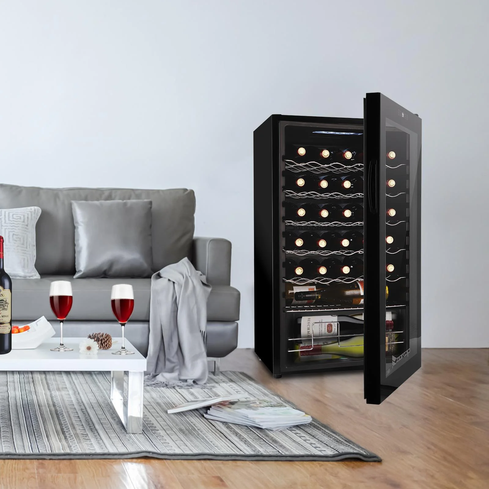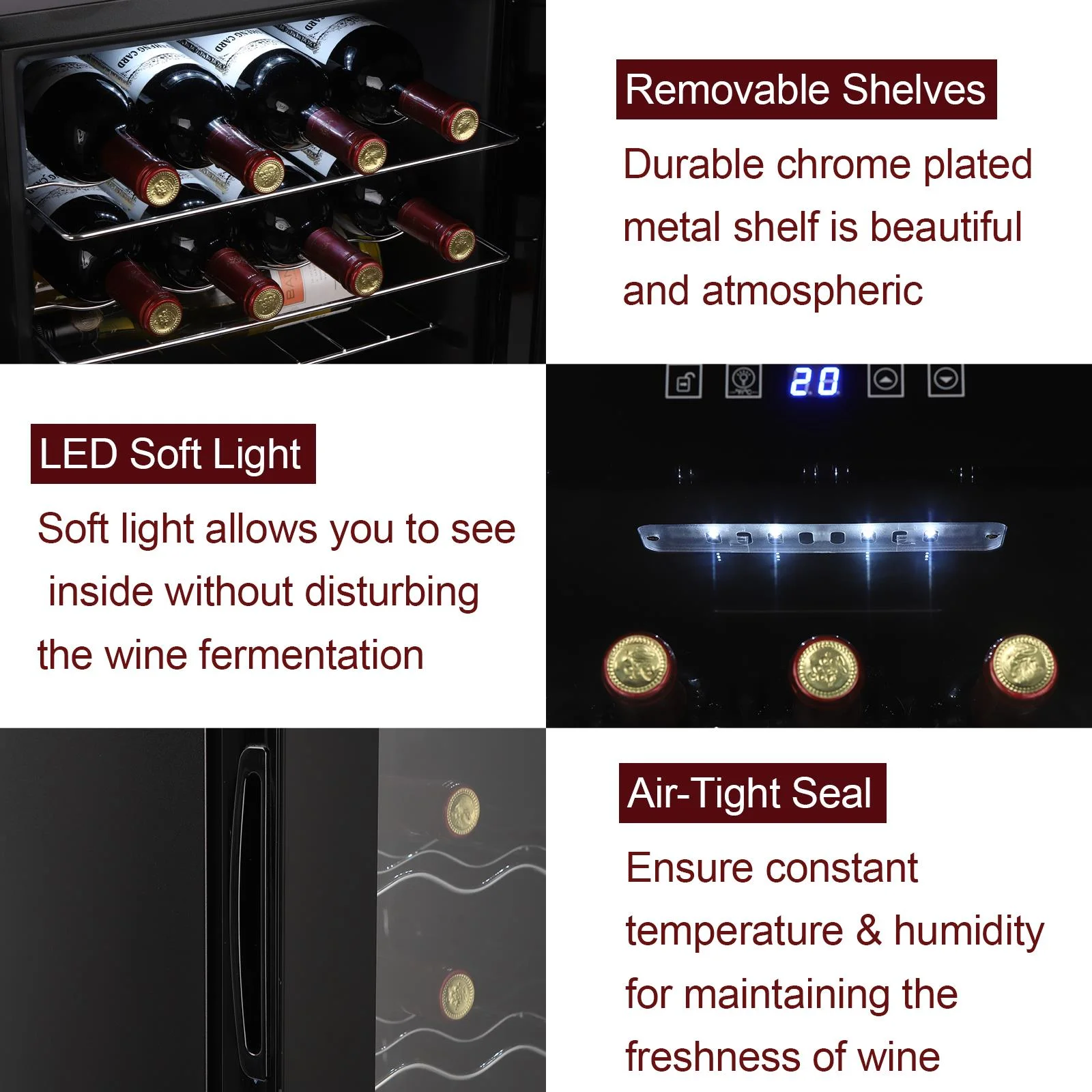 3.Soft interior lighting: Turn on the energy-efficient LED light to gently illuminate your collection. Say goodbye to harsh fluorescent bulbs that fade labels and affect flavor.