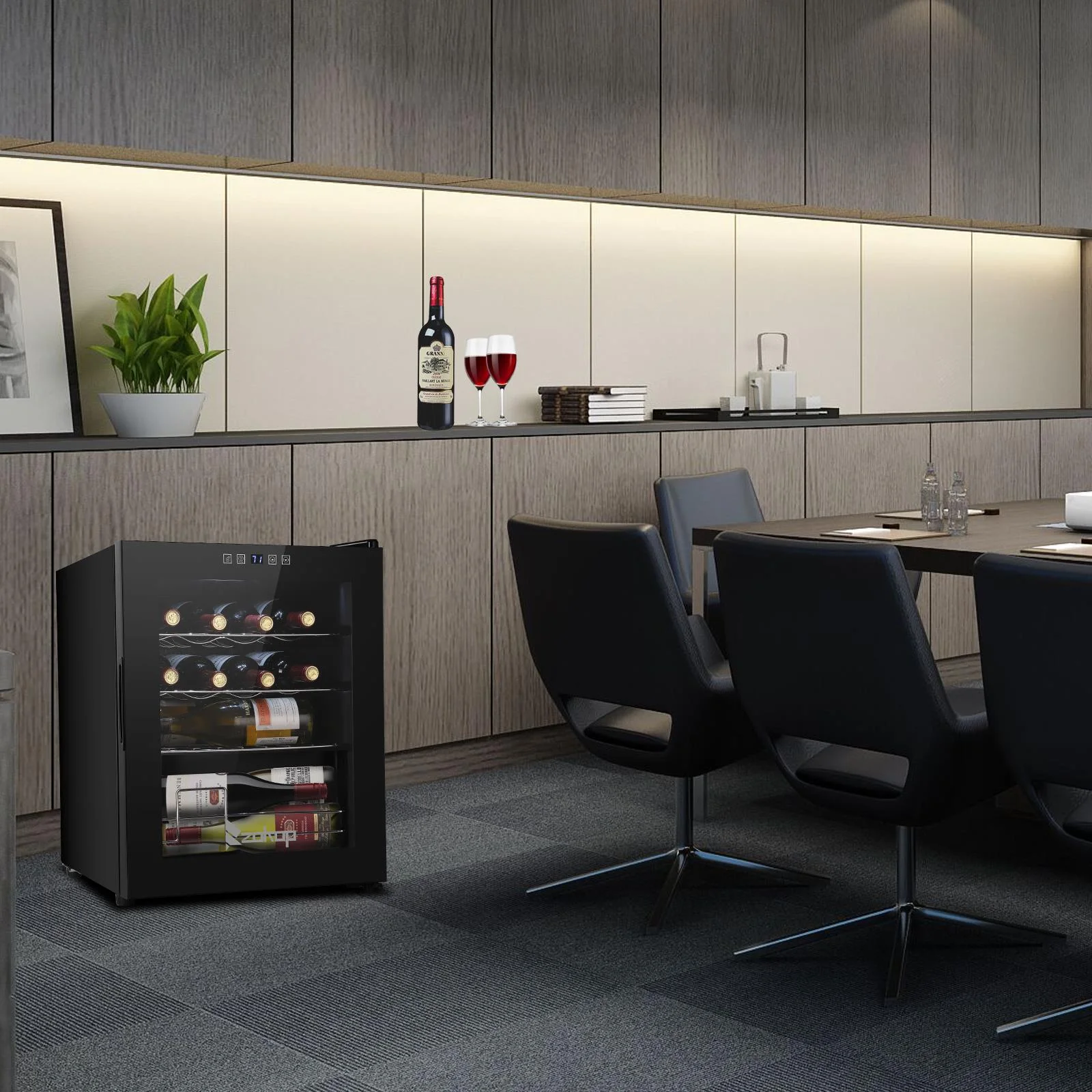 18 Bottle Compressor Wine Cooler. The perfect addition to a wine enthusiast's kitchen, restaurant or office, this wine chilling refrigerator keeps reds and whites the perfect temperature! When you're a wine enthusiast, you know that it's important to keep your wine the right temperature to ensure a deliciously bold flavor-especially when you enjoy a good glass with dinner or hosting those impromptu parties with friends!