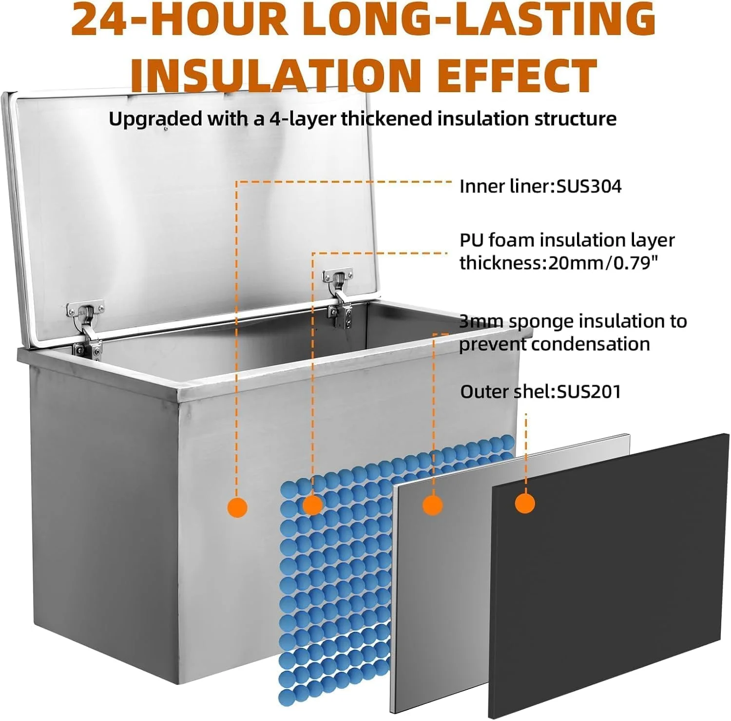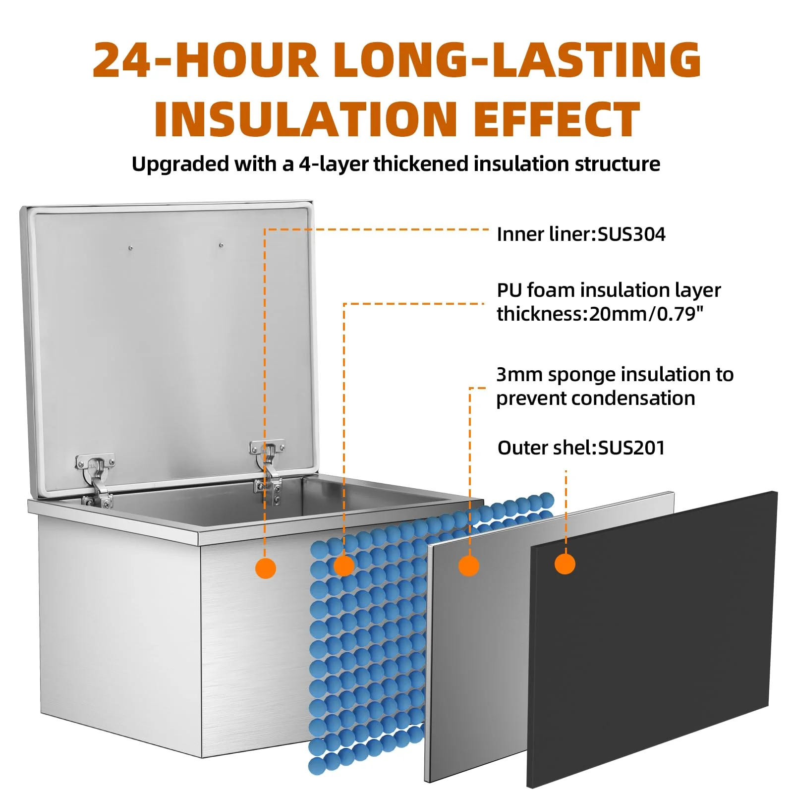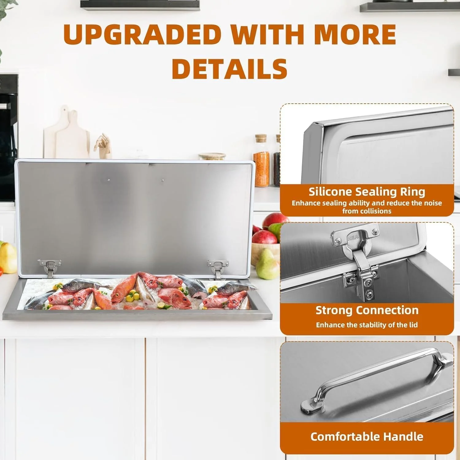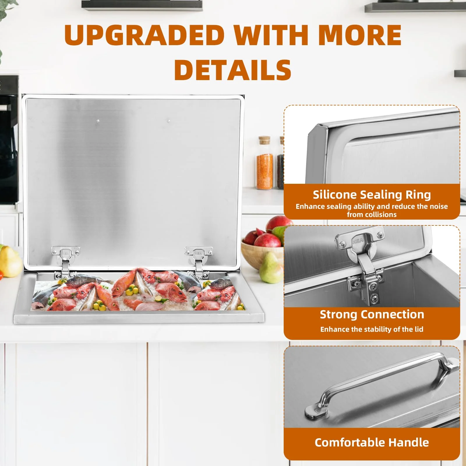 - Easy Installation & Use: The stainless steel ice cooler features a hinged cover for better sealing and a convenient handle for easy access. Complements any outdoor or kitchen decor with its sleek stainless steel finish