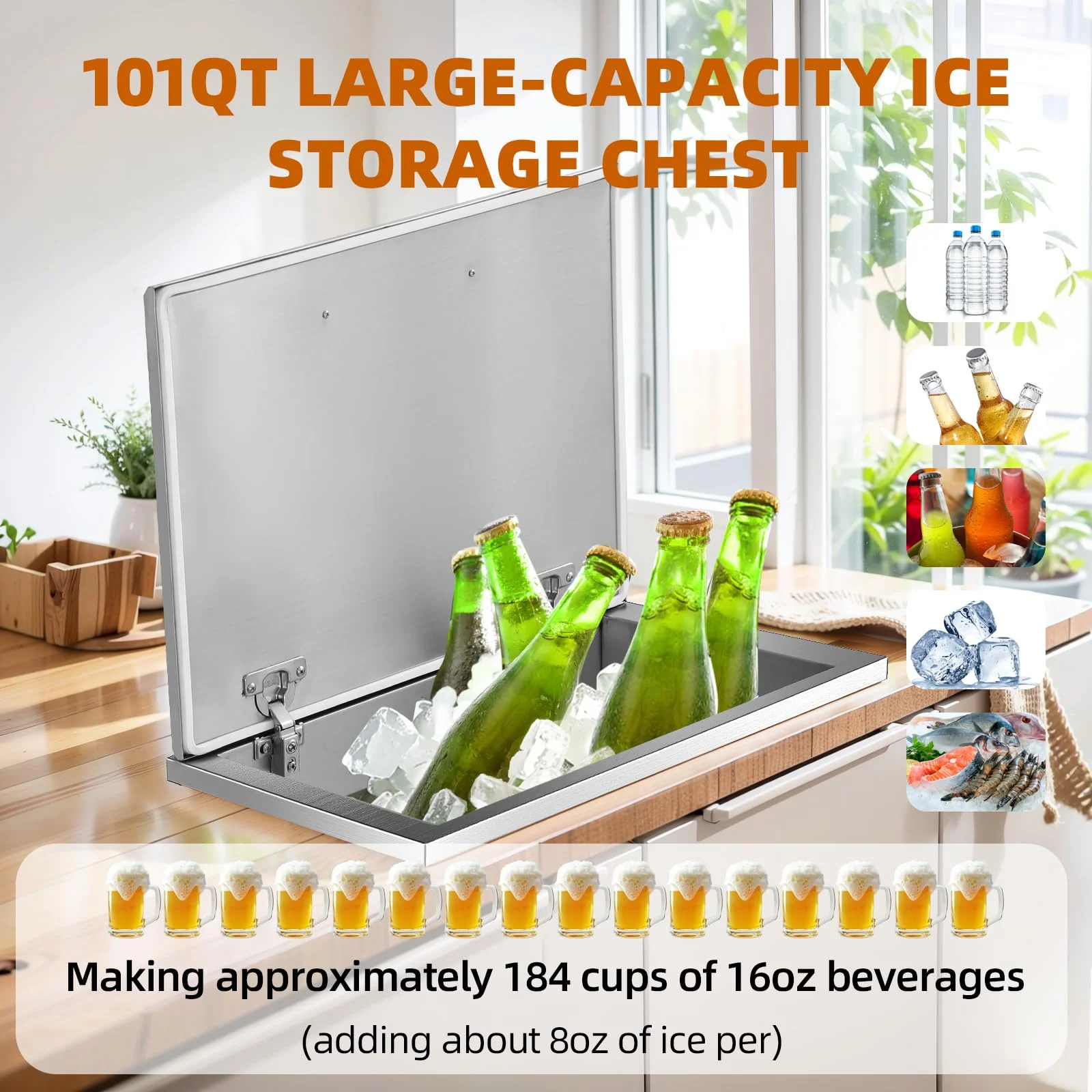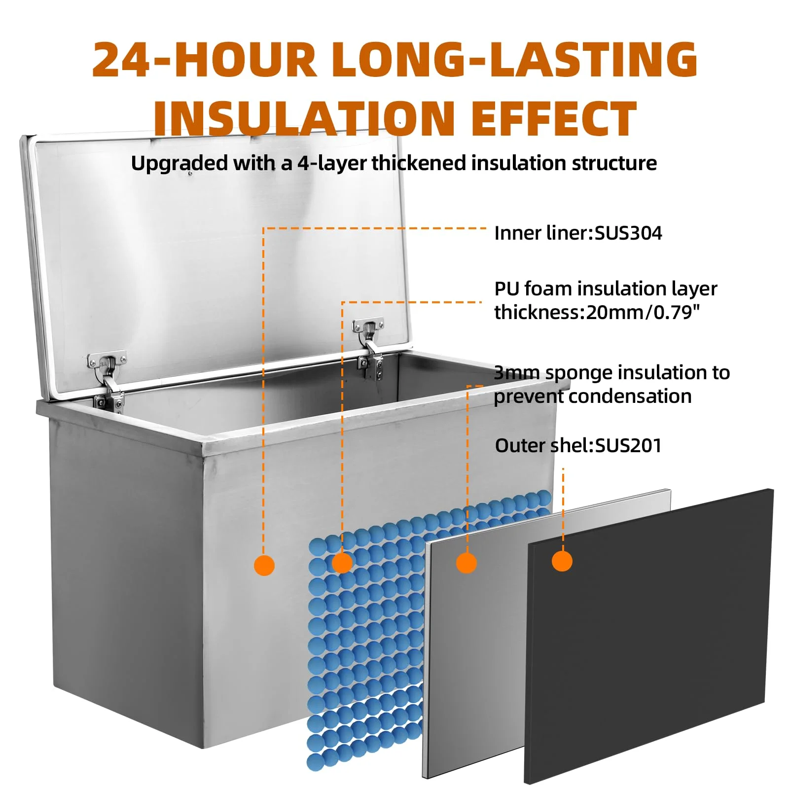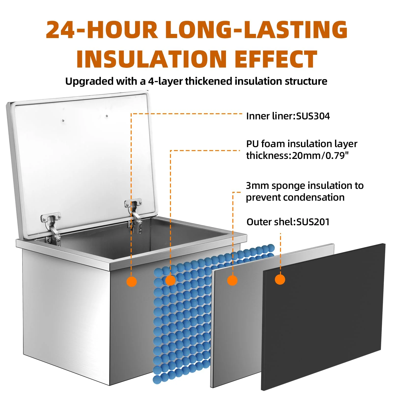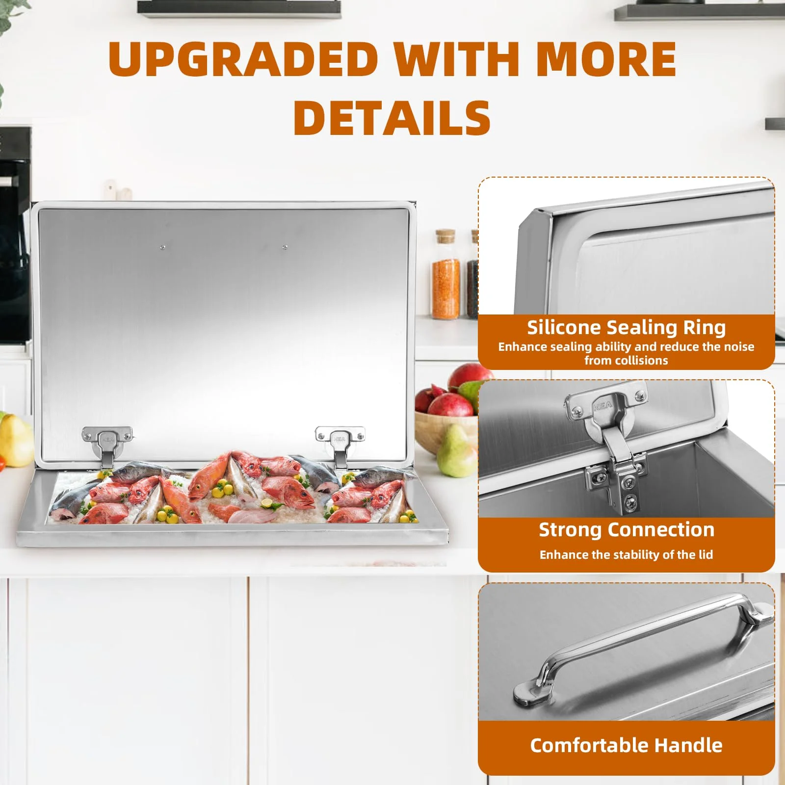 - Easy Installation & Use: The stainless steel ice cooler features a hinged cover for better sealing and a convenient handle for easy access. Complements any outdoor or kitchen decor with its sleek stainless steel finish