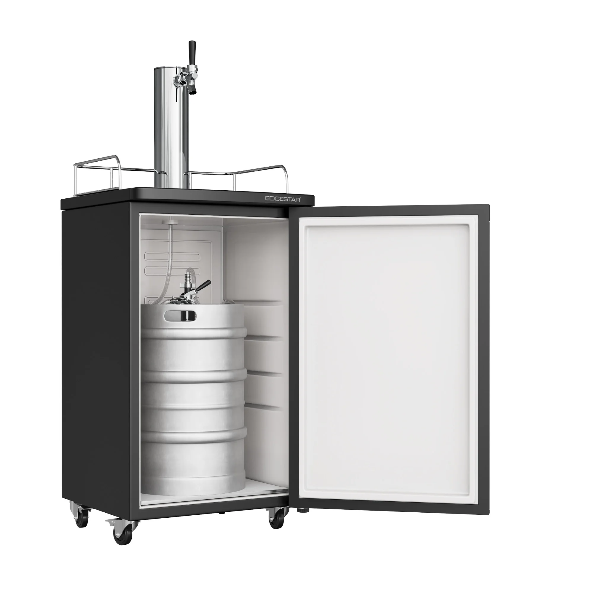 - Stores up to a full sized half shell Sankey standard keg or two sixth kegs; does NOT support use of Coors, Miller rubberized or other oversized kegs