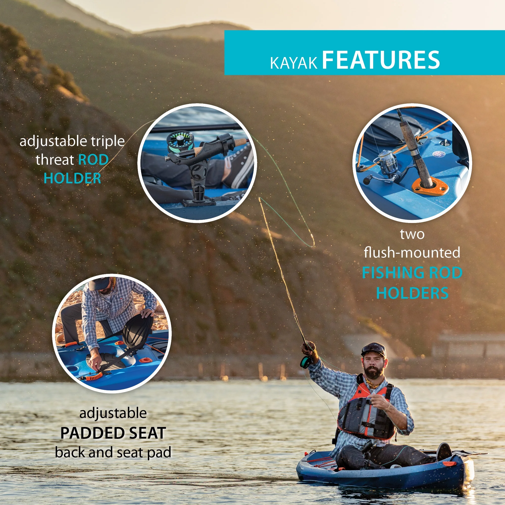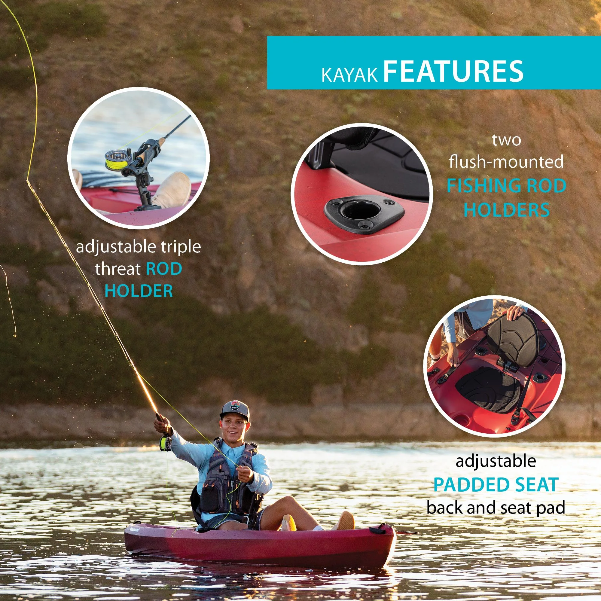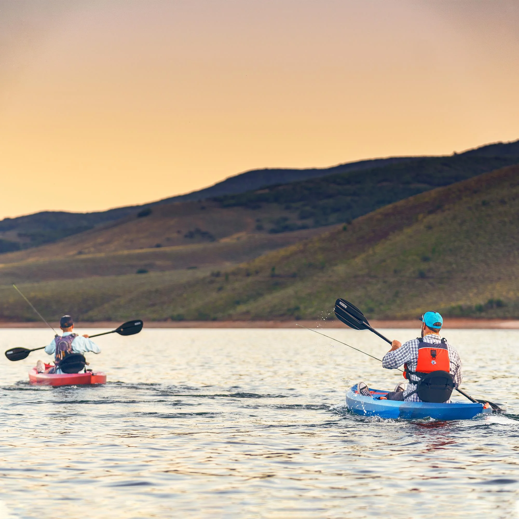 Take some time to relax on the water with family and friends. The Lifetime Tamarack? Angler is a sit-on-top fishing kayak that has a comfortable padded seat and backrest for long fishing adventures. Designed for extreme safety and stability, the Tamarack? Angler has a stable flat bottom with deep tracking channels and stability chine rails. The kayak features durable construction that is UV-protected, and impact resistant. With fishing rod holders, shock cord straps, multiple footrest positions, and a storage hatch, this kayak has plenty of extras to enhance your paddling and fishing experience.