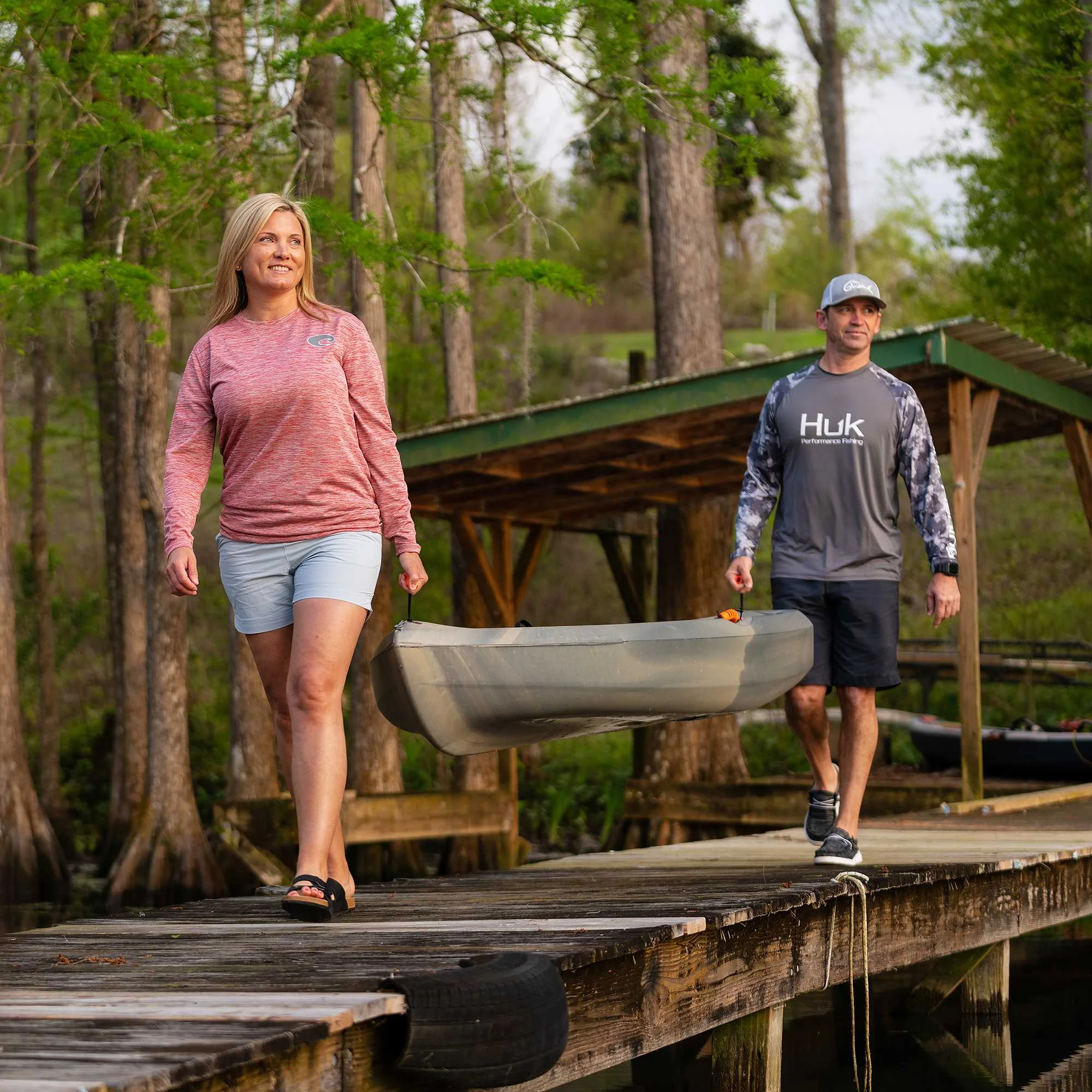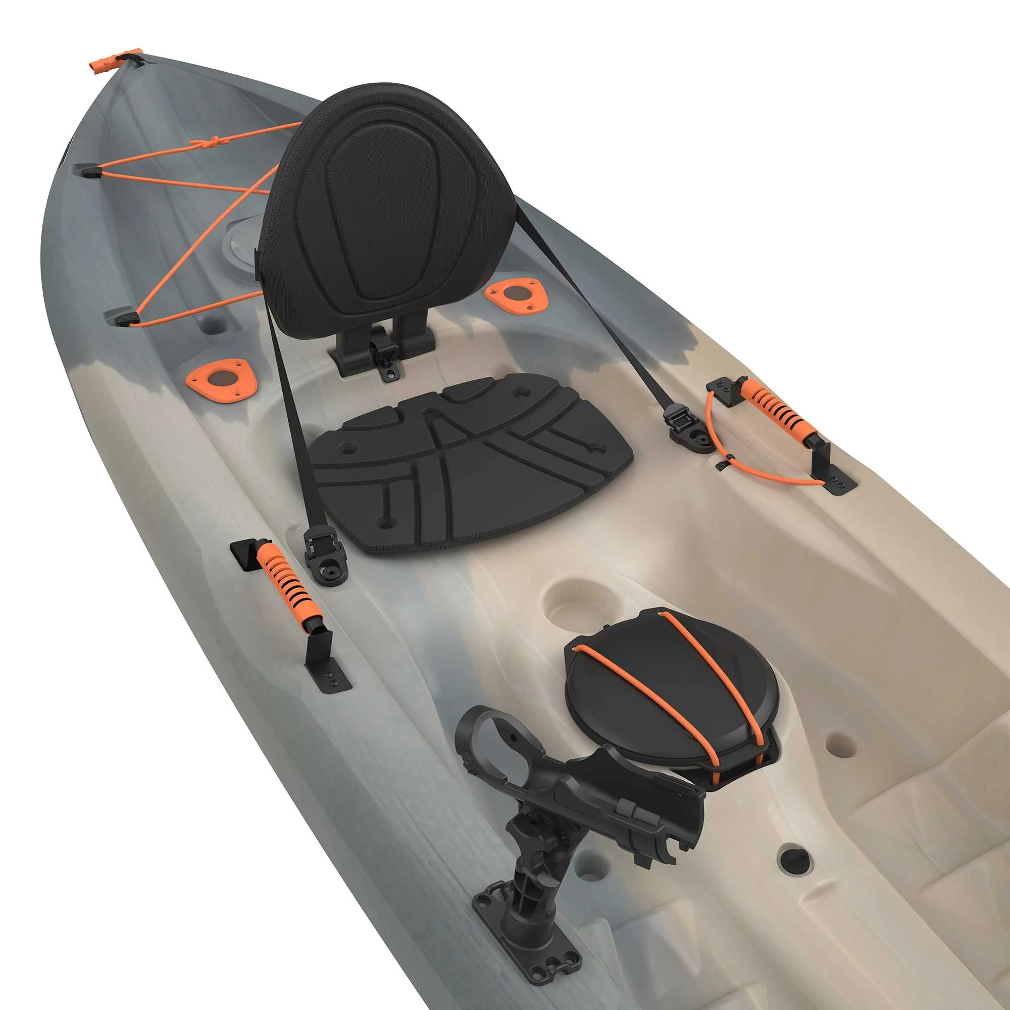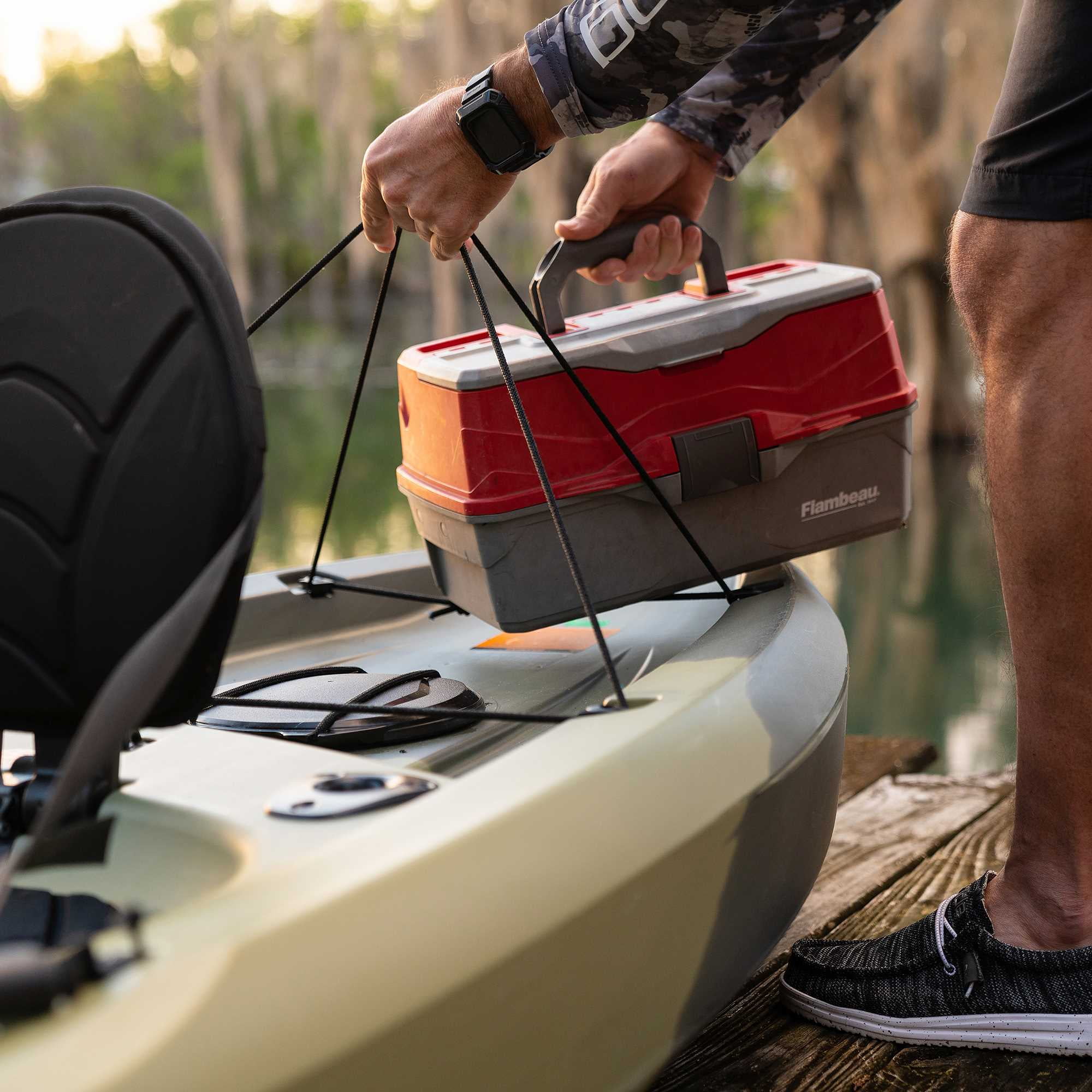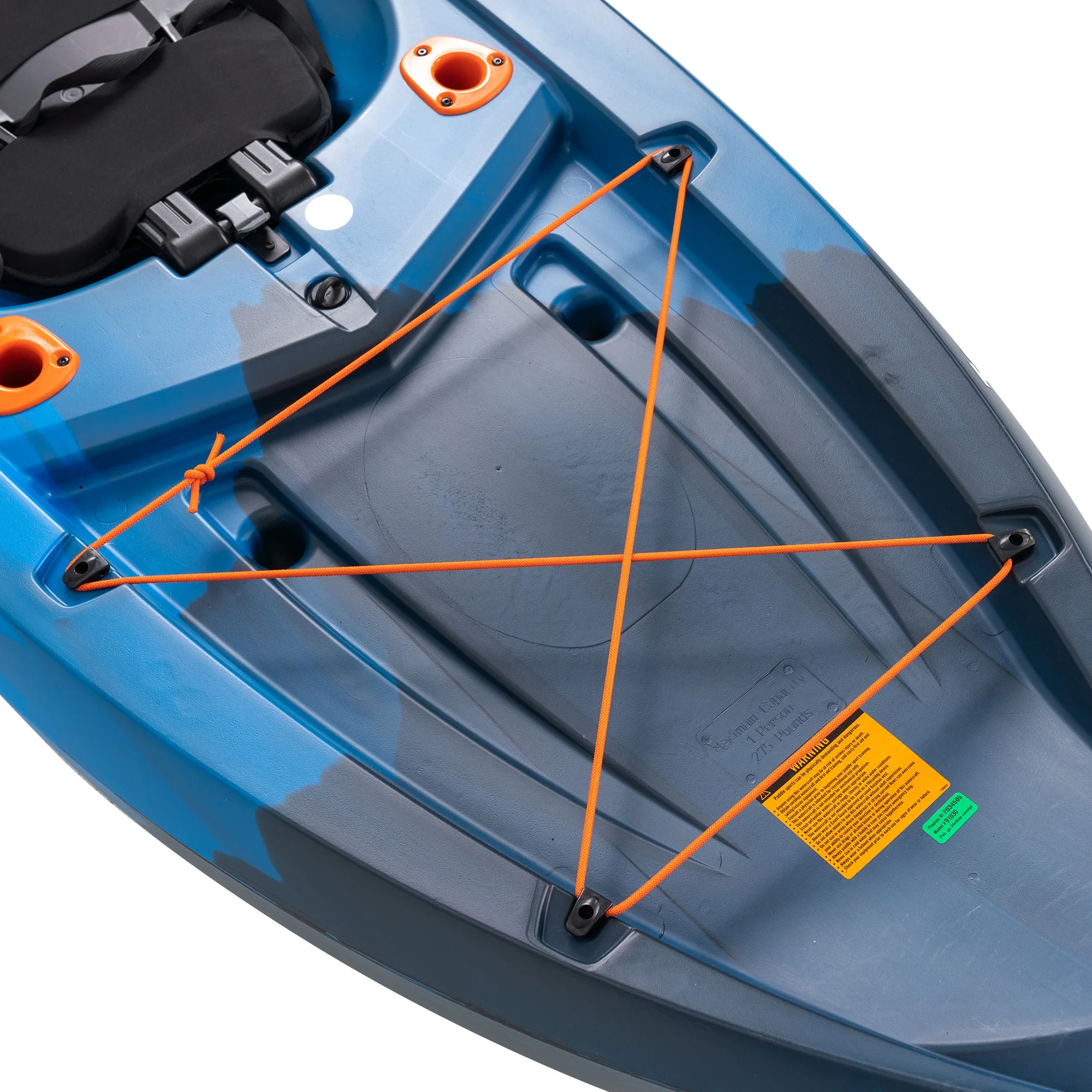 Take some time to relax on the water with family and friends. The Lifetime Tamarack? Angler is a sit-on-top fishing kayak that has a comfortable padded seat and backrest for long fishing adventures. Designed for extreme safety and stability, the Tamarack? Angler has a stable flat bottom with deep tracking channels and stability chine rails. The kayak features durable construction that is UV-protected, and impact resistant. With fishing rod holders, shock cord straps, multiple footrest positions, and a storage hatch, this kayak has plenty of extras to enhance your paddling and fishing experience.