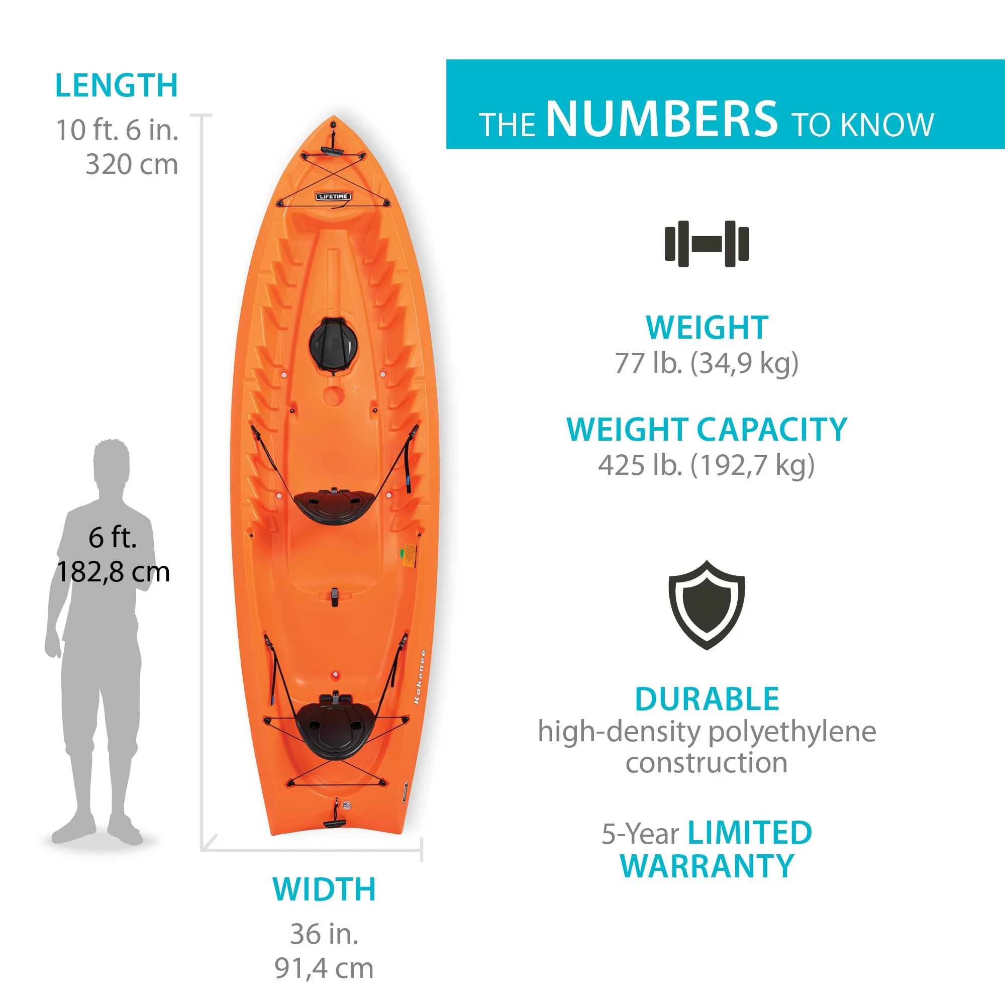 - Lifetime Kokanee Orange 10 ft. 6 in. Tandem Recreational Kayak