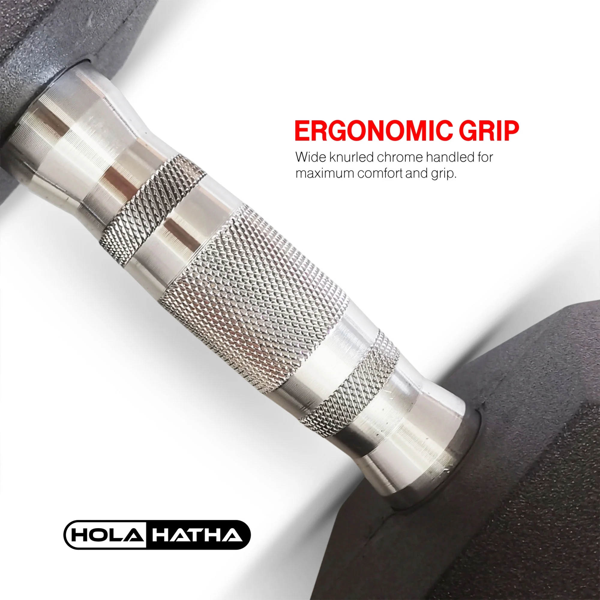- Crafted from robust poly rubber, these dumbbells are built to withstand the impact of rigorous workouts, ensuring longevity and reliable performance