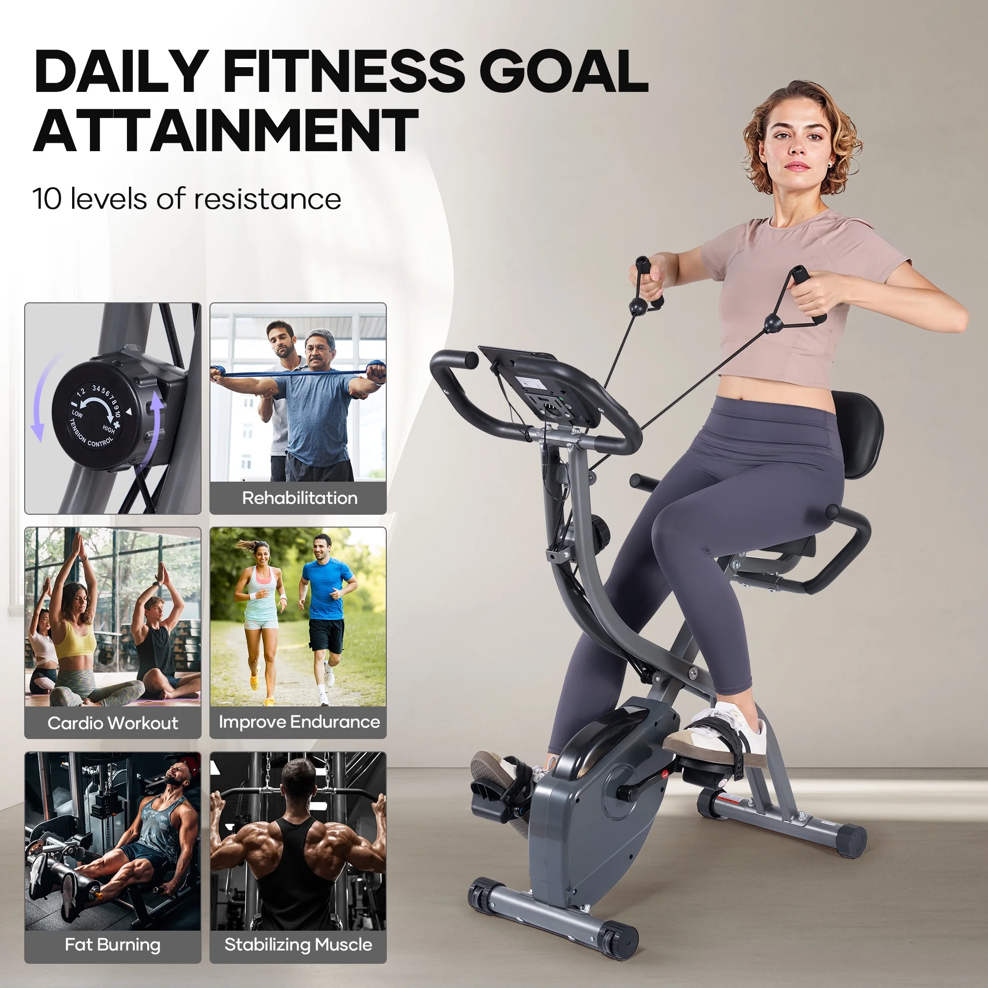 - 💪Magnetic resistance with arm resistance band: the exercise bike with 10 levels of adjustable resistance allows you to customize your own workout. The magnetic resistance of the exercise bike ensures smooth and quiet workouts while cycling.