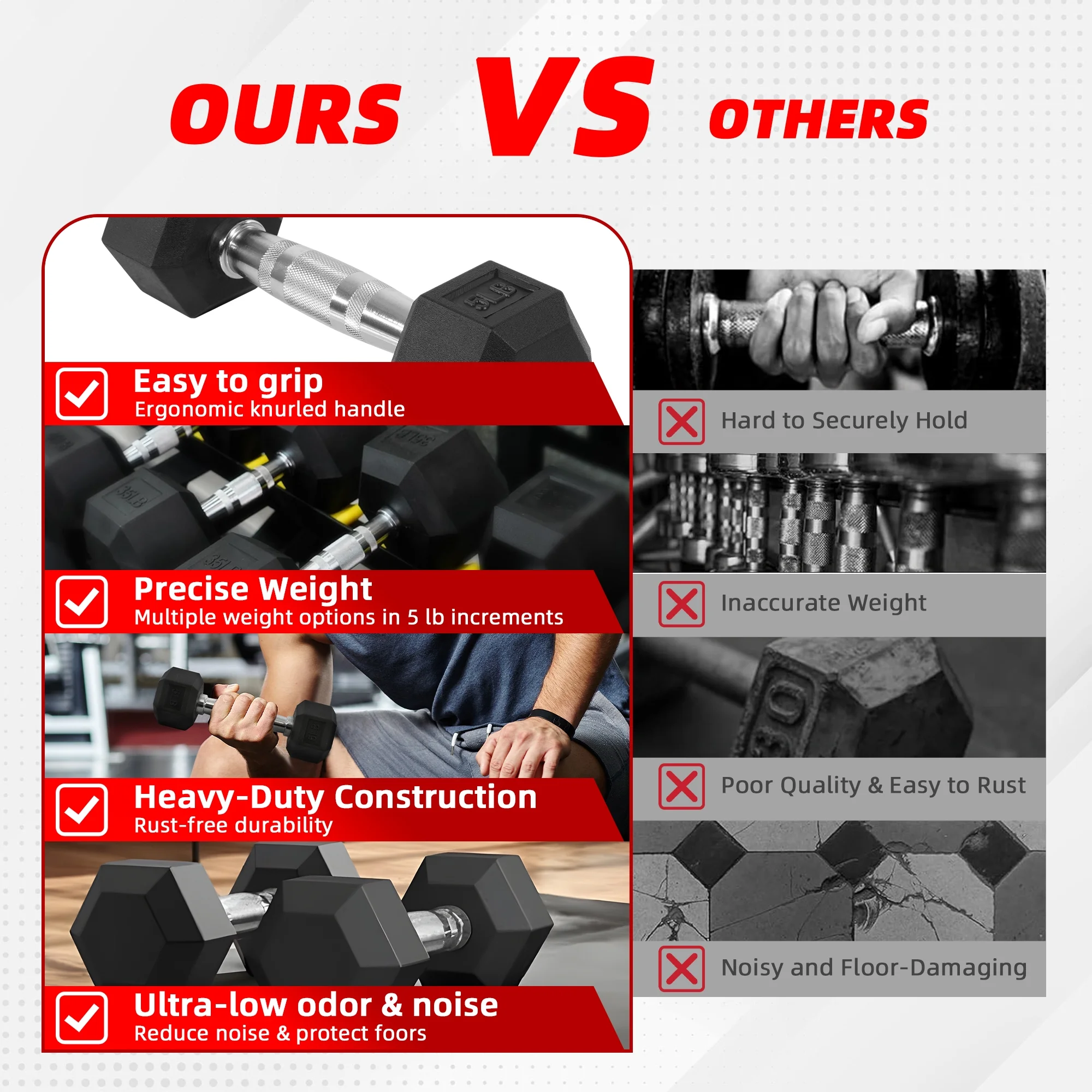 • Rubber Hex Dumbbells