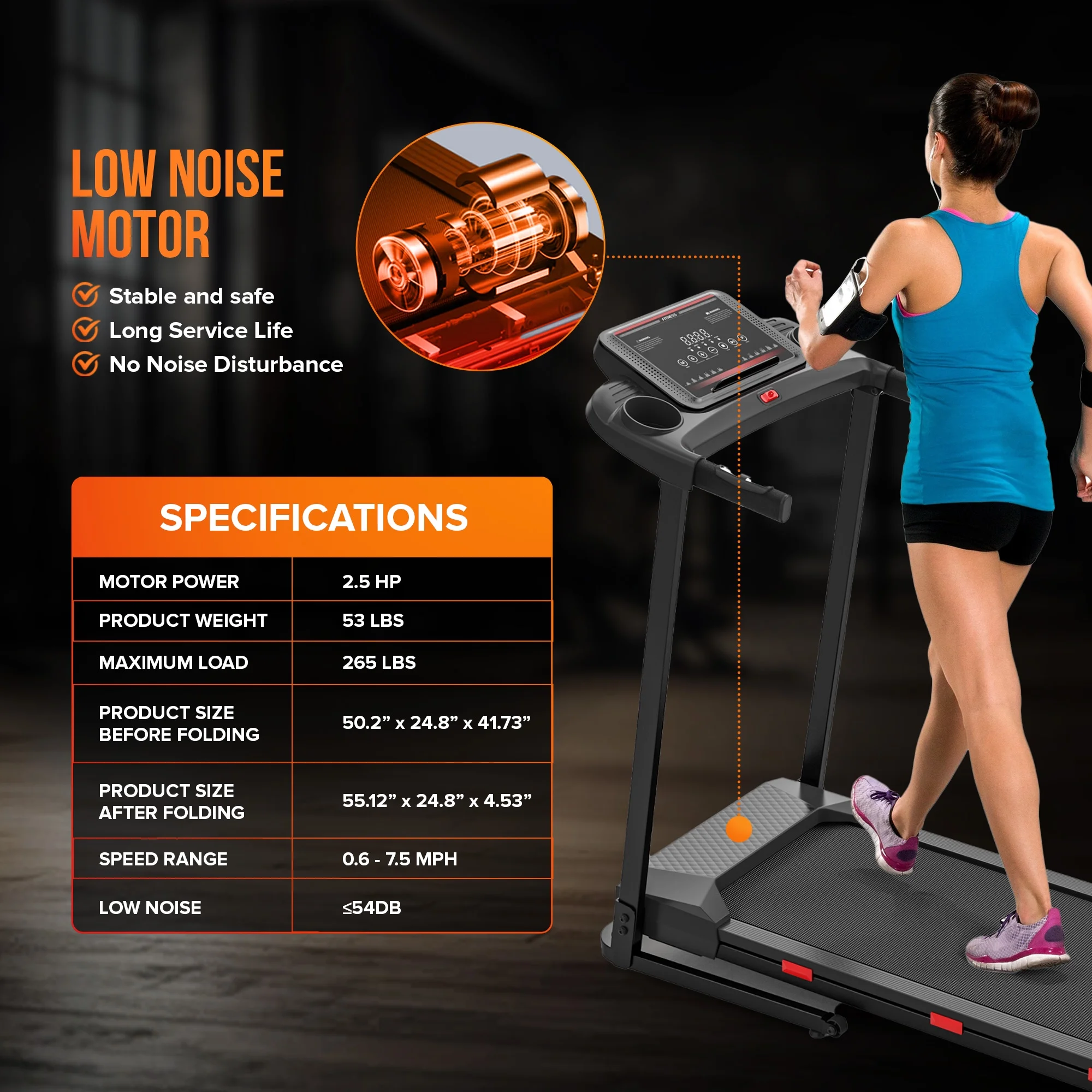 Challenge your endurance with the fixed slope of our running machine, enhancing calorie burn and muscle engagement. You can also customize your pace between 1.0 and 7.6 mph, perfect for both beginners and advanced users.