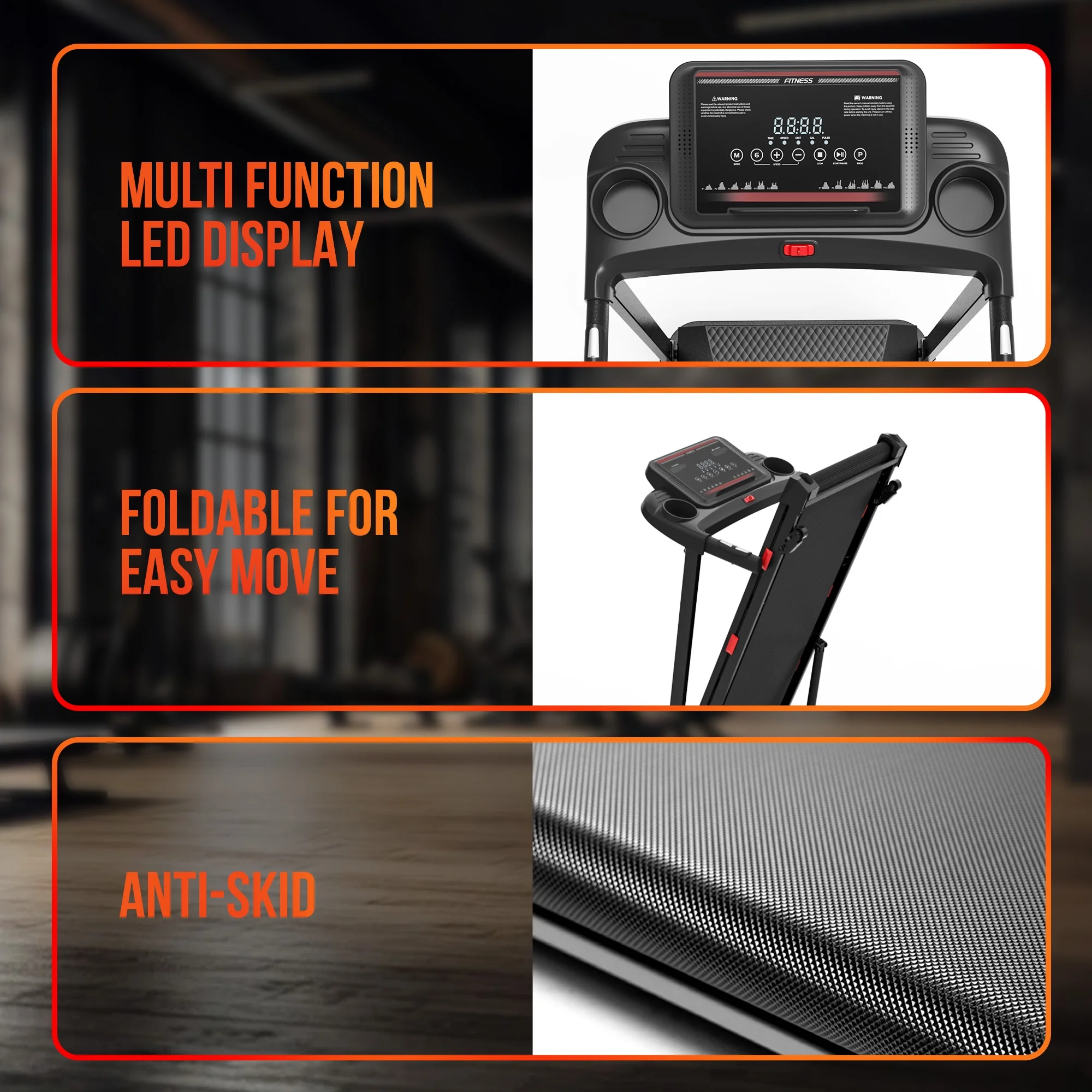 Stay on top of your progress with our treadmill for home use. The console displays essential stats like speed, calories burned, distance covered, and time elapsed, turning every session into a goal-crushing workout.