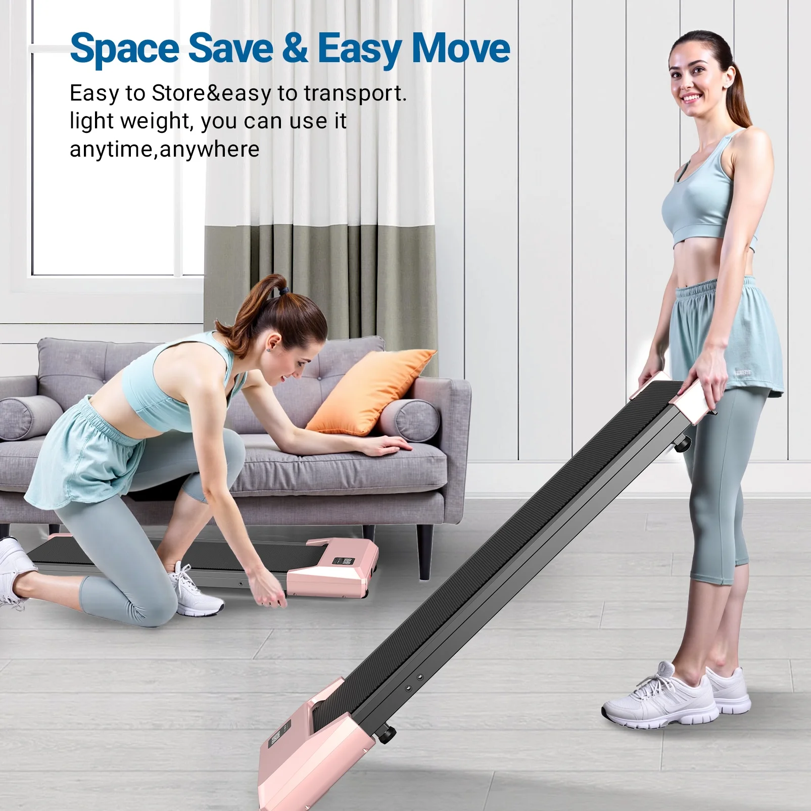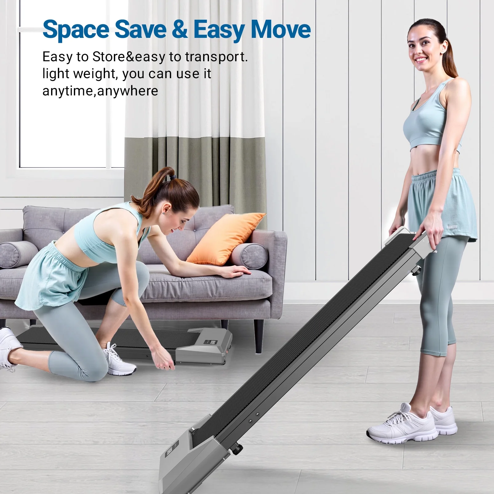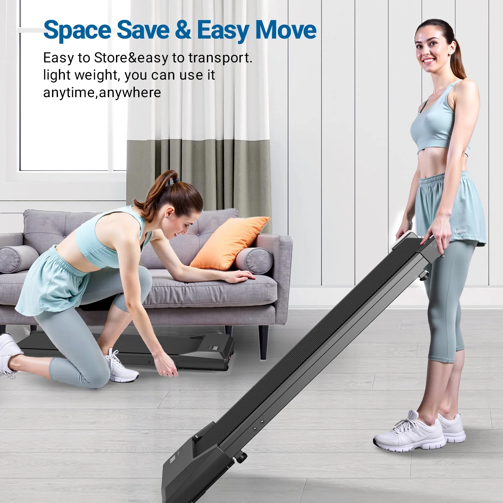 - Portable & Compact Design--MJWW walking pad treadmill is designed to be a super space-saving walking machine for home office workout as this walking pad weighs only 41.8 pounds and has a small size of only 44*20*4.5 inches, with the built-in wheels you can easily stored the walking pad under the office desk, bed or sofa.