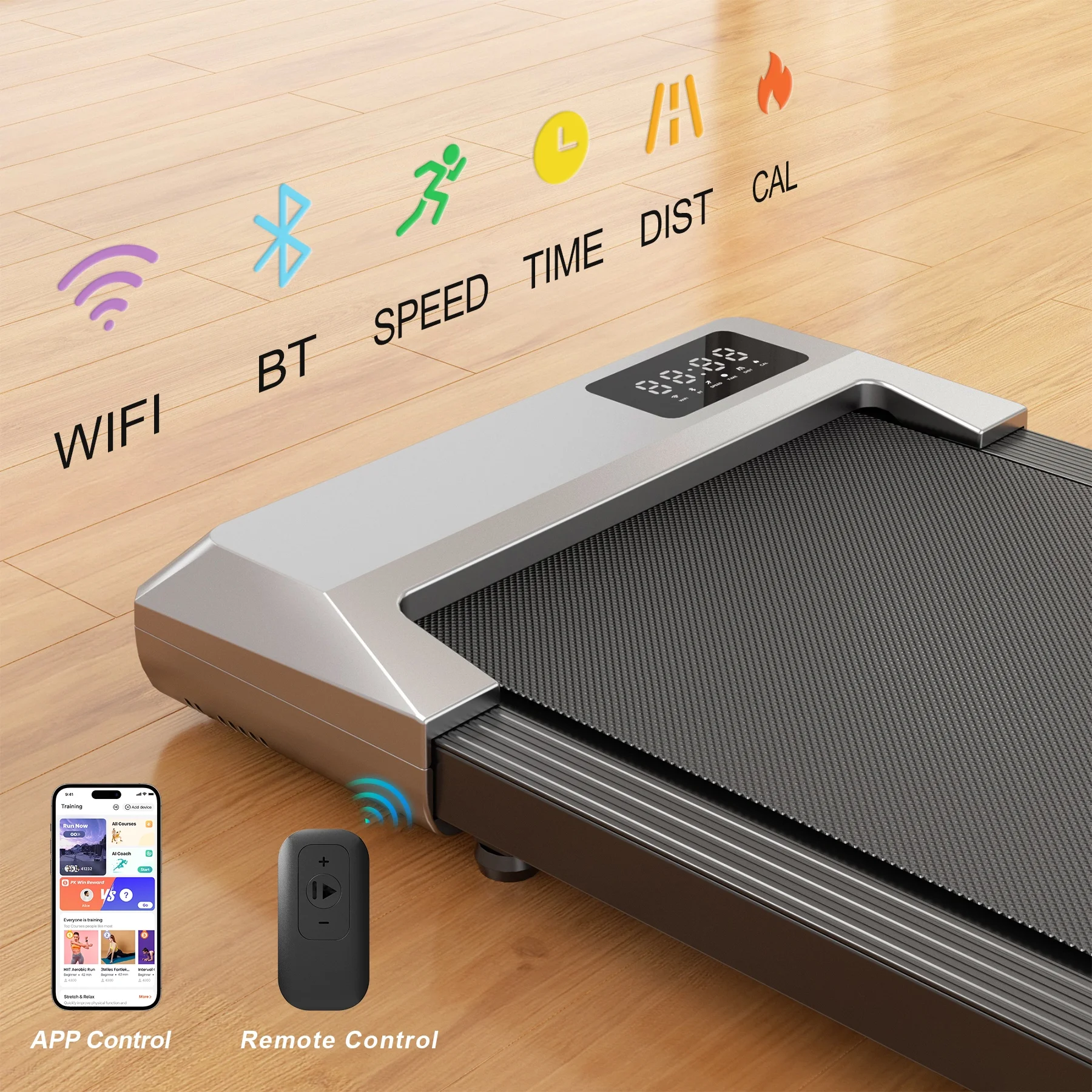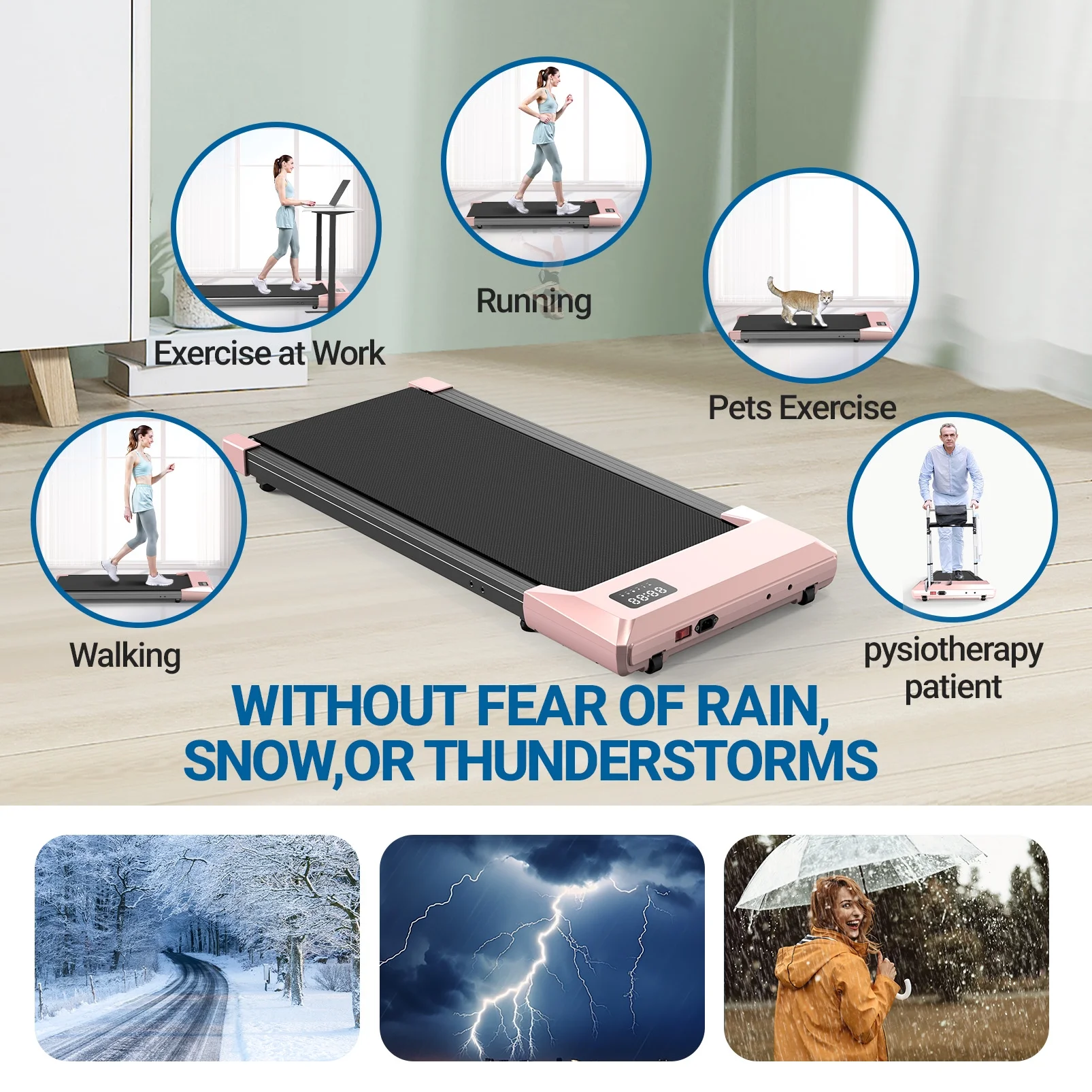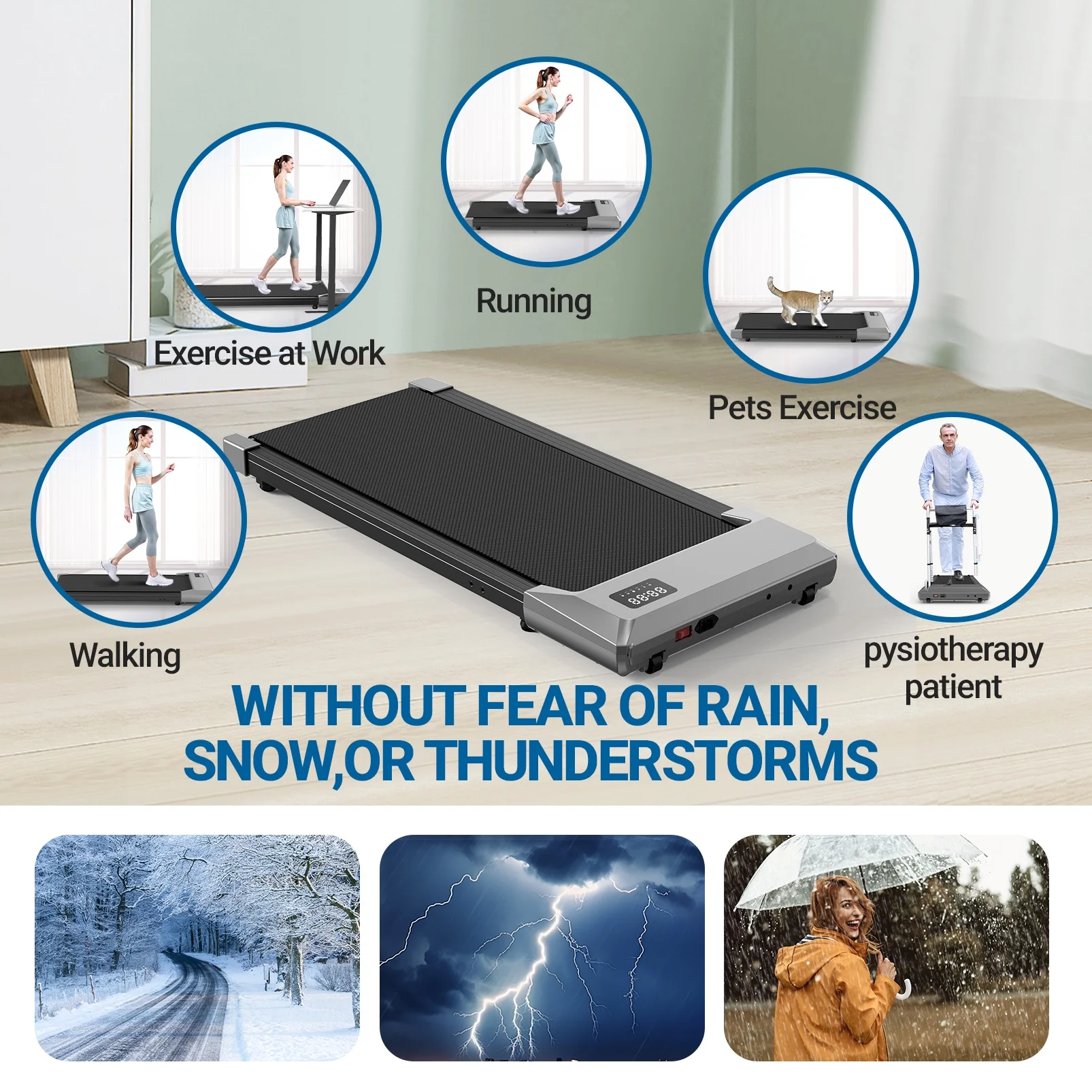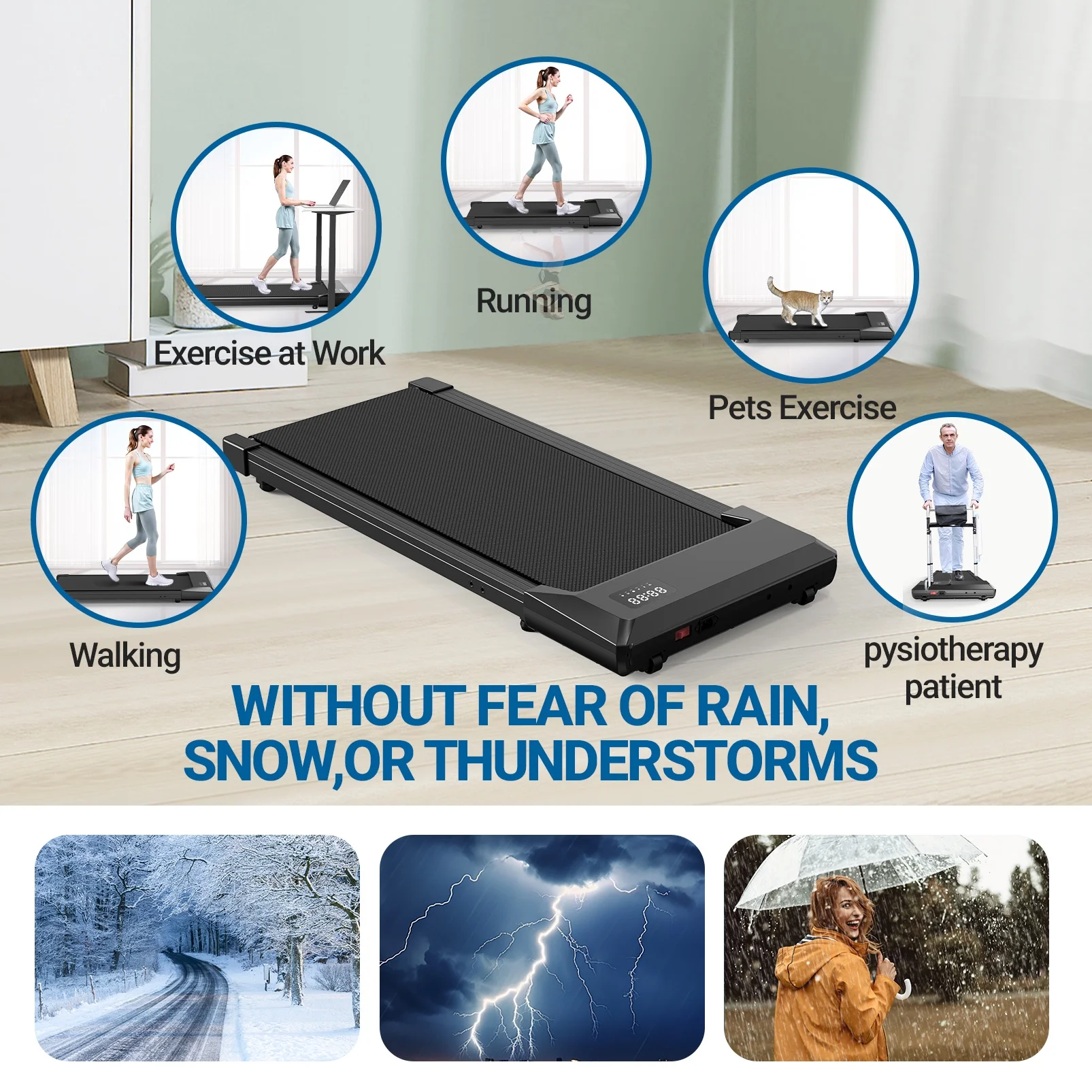 - Portable & Compact Design--MJWW walking pad treadmill is designed to be a super space-saving walking machine for home office workout as this walking pad weighs only 41.8 pounds and has a small size of only 44*20*4.5 inches, with the built-in wheels you can easily stored the walking pad under the office desk, bed or sofa.