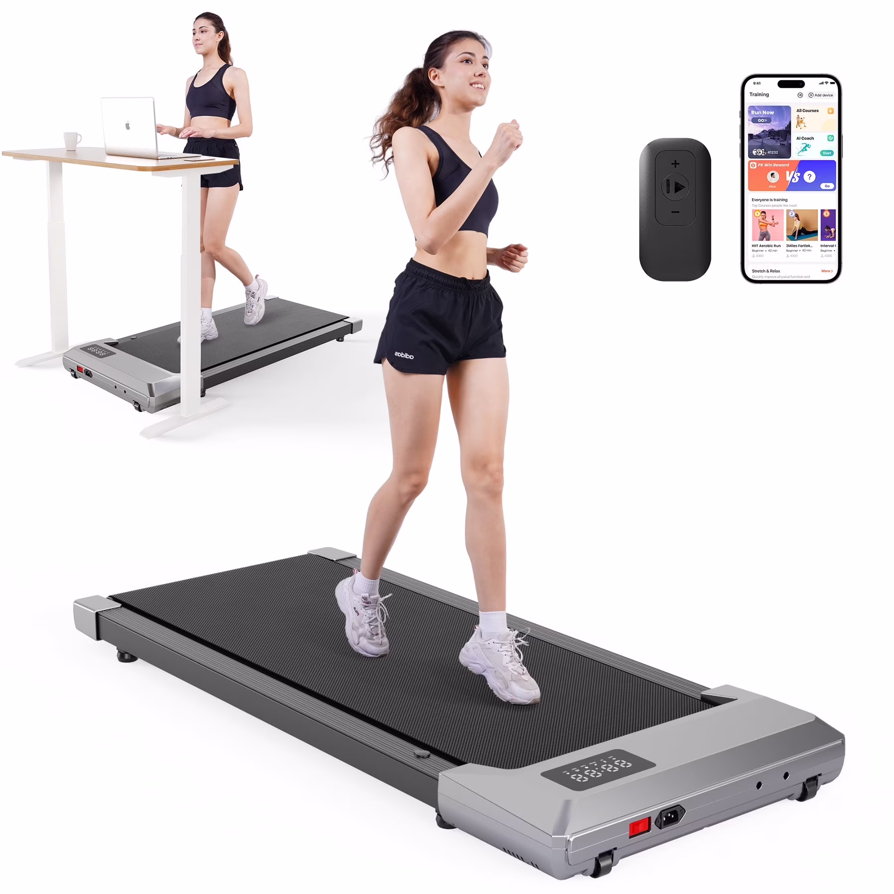 Walking Pad 2 in 1 Under Desk Treadmill, 2.5HP Low Noise Walking Pad Running Jogging Machine with Remote Control for Home Office, Lightweight Portable Desk Treadmill Installation Free