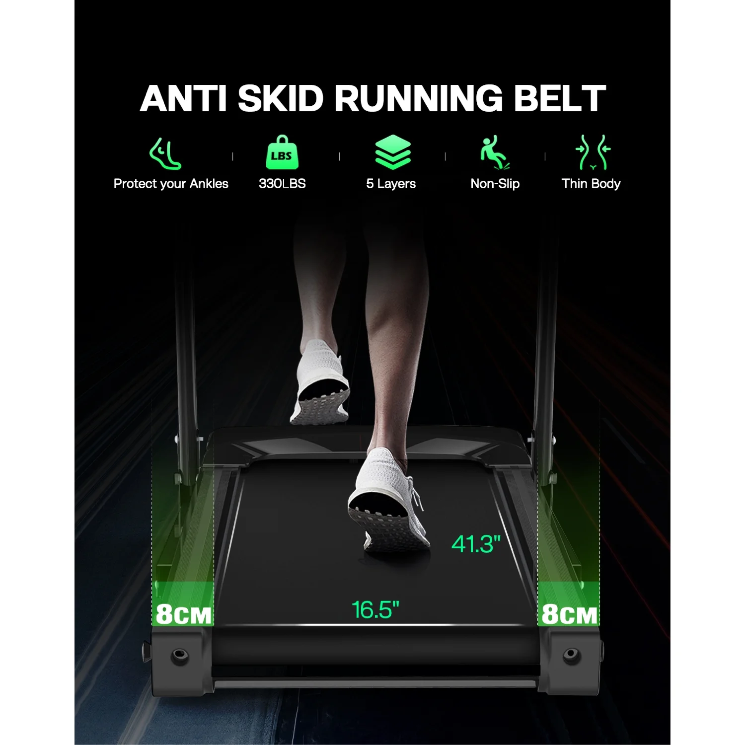 Anti Slip Tread Belt and Spacious Running Space