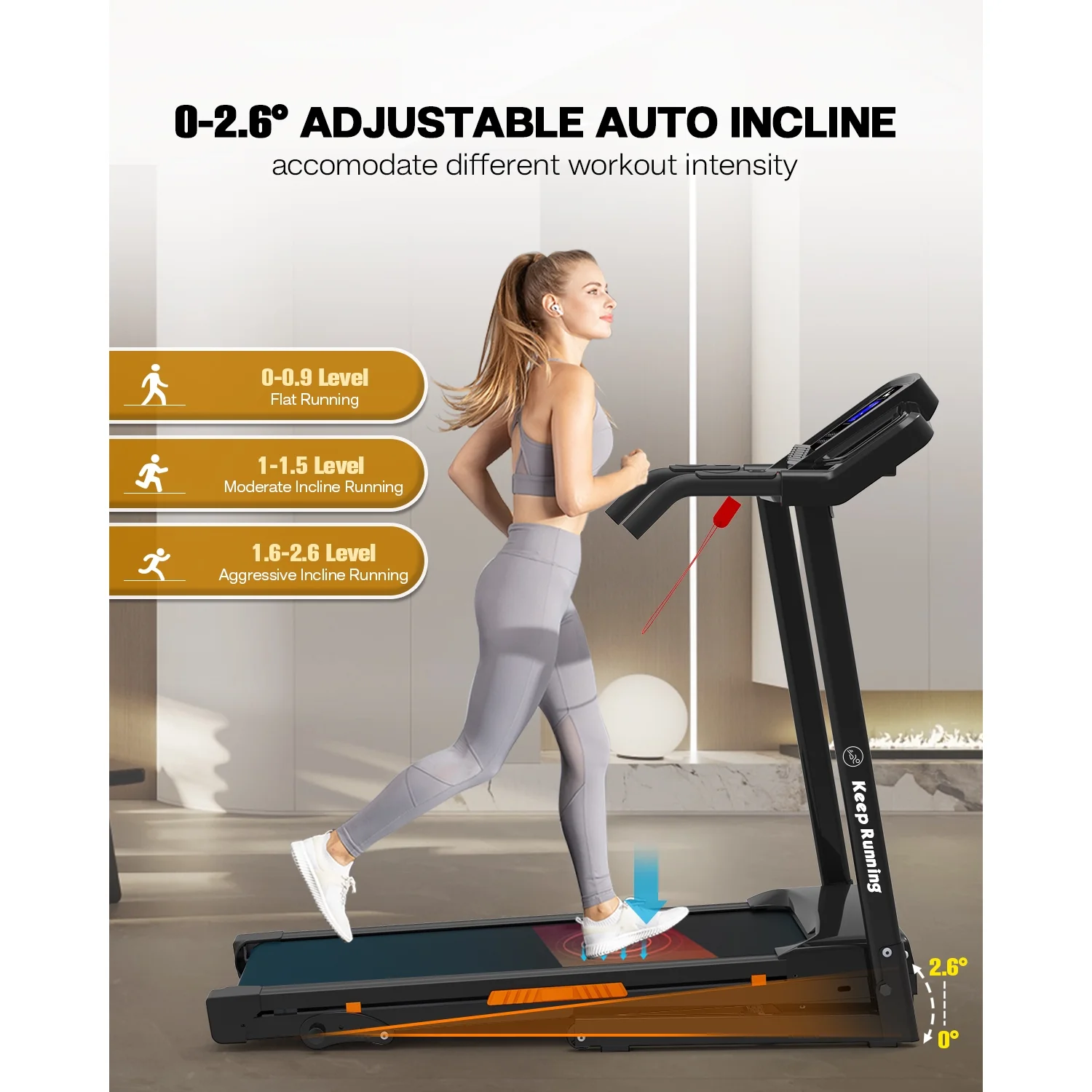 When running you can simply attach the safety clip to your clothes and run as normal, it will auto stop if you fall or drift back dangerously on the treadmill the auto stop function which will minimize the risk of injury.
