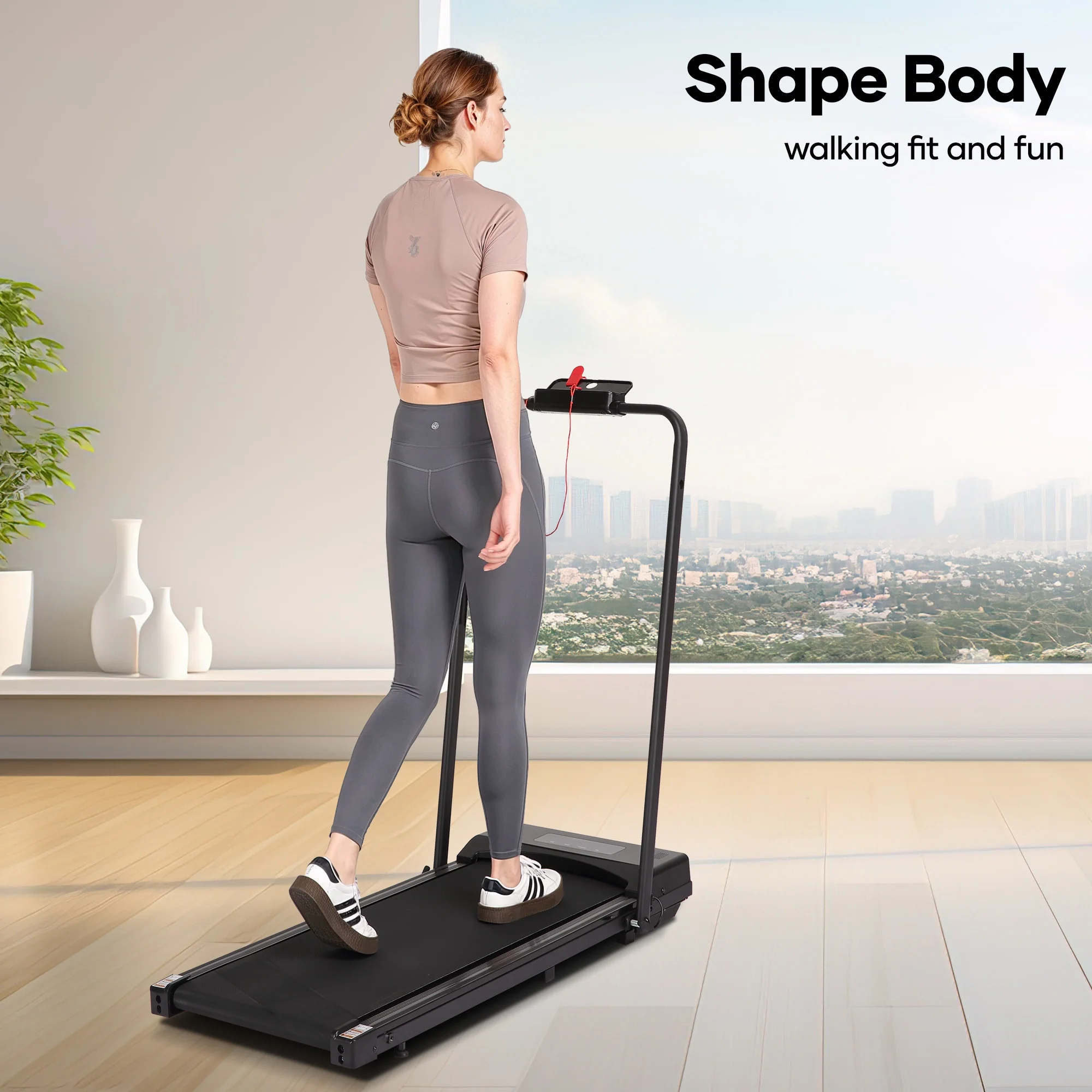 - �?/font>Your Ideal Home Treadmill�?/font> Compact and folding treadmill is ideal for small spaces and convenient storage.Our 2-in-1 treadmill features quick folding with 2 wheels for easy mobility. Treadmill incorporates safety features such as emergency stop buttons and handrail controls, ensuring added peace of mind during running.