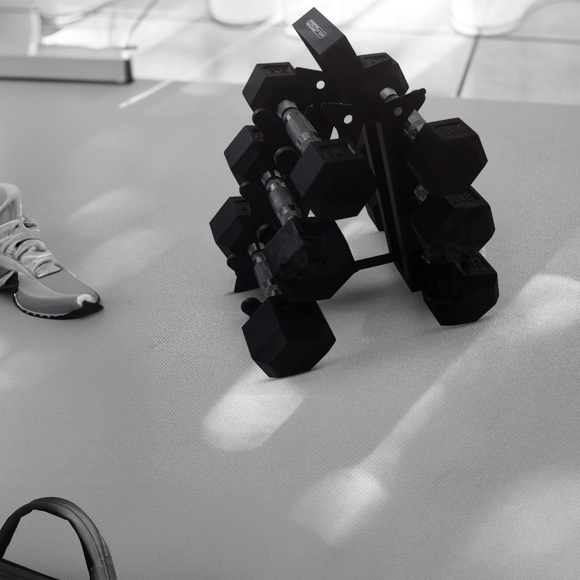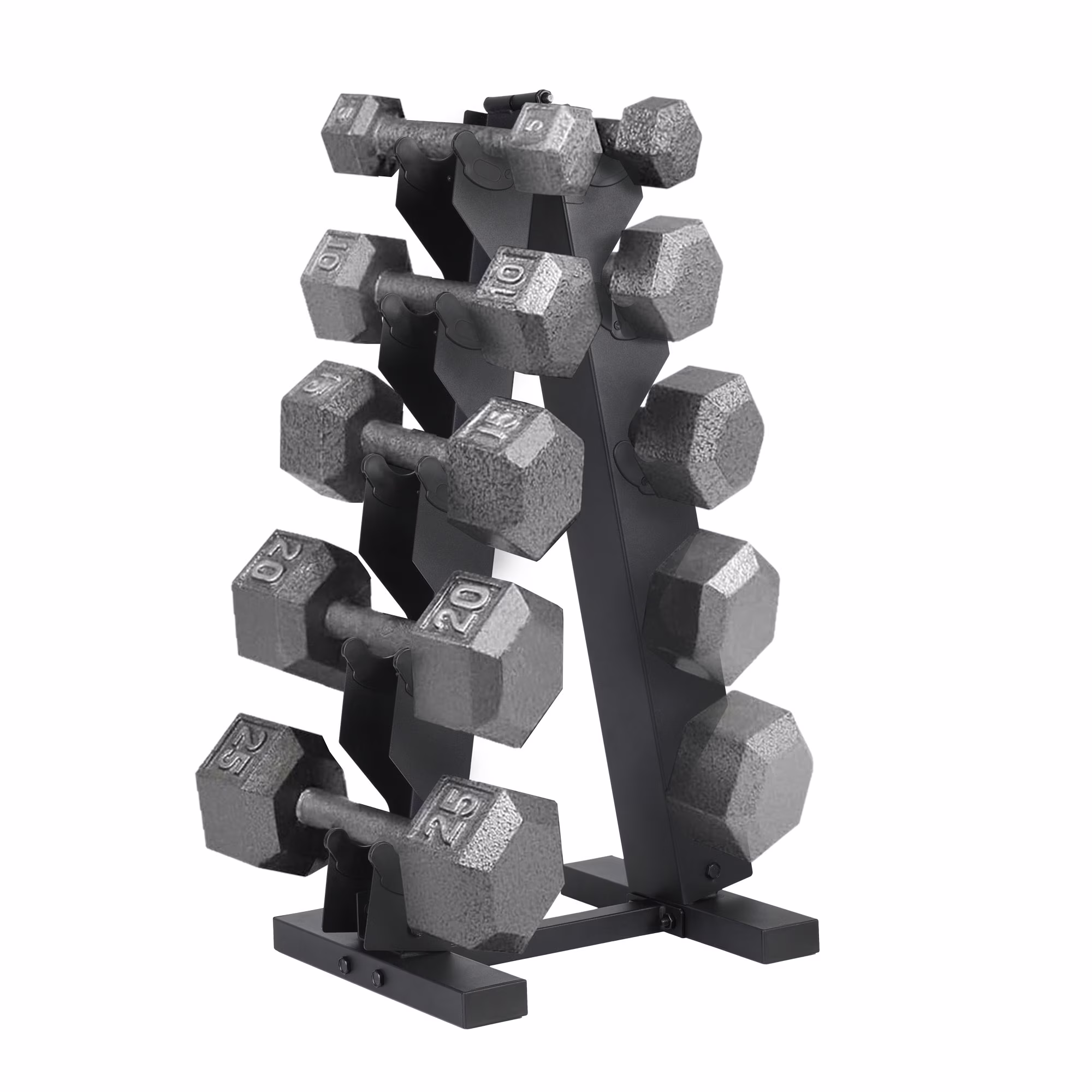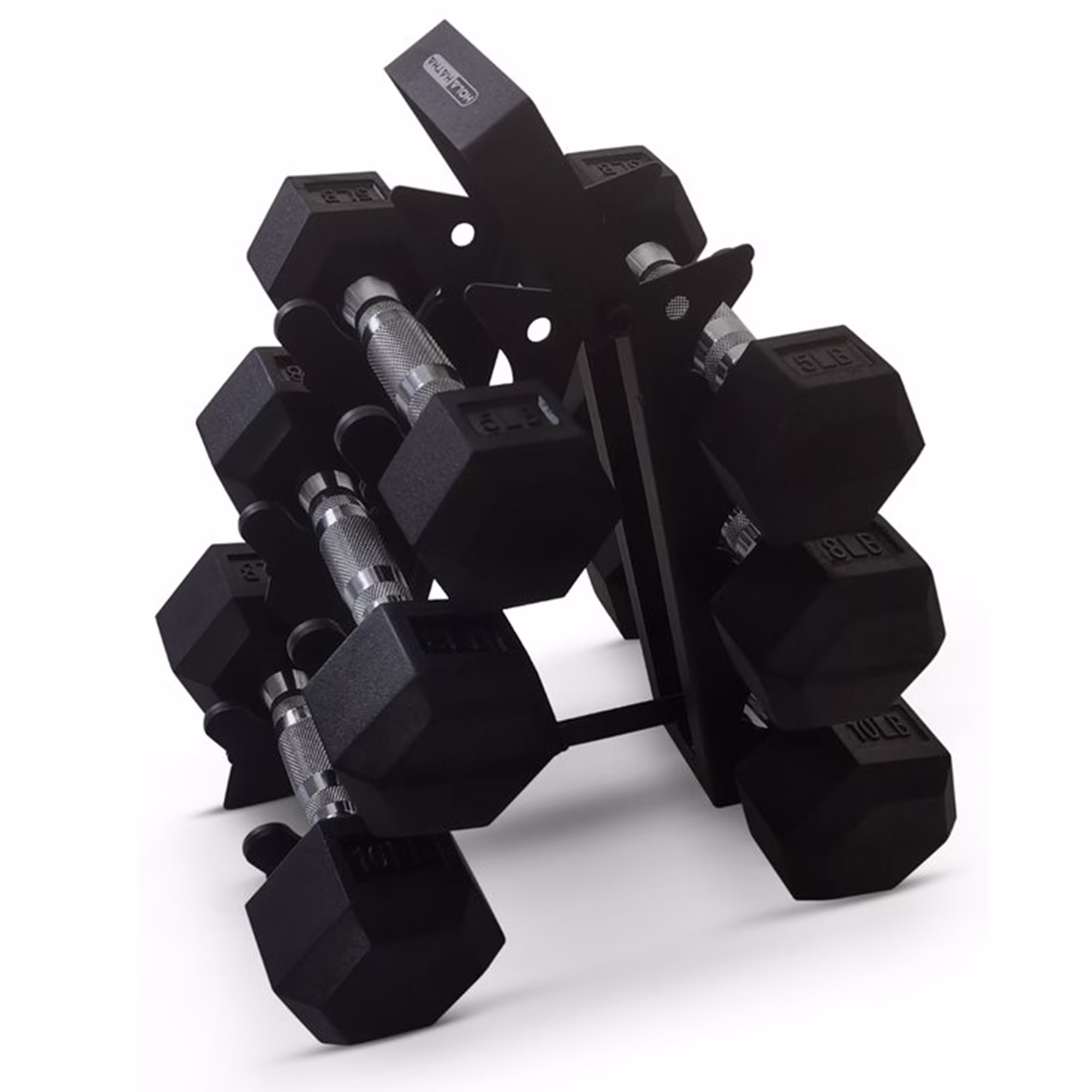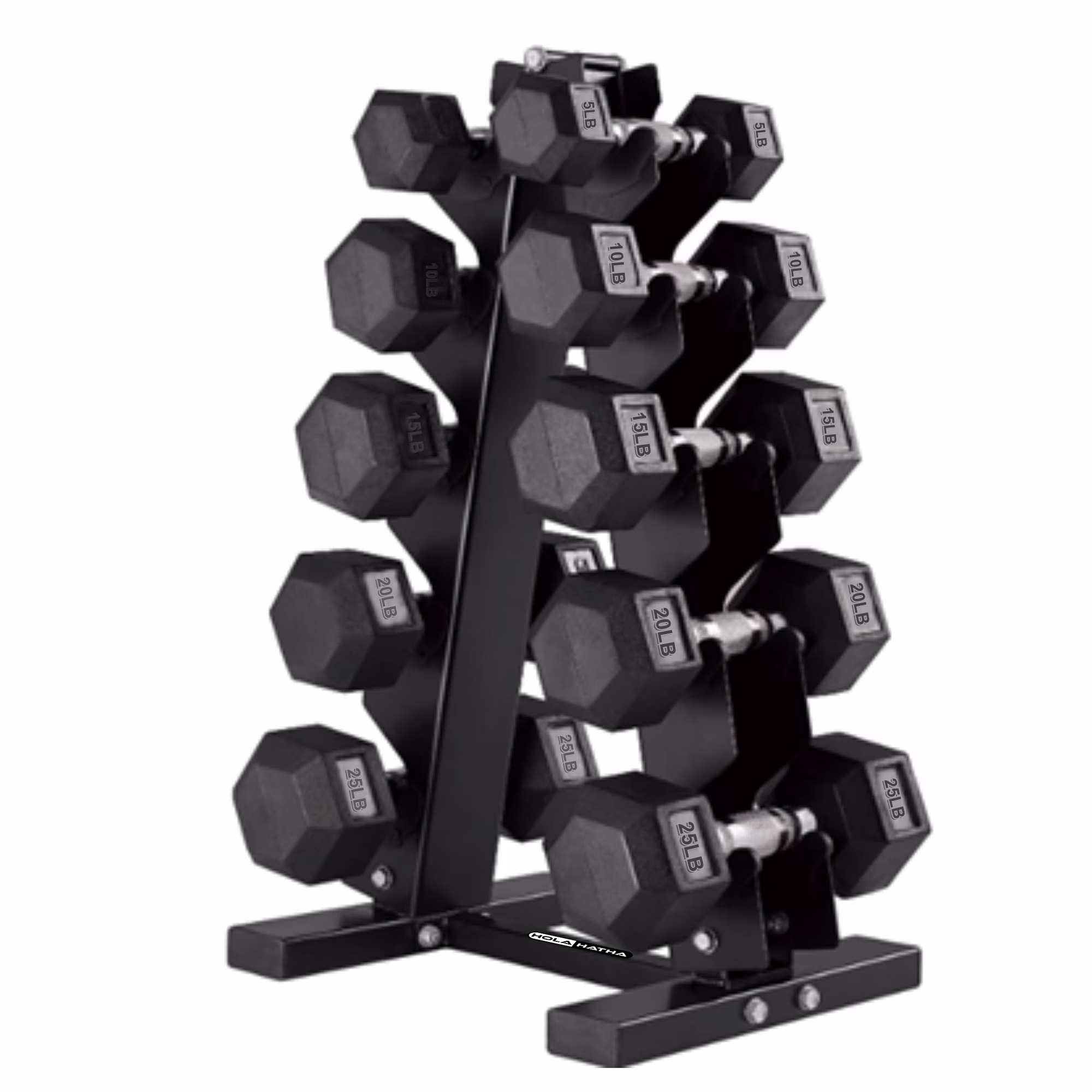 HolaHatha Hex Dumbbell with Rack, 5/10/15/20/25 lb (Black)