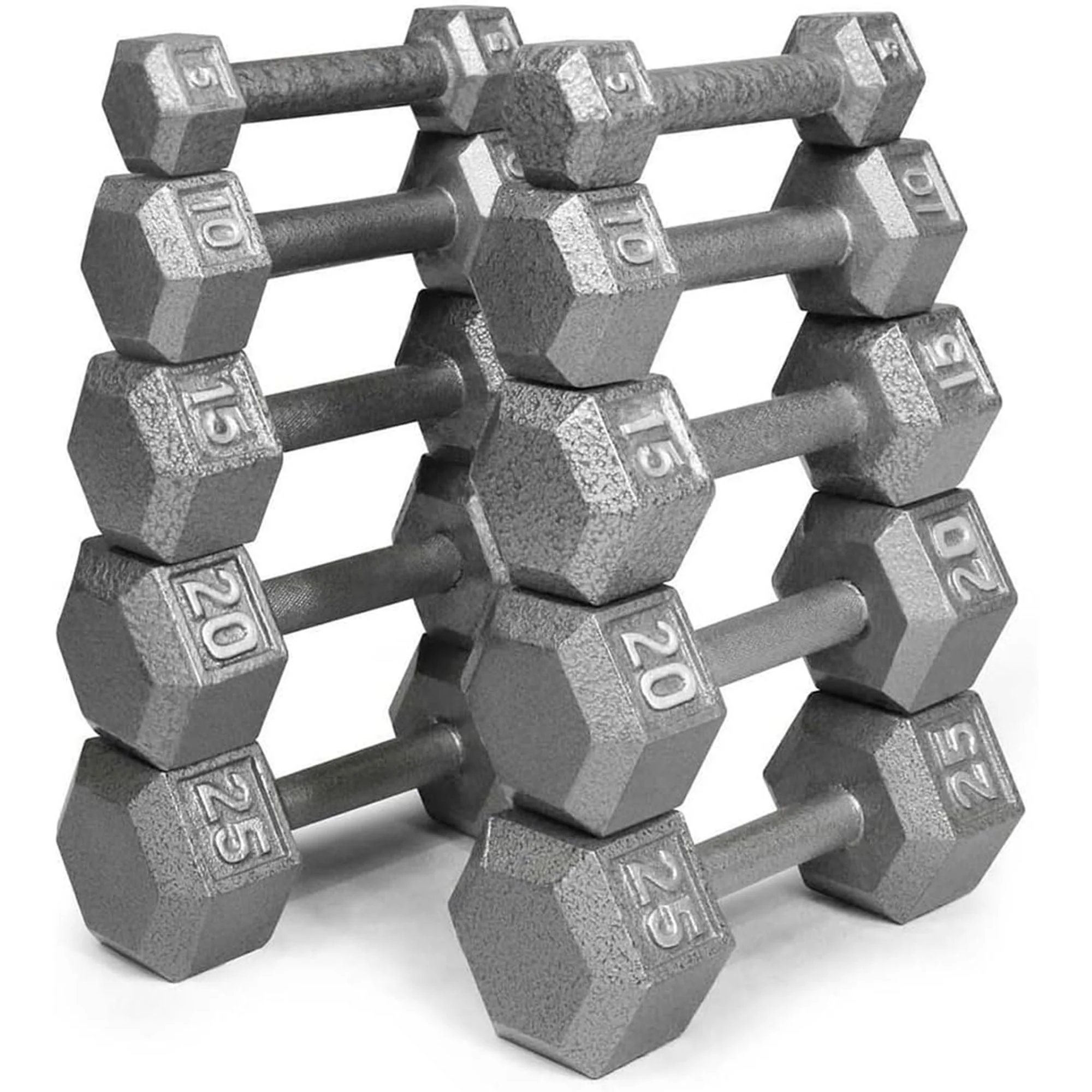 - Set of 5 pairs of dumbbell free weights weighing 5, 10, 15, 20, and 25 pounds to enhance your exercise routine and encourage muscle growth