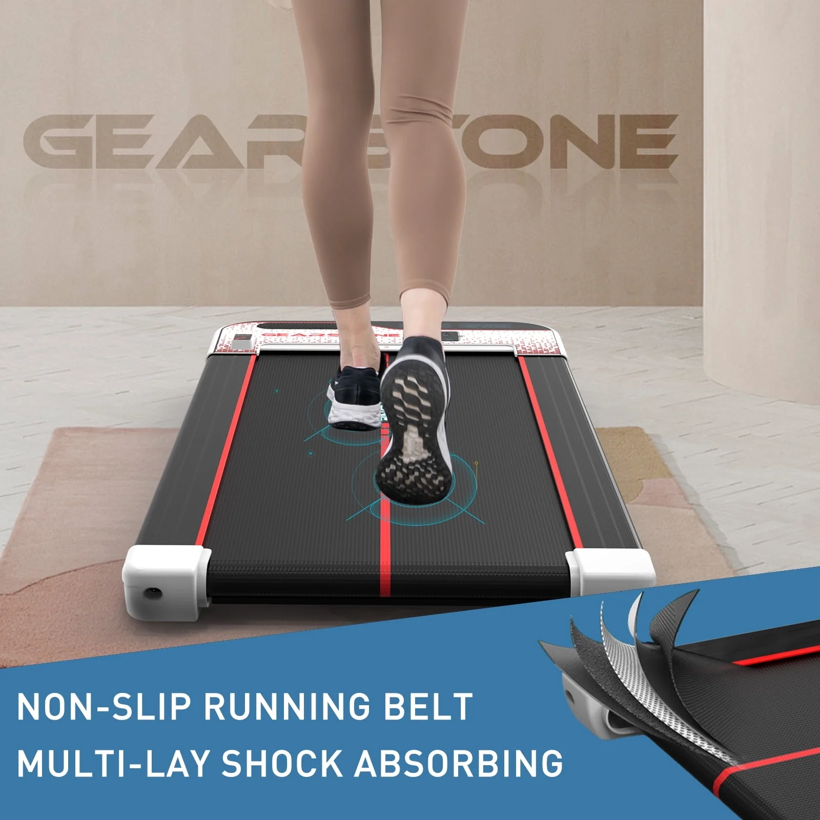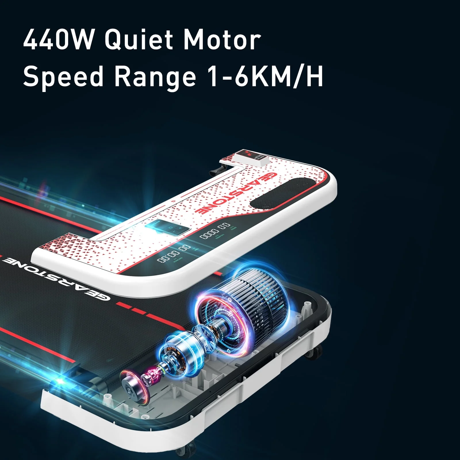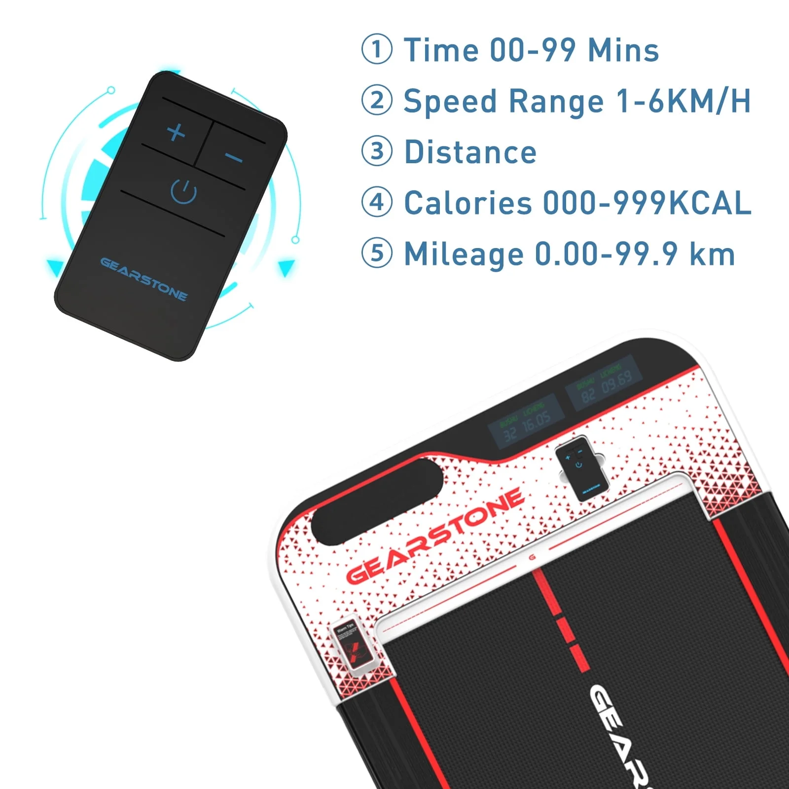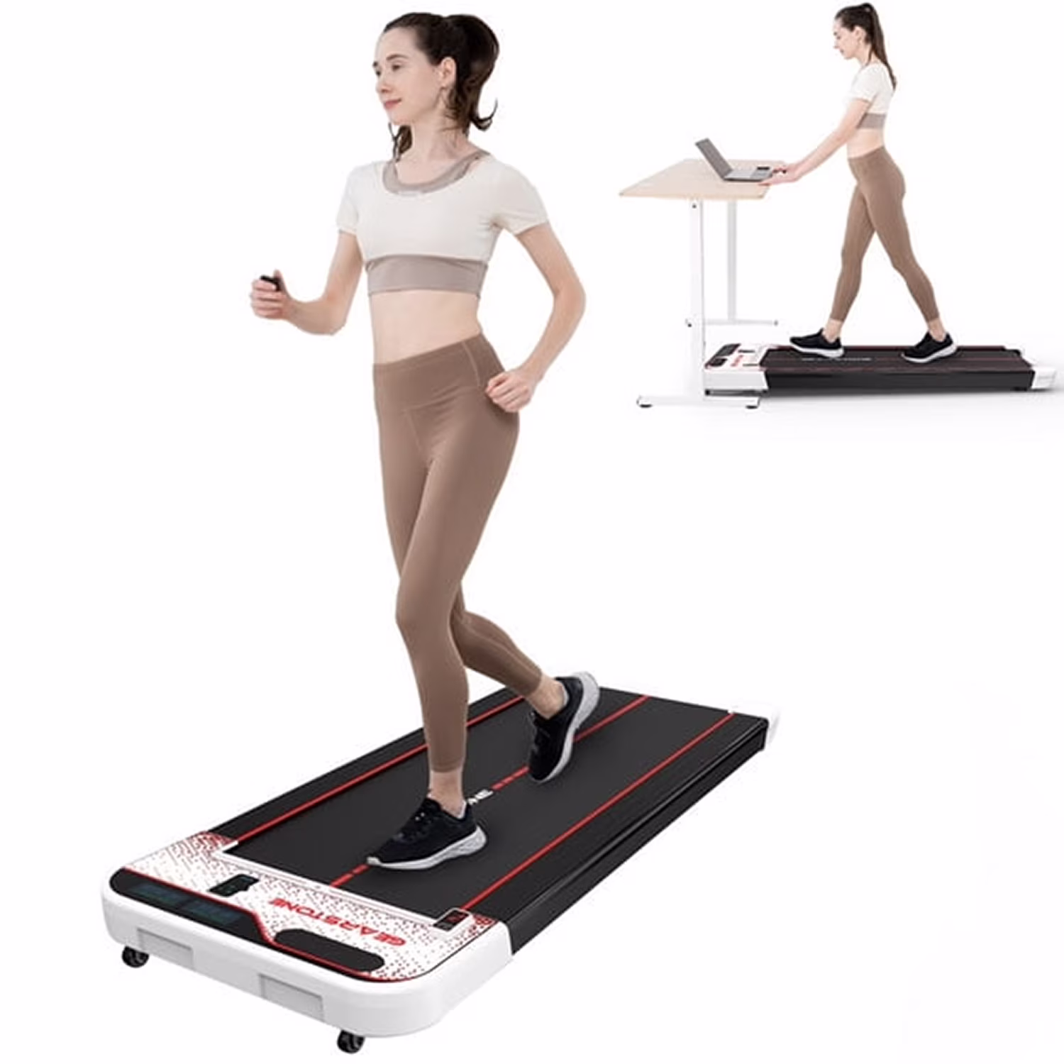 This compact treadmill is designed for walking or light jogging in home or office settings. It features a quiet 440W motor and a non-slip running belt with shock absorption. The LED display tracks speed, time, distance, and calories, while the remote control allows easy adjustments. Its slim profile and transport wheels make it easy to store under furniture when not in use.