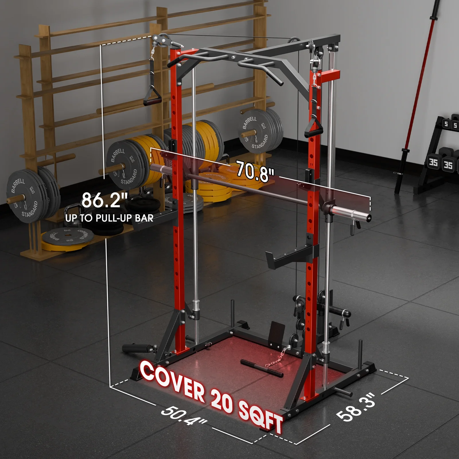 Crafted from high-quality steel with a 2mm thick wall design, this machine ensures robustness and stability during use, with a maximum weight capacity of 1000 lbs, giving you peace of mind in every workout session. It's an all-in-one equipment that caters to both beginners and fitness enthusiasts, offering a wide range of exercises from squats and deadlifts to shoulder presses and pull-ups, targeting every muscle group in your body.