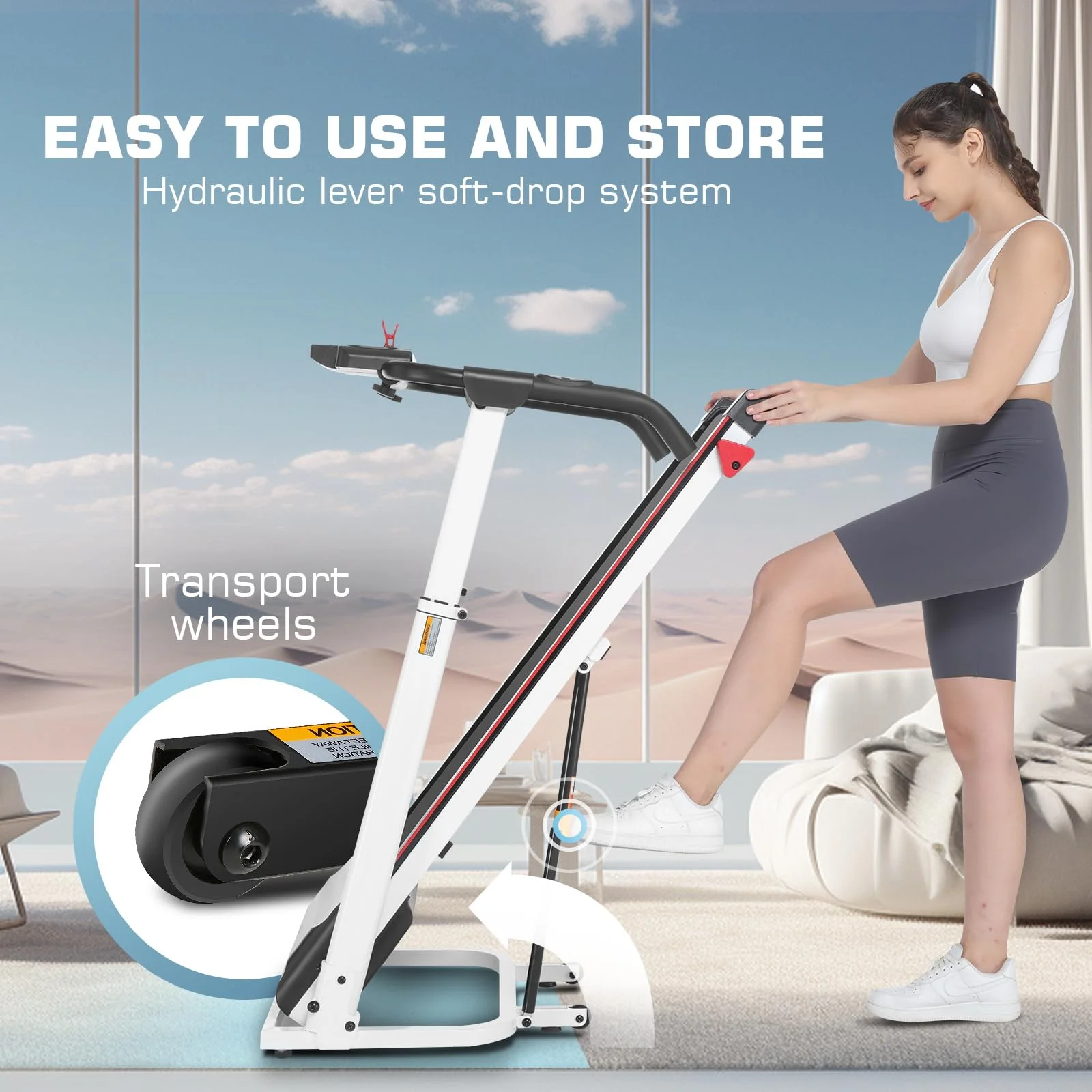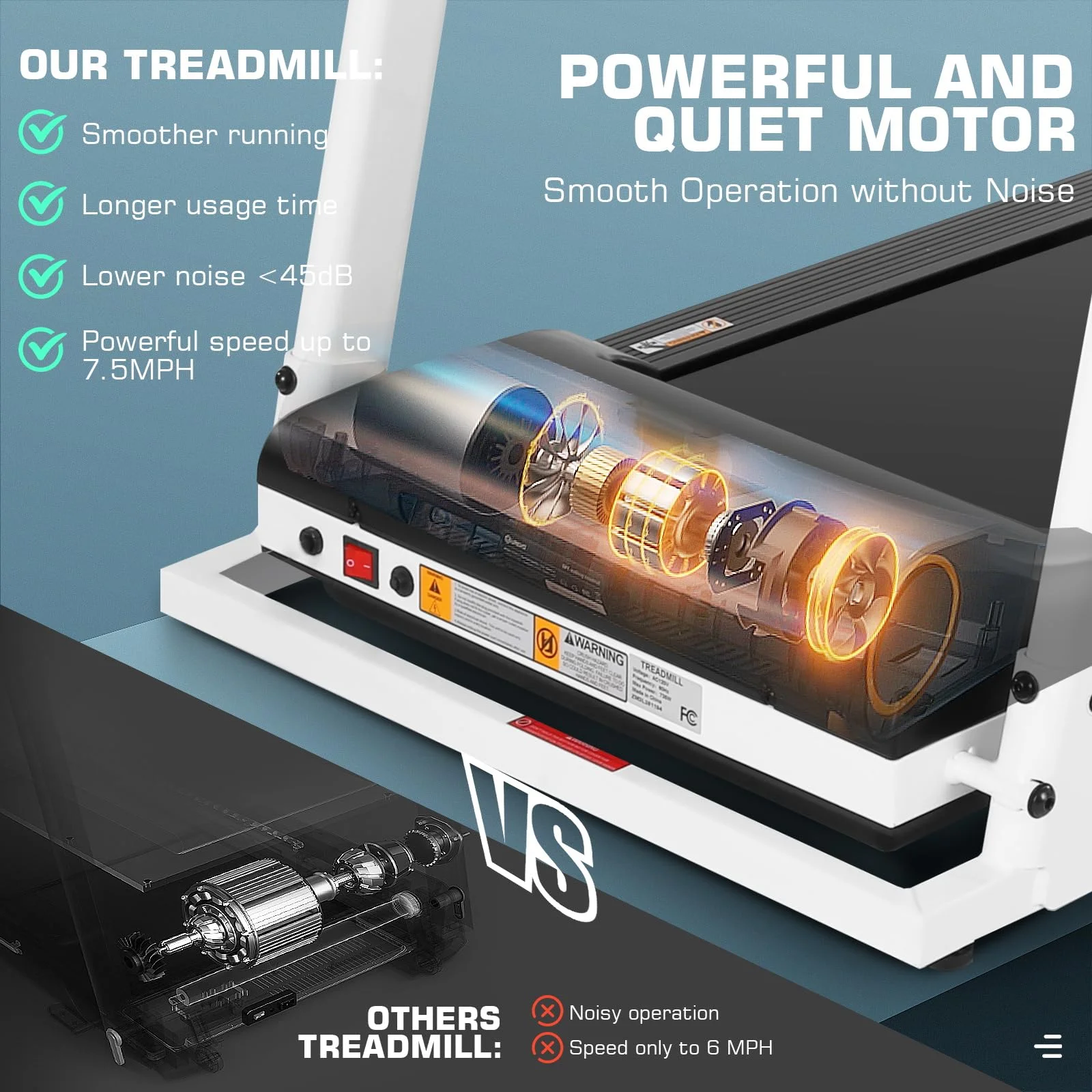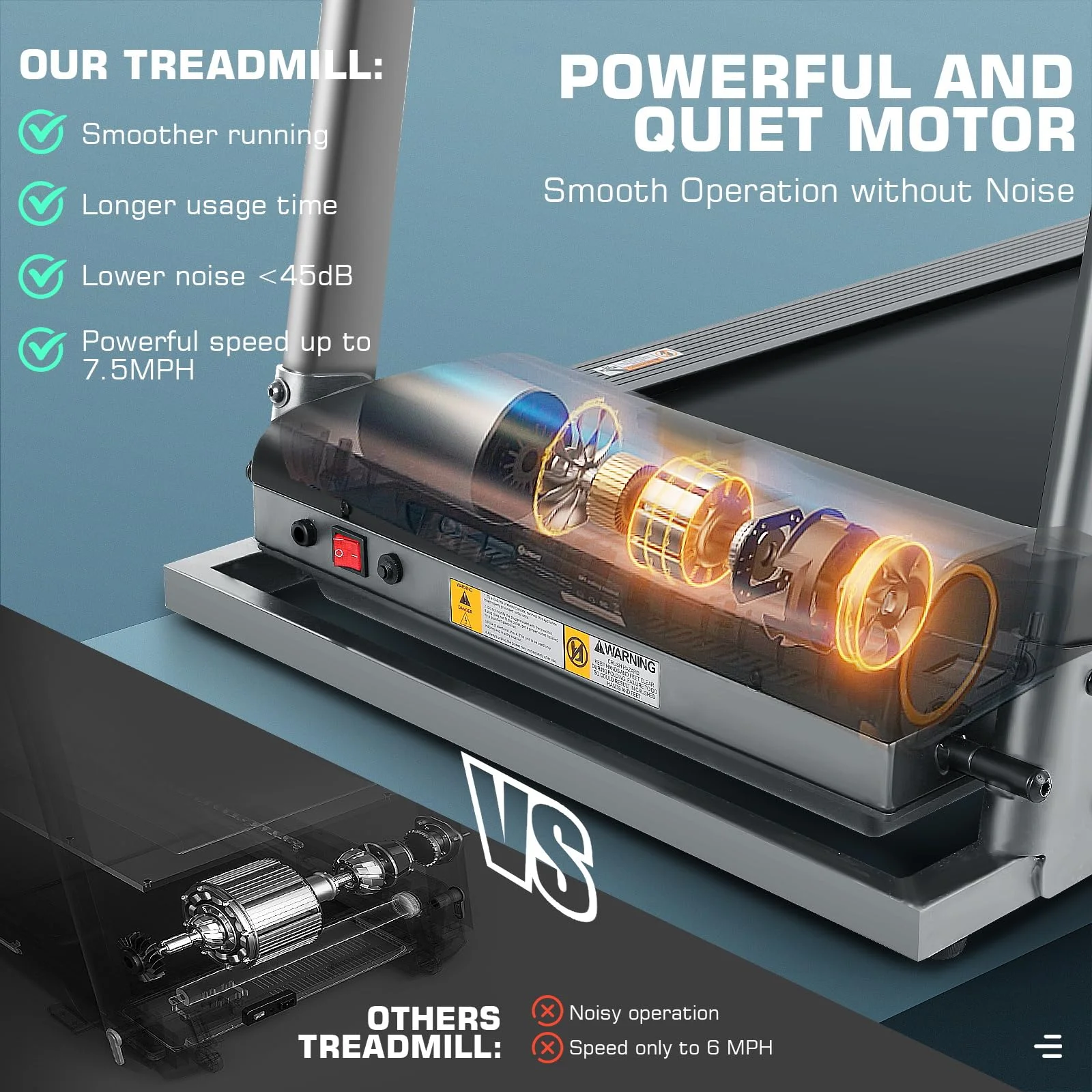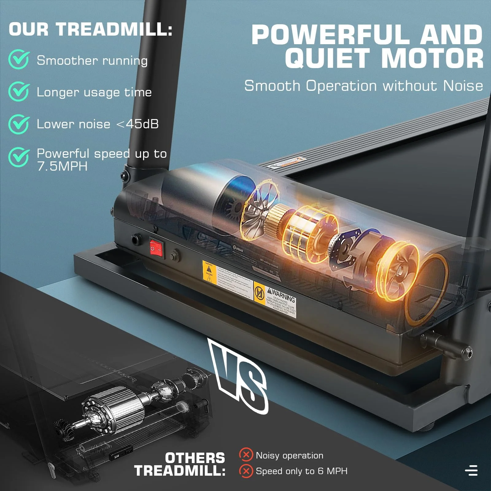 - Wider 16" Running Belt: Highperformance 2.5HP motor delivers a smooth experience with speeds from 0.6 to 7.5 mph; multilayer shockabsorbing belt cushions joints