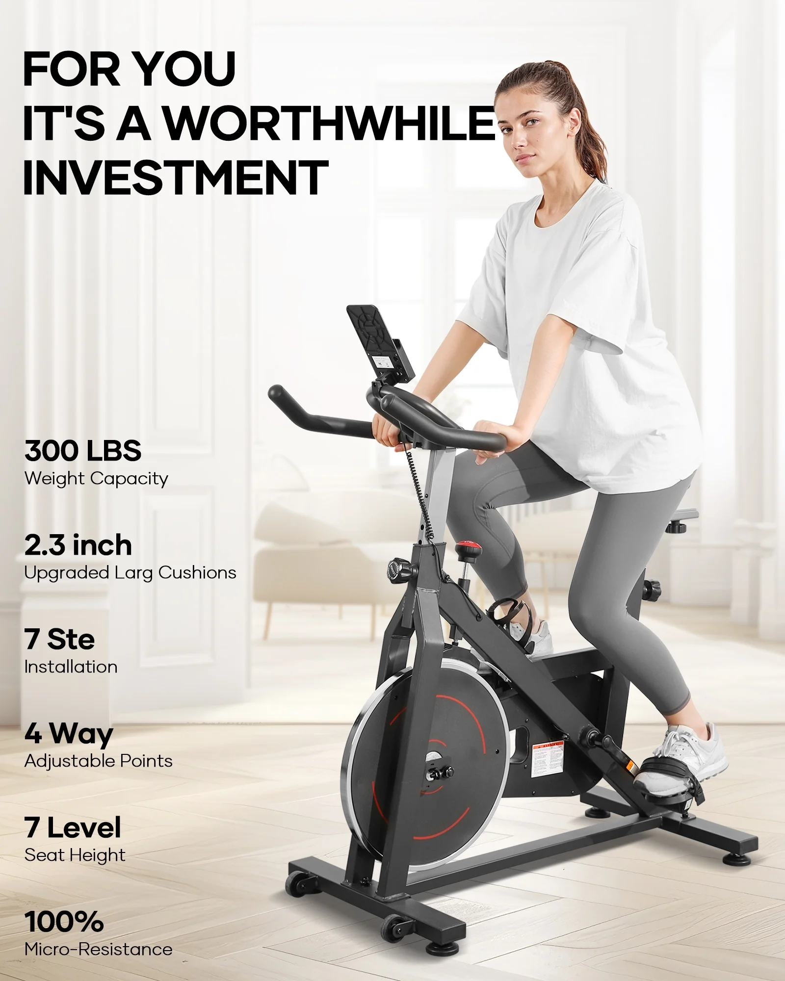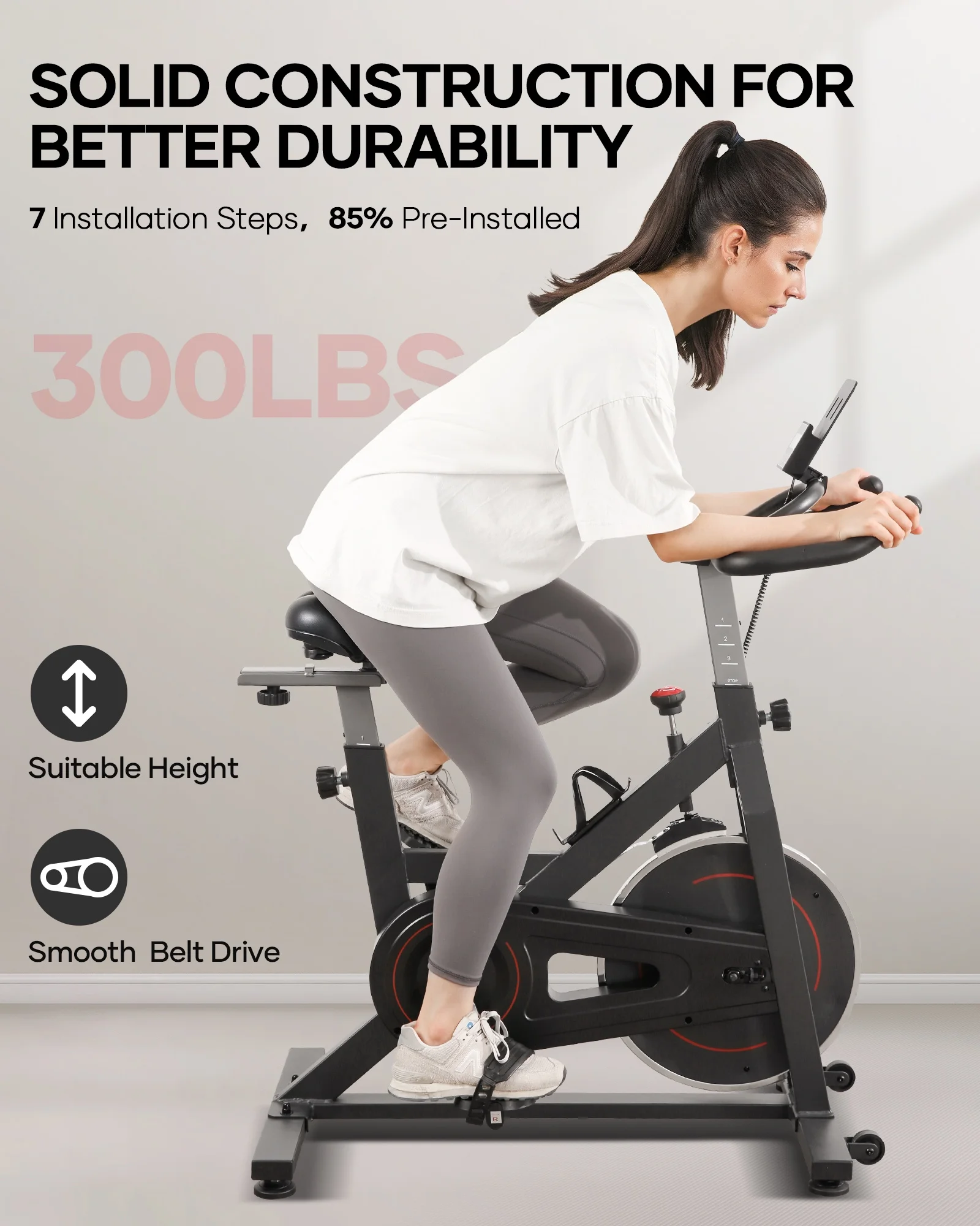 - Sturdier Fitness Bike - Crafted with a reinforced frame, our indoor exercise bike boasts a rock-solid and sturdy structure for a smooth ride without any wobbling or squeaking. With a maximum weight capacity of 330 pounds