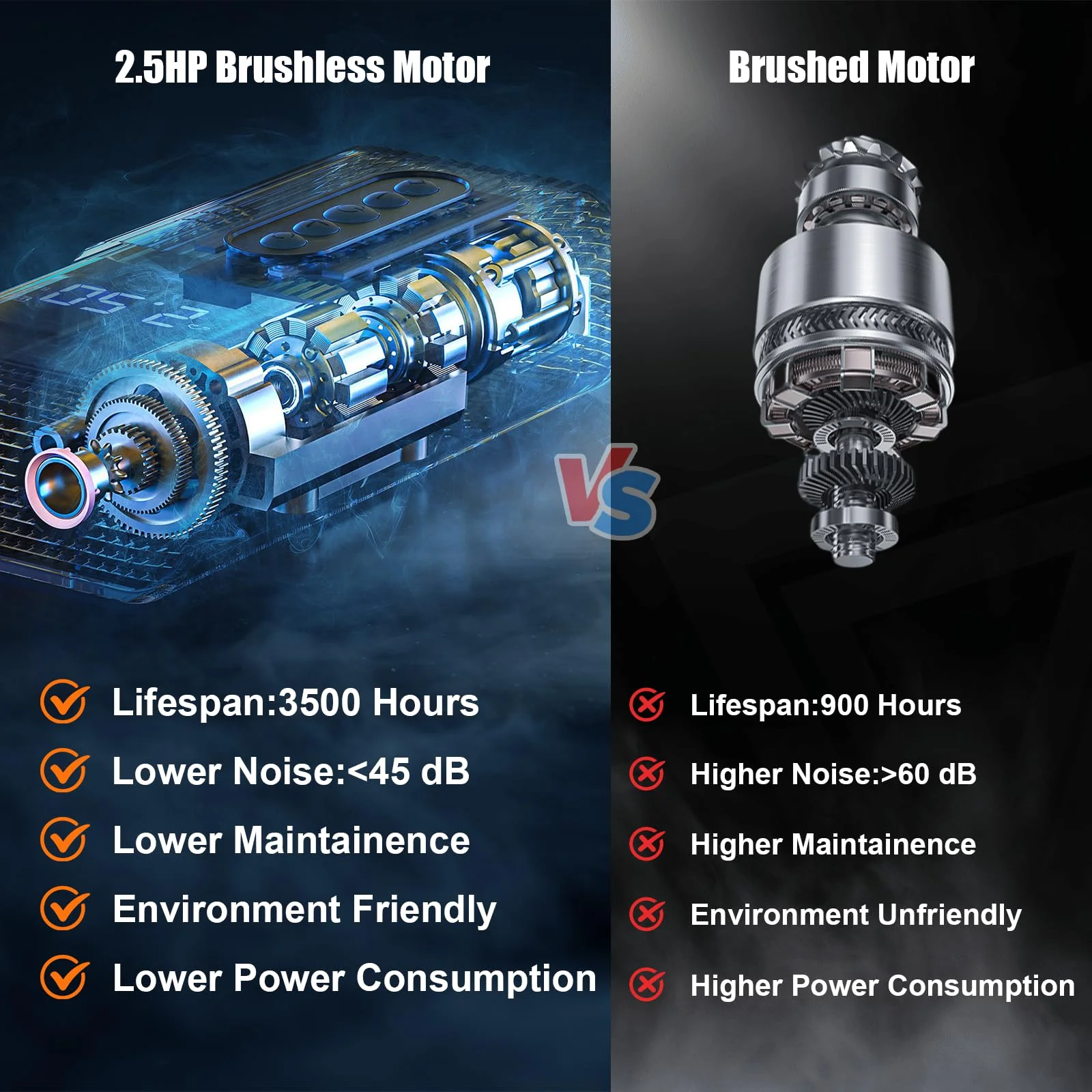 - QUIET POWERFUL MOTOR - 2.5 HP brushless motor operates at 45dB with speeds up to 7.5 MPH