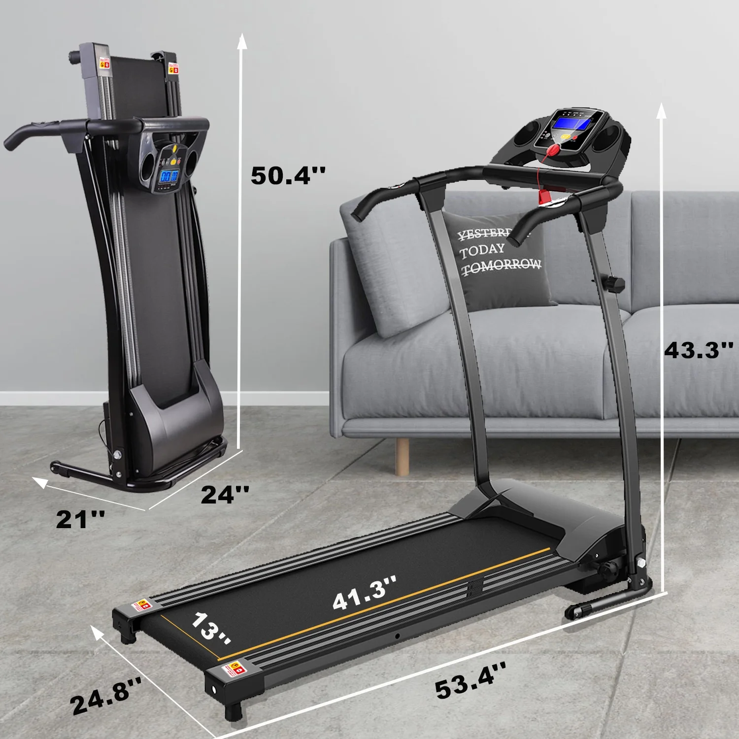 - HOME FITNESS SOLUTION - Ideal electric treadmill for home use, compact and portable design