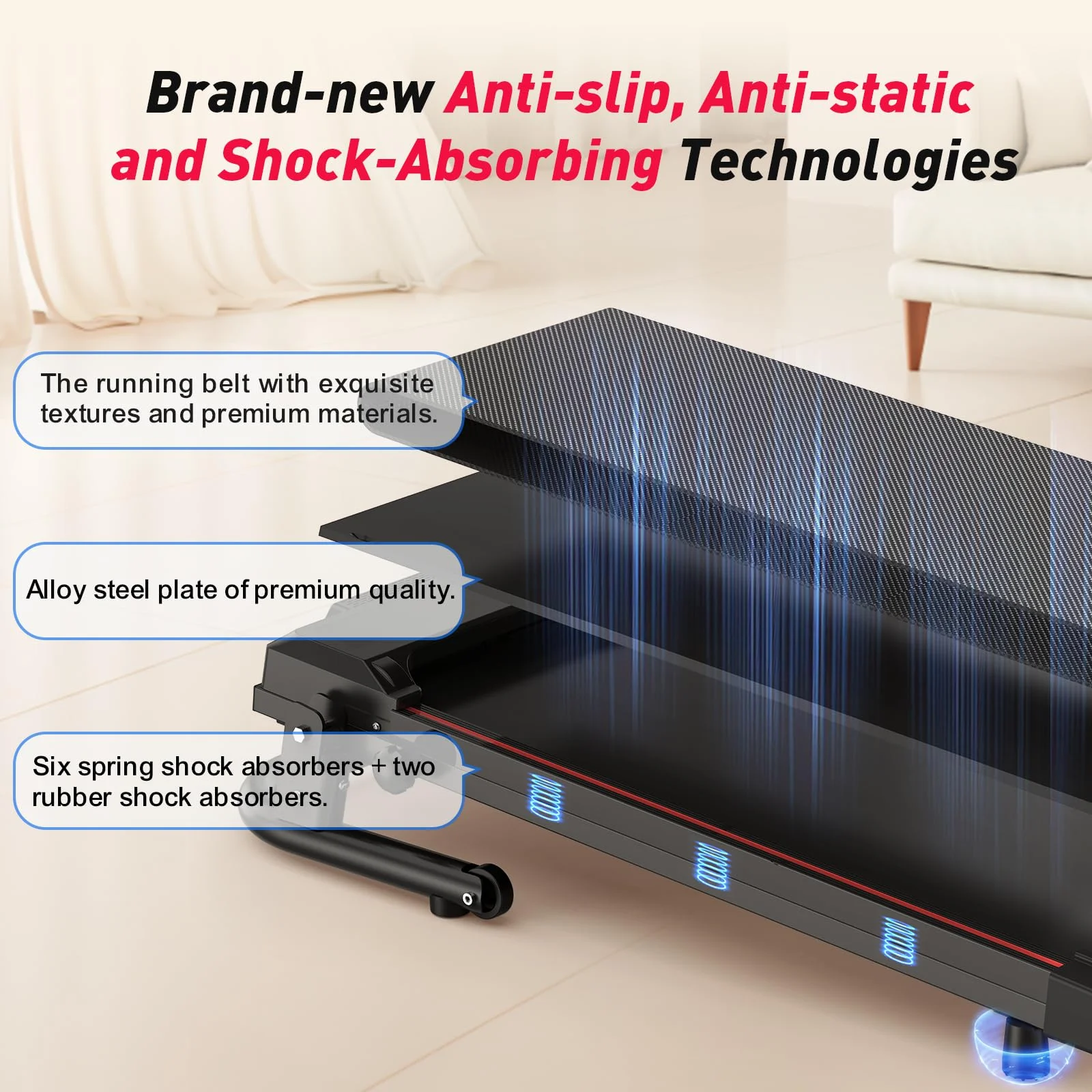 - SAFE AND COMFORTABLE - Silicone shock absorbers and 5-layer non-slip running belt for knee protection