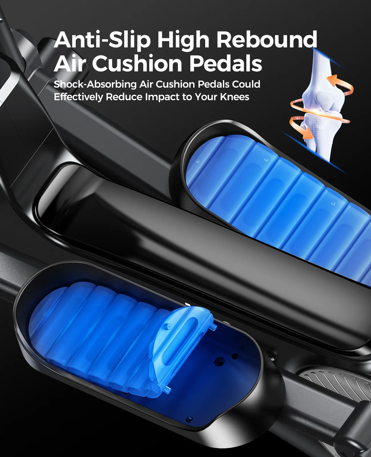- 【Ergonomic Pedals】HASIMAN E399 elliptical machine is designed with ergonomic 15.5"" stride which making your training effortless. The pedal pad made of high rebound sponge could provide you with a more comfortable exercise feeling and reduce pressure on the ankles and knees.