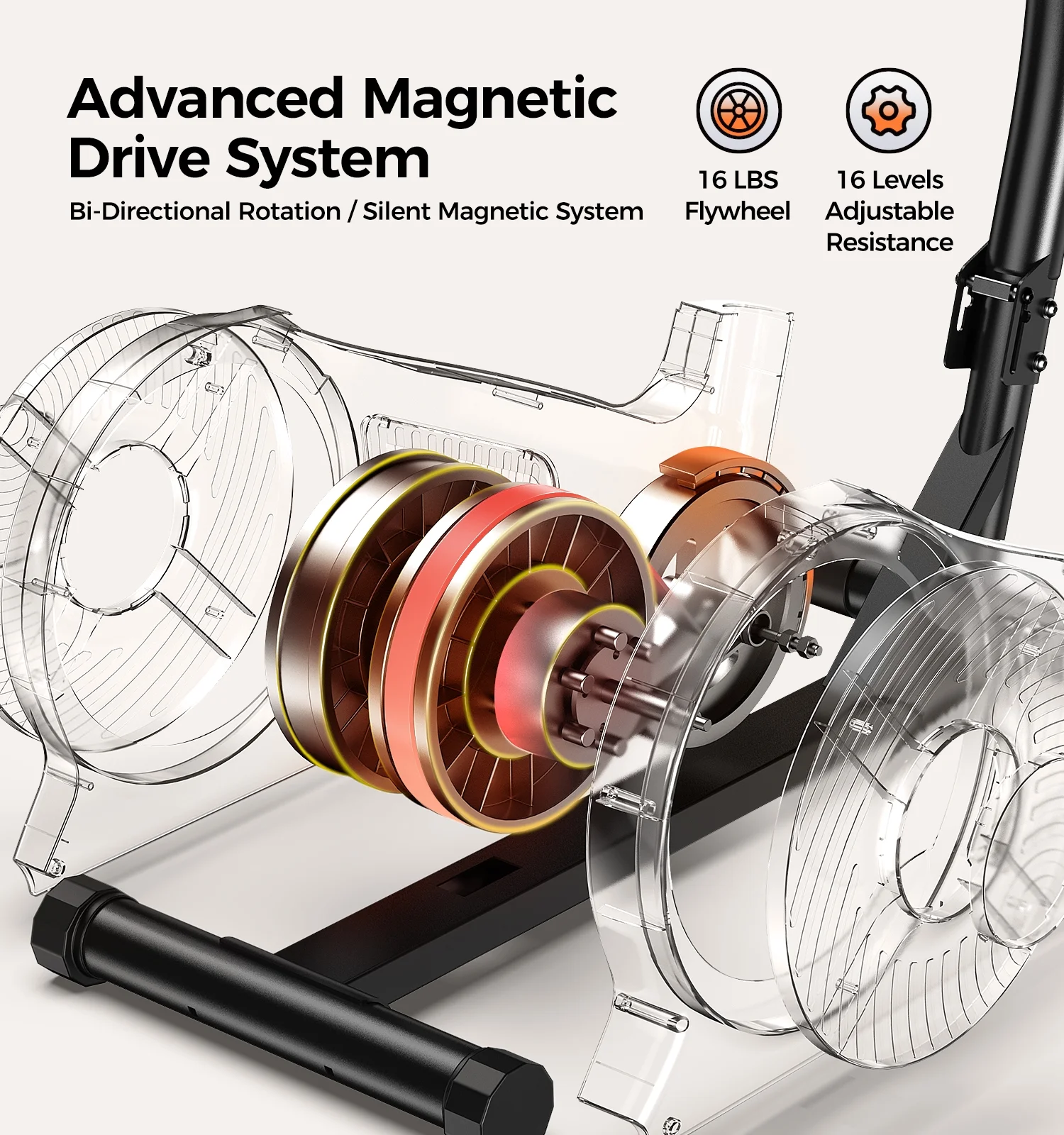 - �?6 Adjustable Resistance Levels】The magnetic drive system and 16LBS flywheel ensure stable tension output. Whether you aim for cardio or weight loss, the 16 adjustable resistance levels allow you to find the perfect exercise resistance for your needs.