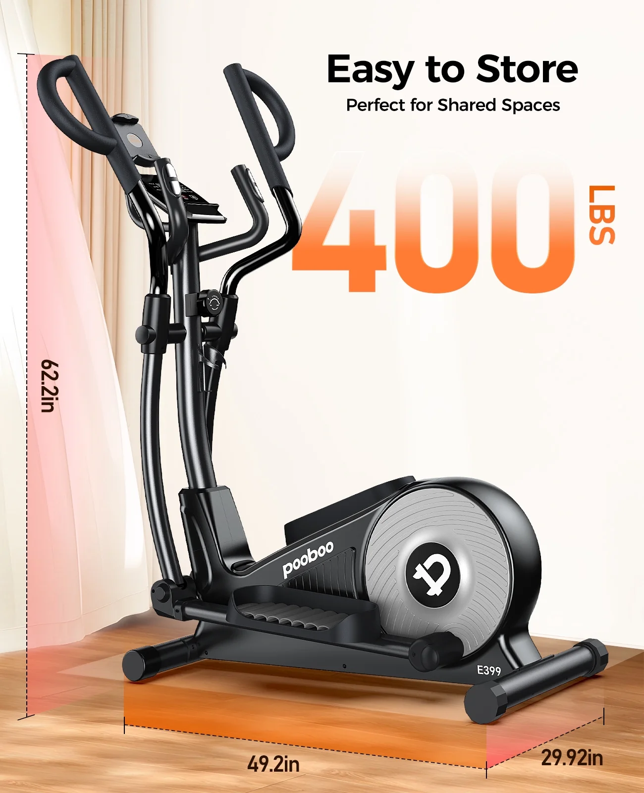 - �?00 LBS Weight Capacity】HASIMAN E399 elliptical machine is designed with light commercial thickened steel pipe frame which ensure its stability and safety. Weight up to 400 LBS.