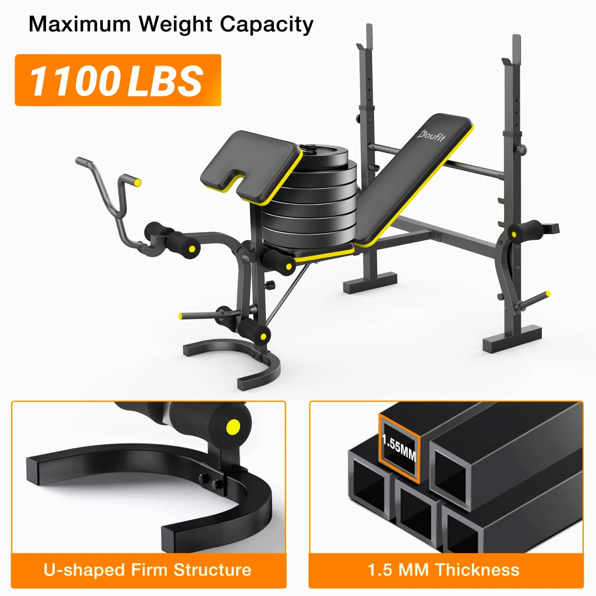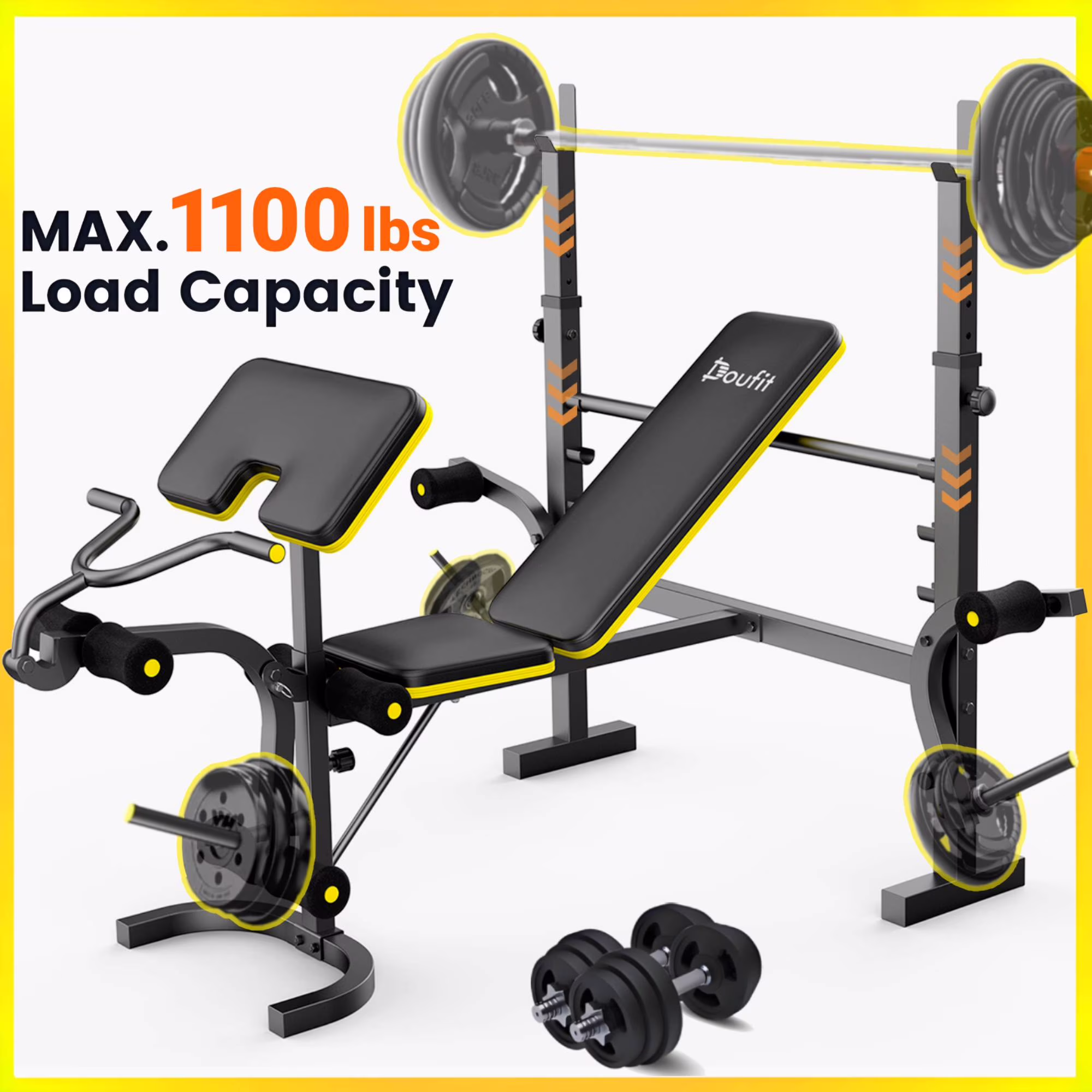 - �?100lbs Heavy-duty Construction】:Blacksmith Training Bench is set up by heavy duty stainless steel frame. The thickness of the steel frame is up to 1.5MM. It make this bench set safer and more enduring. The Max capacity is 1100 lbs. U-shape rear foot pipe makes the bench set more steady. Heavy duty performance gives you a safe and steady fitness experience.
